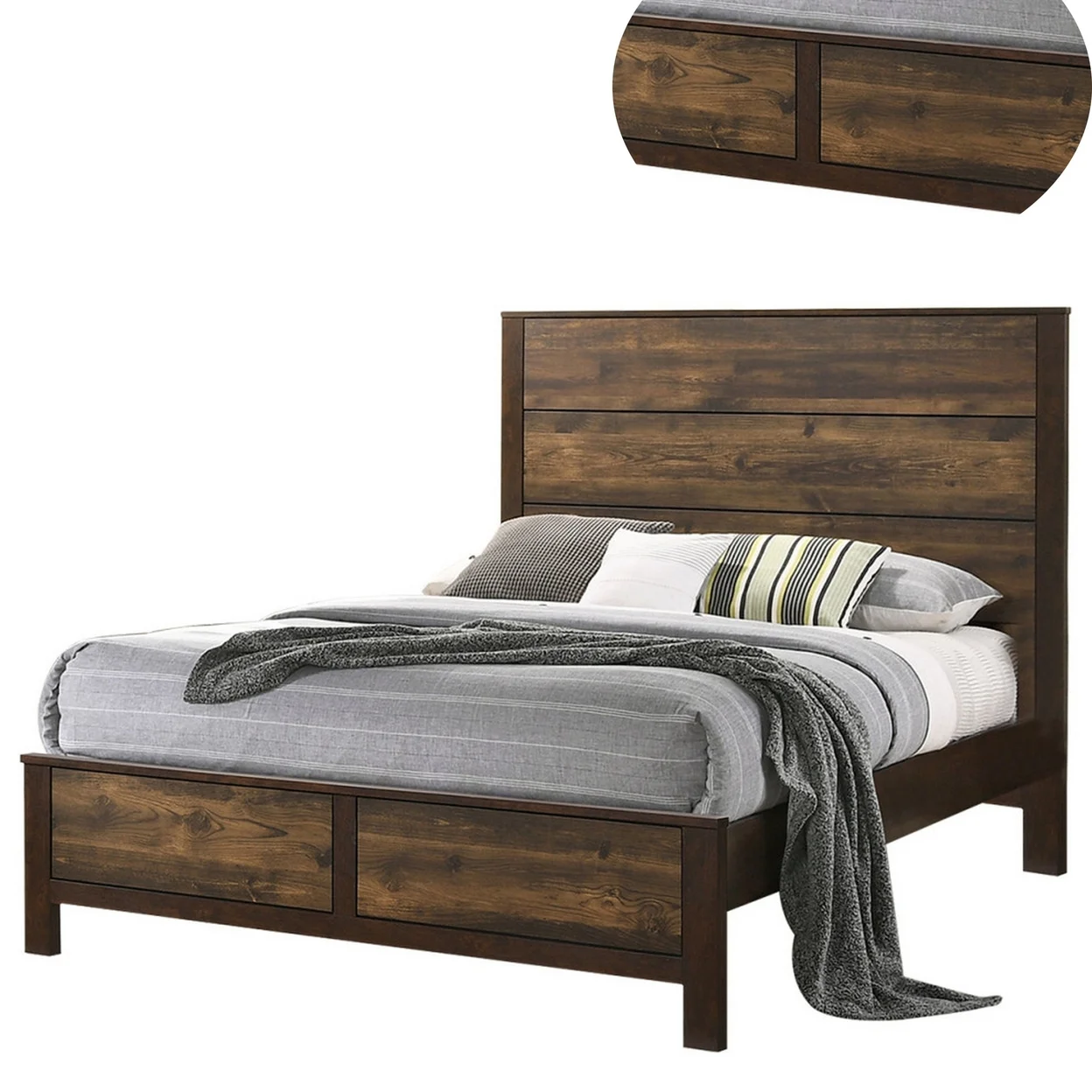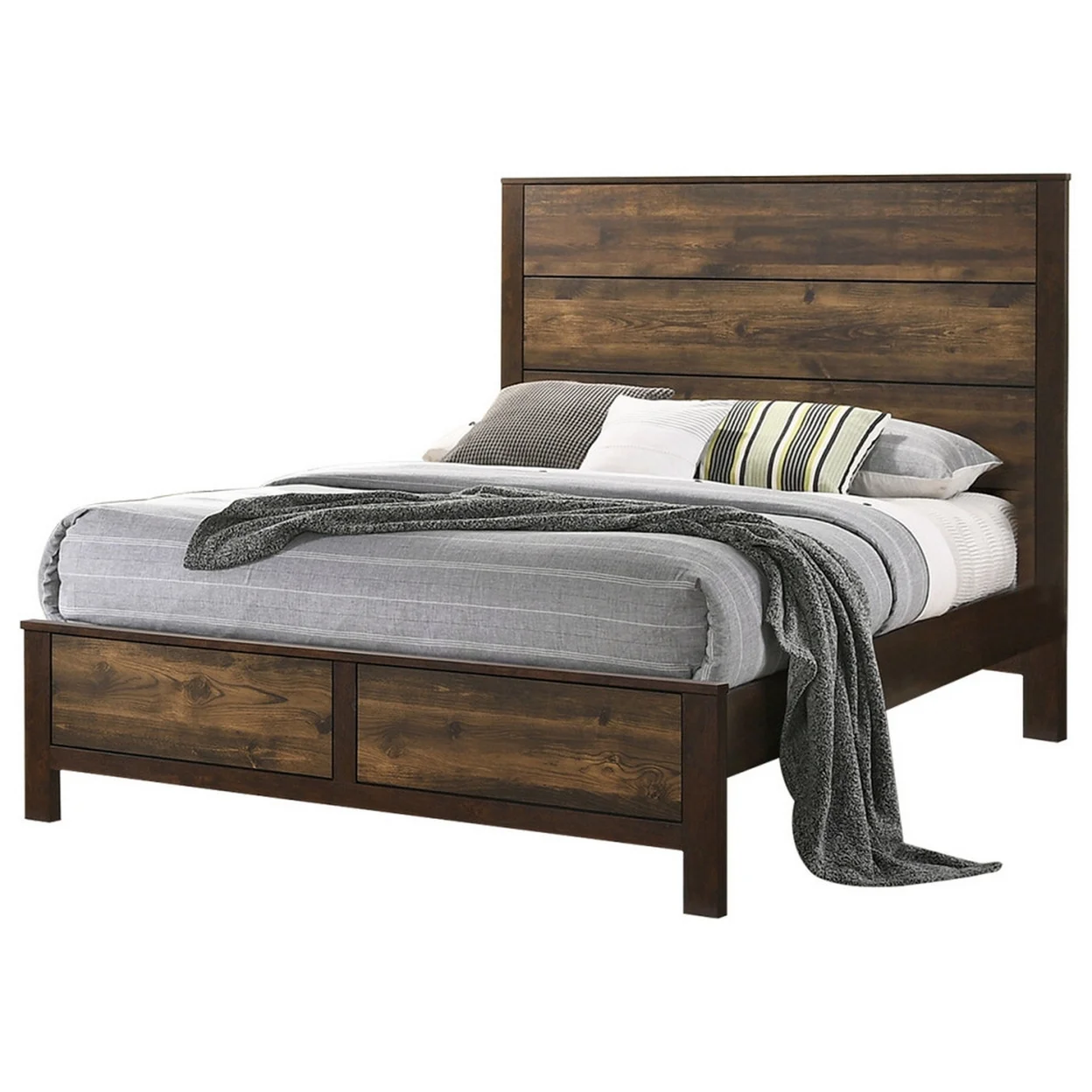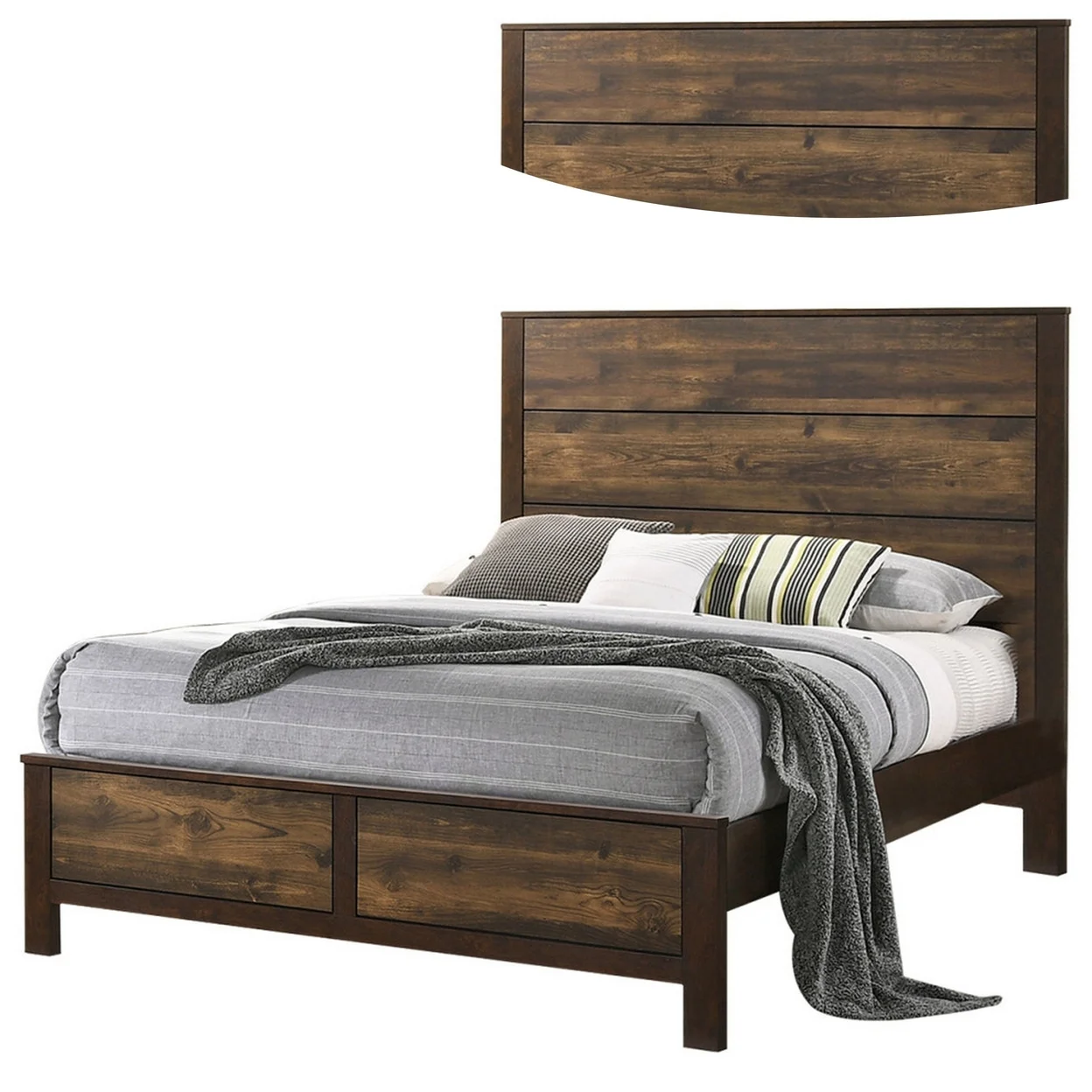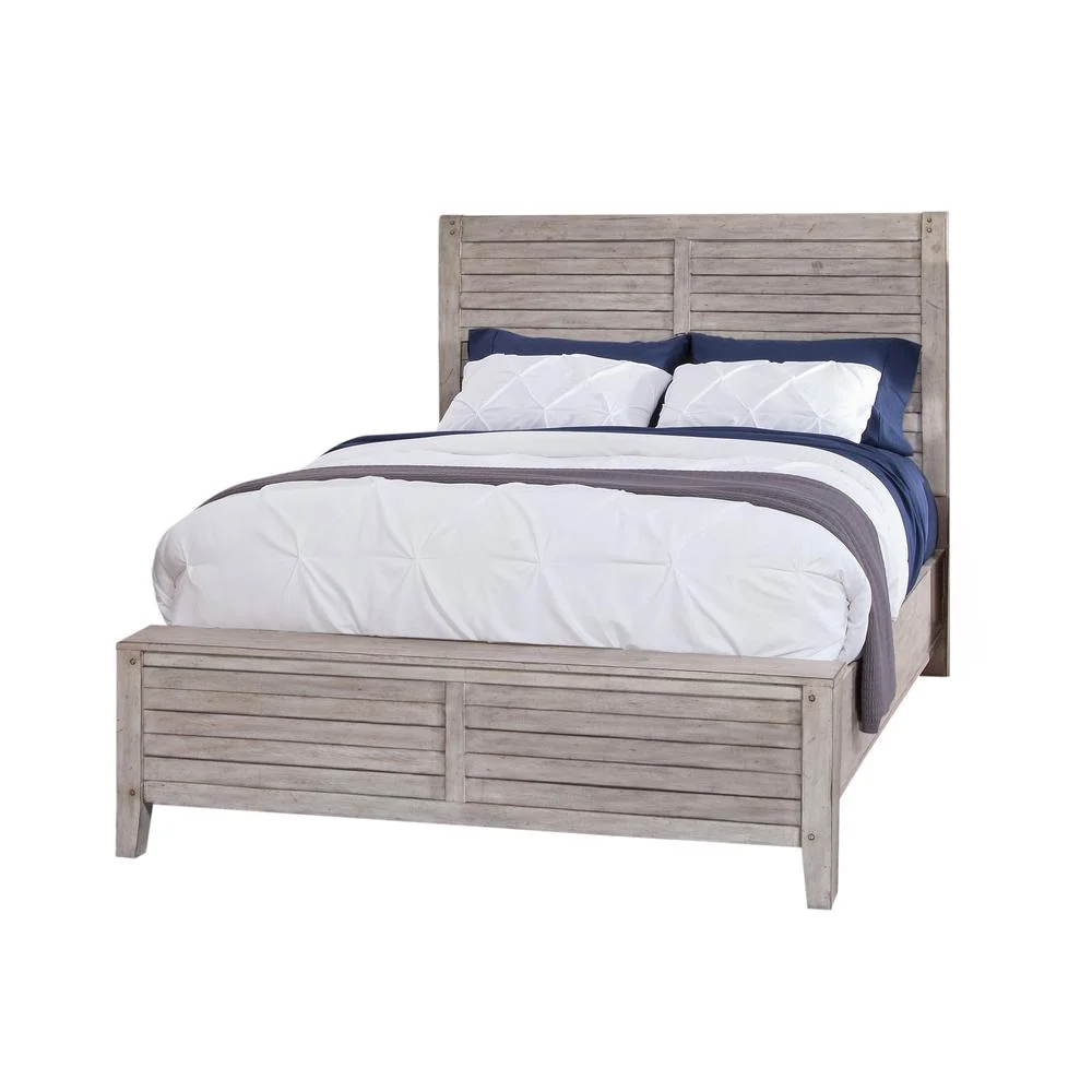 Zane Transitional Bed with Wood Plank Panel Headboard, Weathered Gray - Queen Size