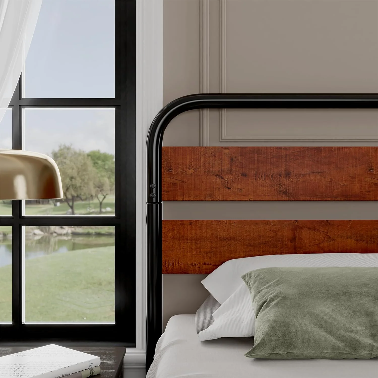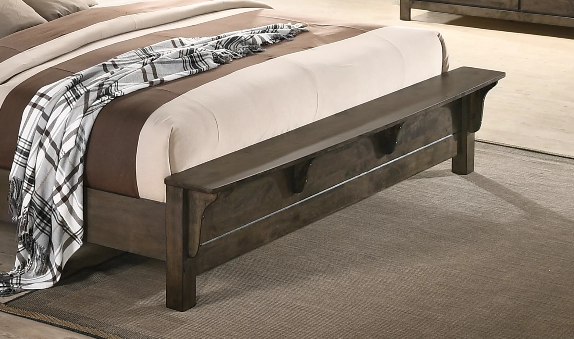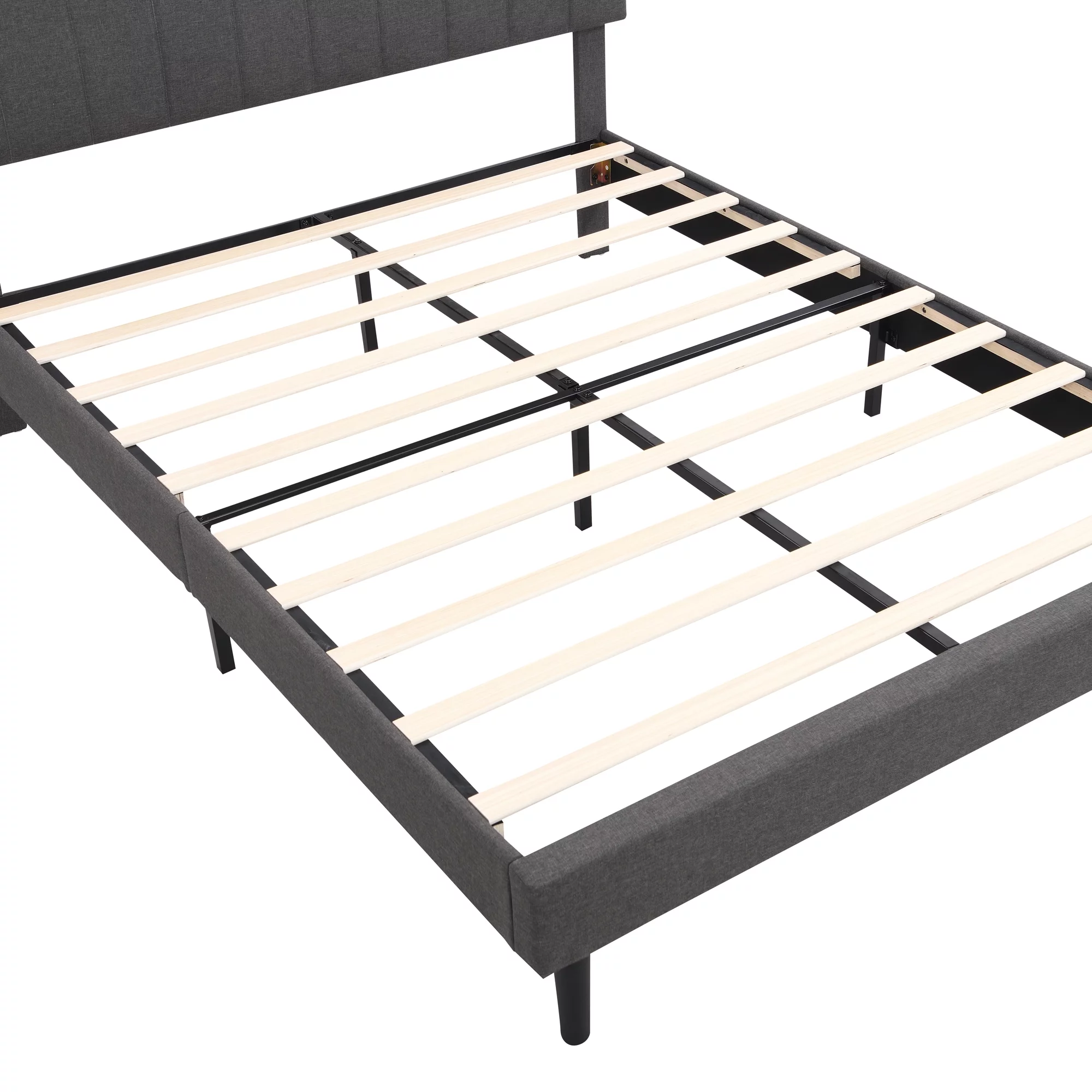 Zane Transitional Bed with Wood Plank Panel Headboard, Weathered Gray - Queen Size