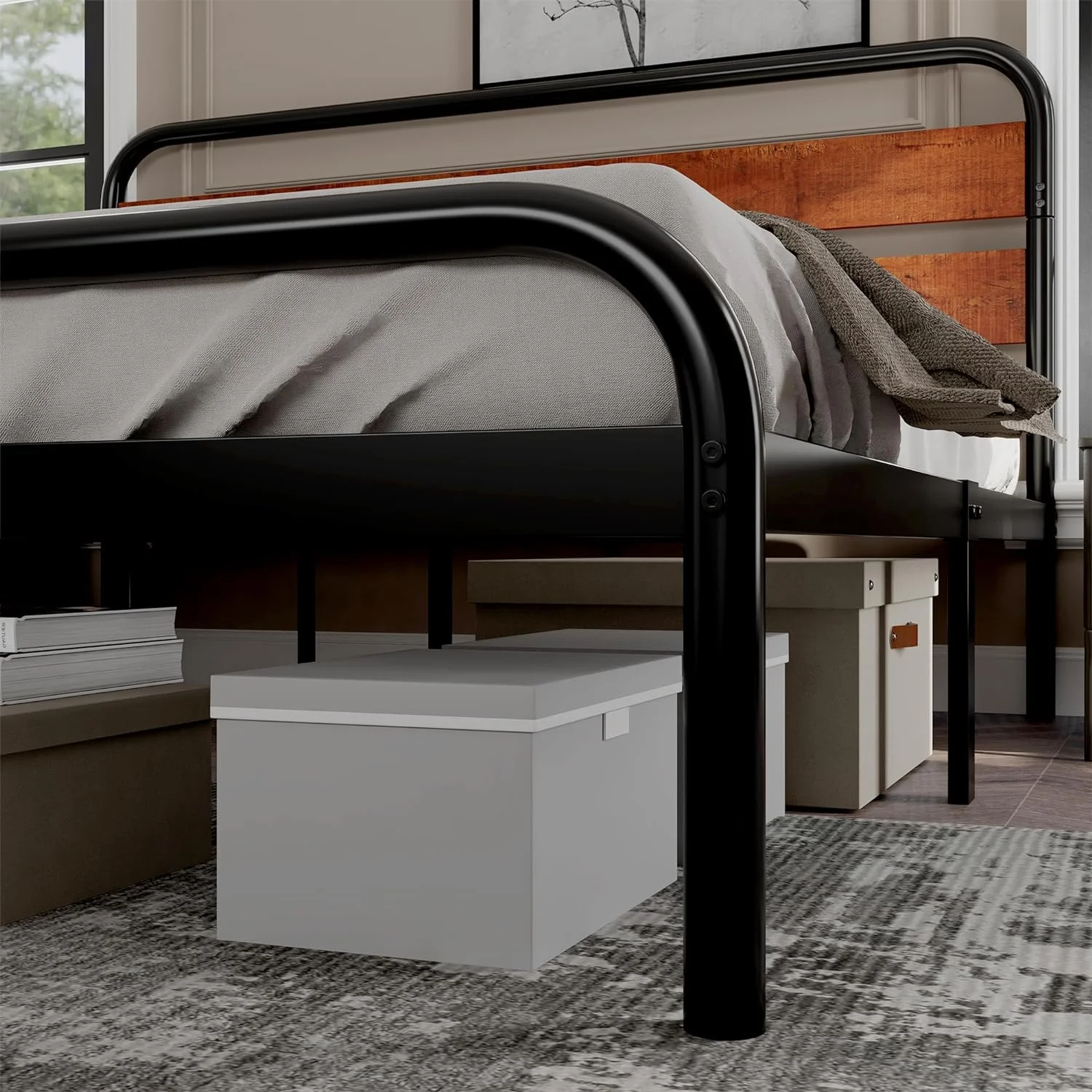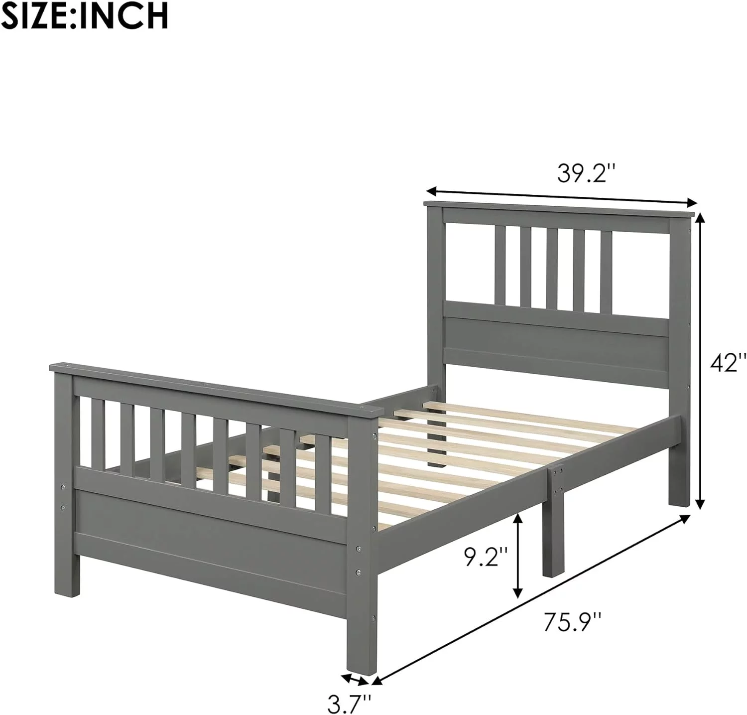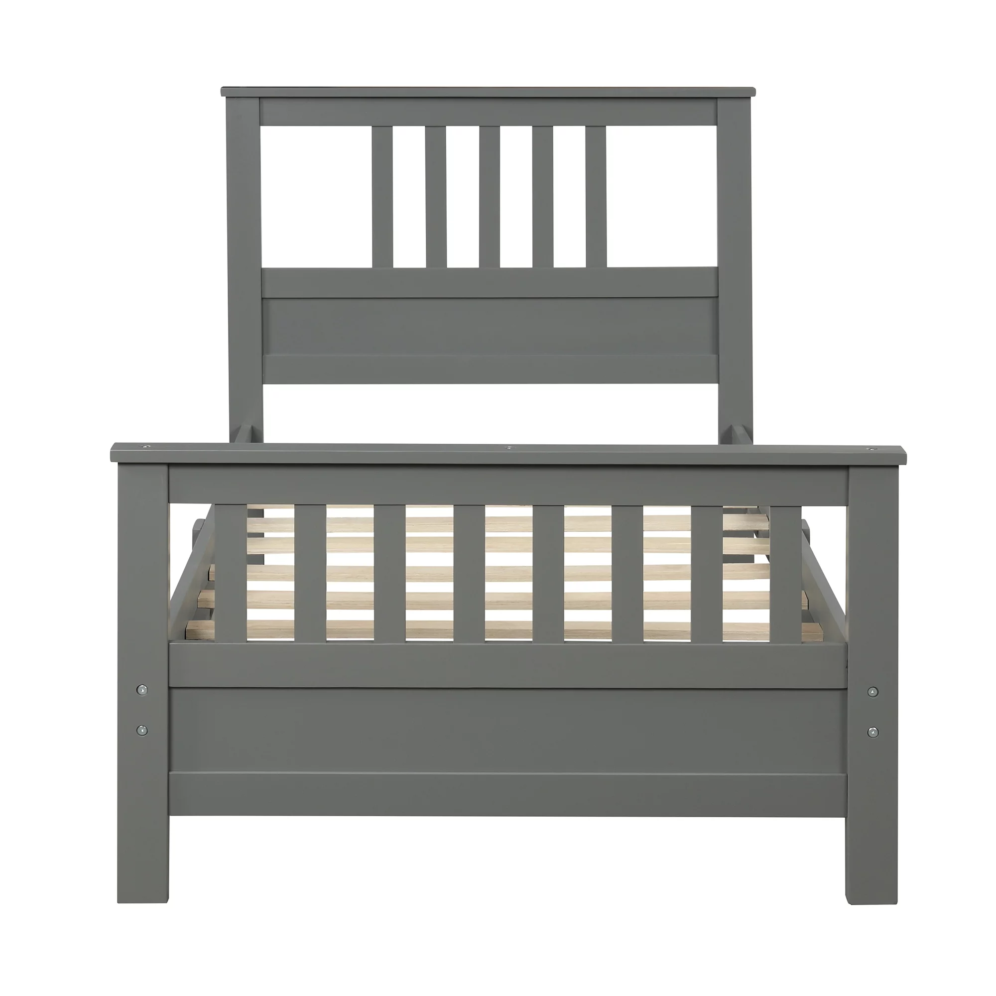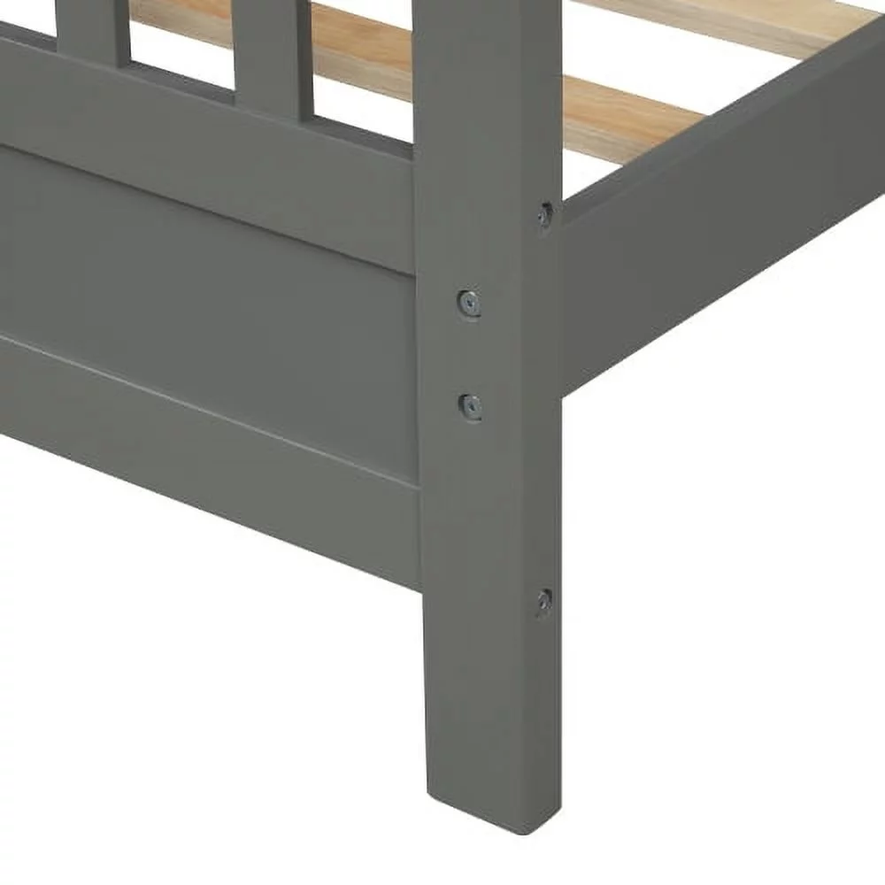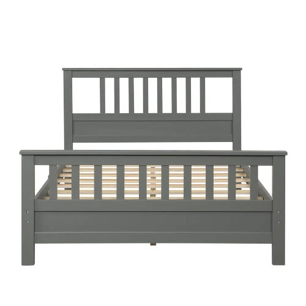 Platform Bed Frame With Headboard & Footboard And Wood Slat Support, Wood Bed Frame For Kids No Box Spring Needed, Gray