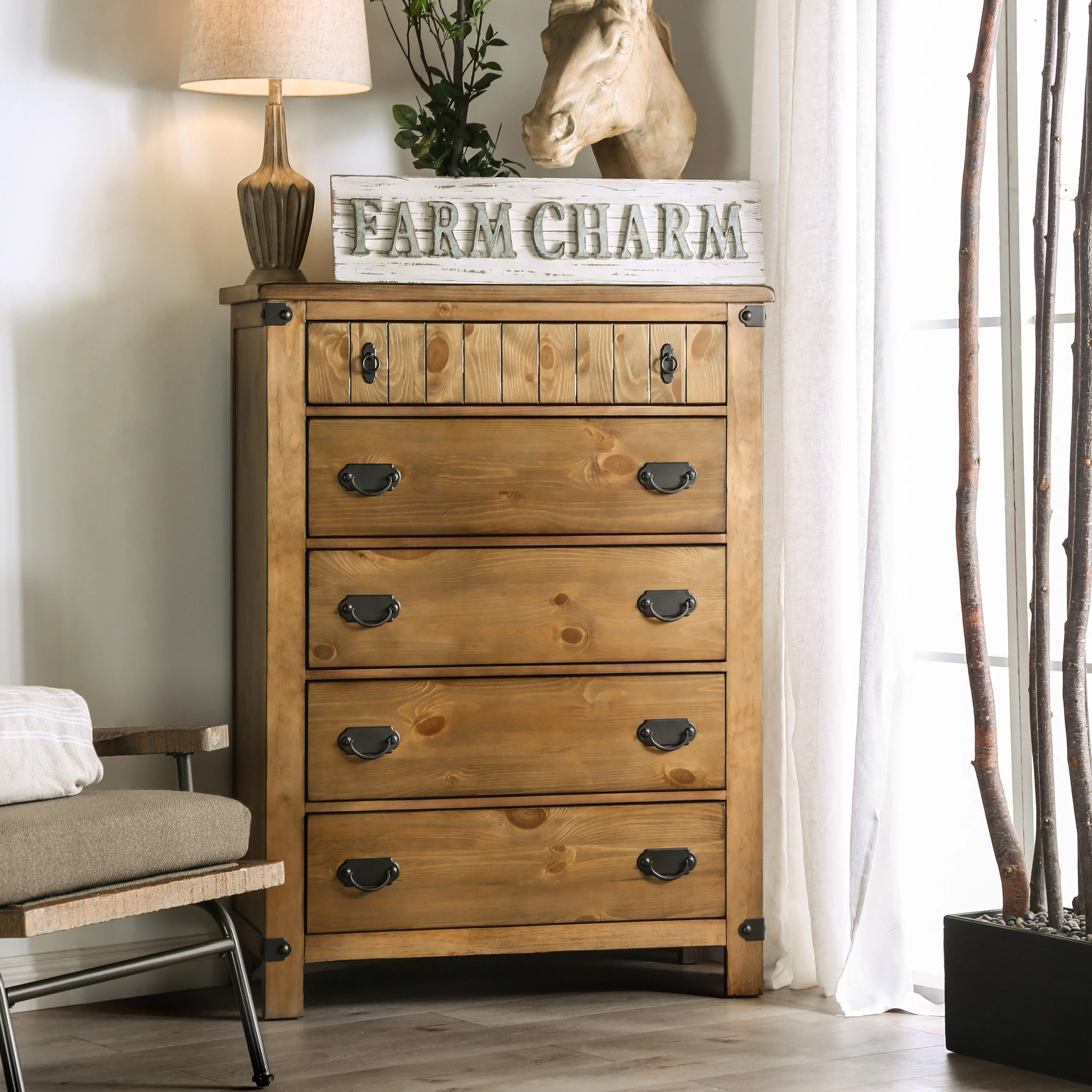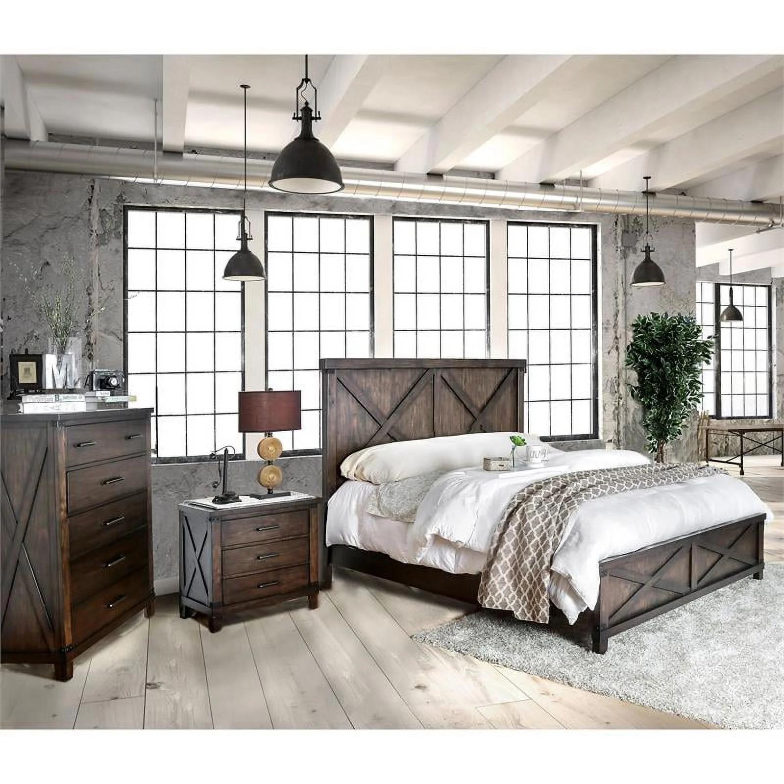 Rustic Weathered Gray Pine Wood Queen Bedroom Set 6pcs FOA AM7973 Rockwall
