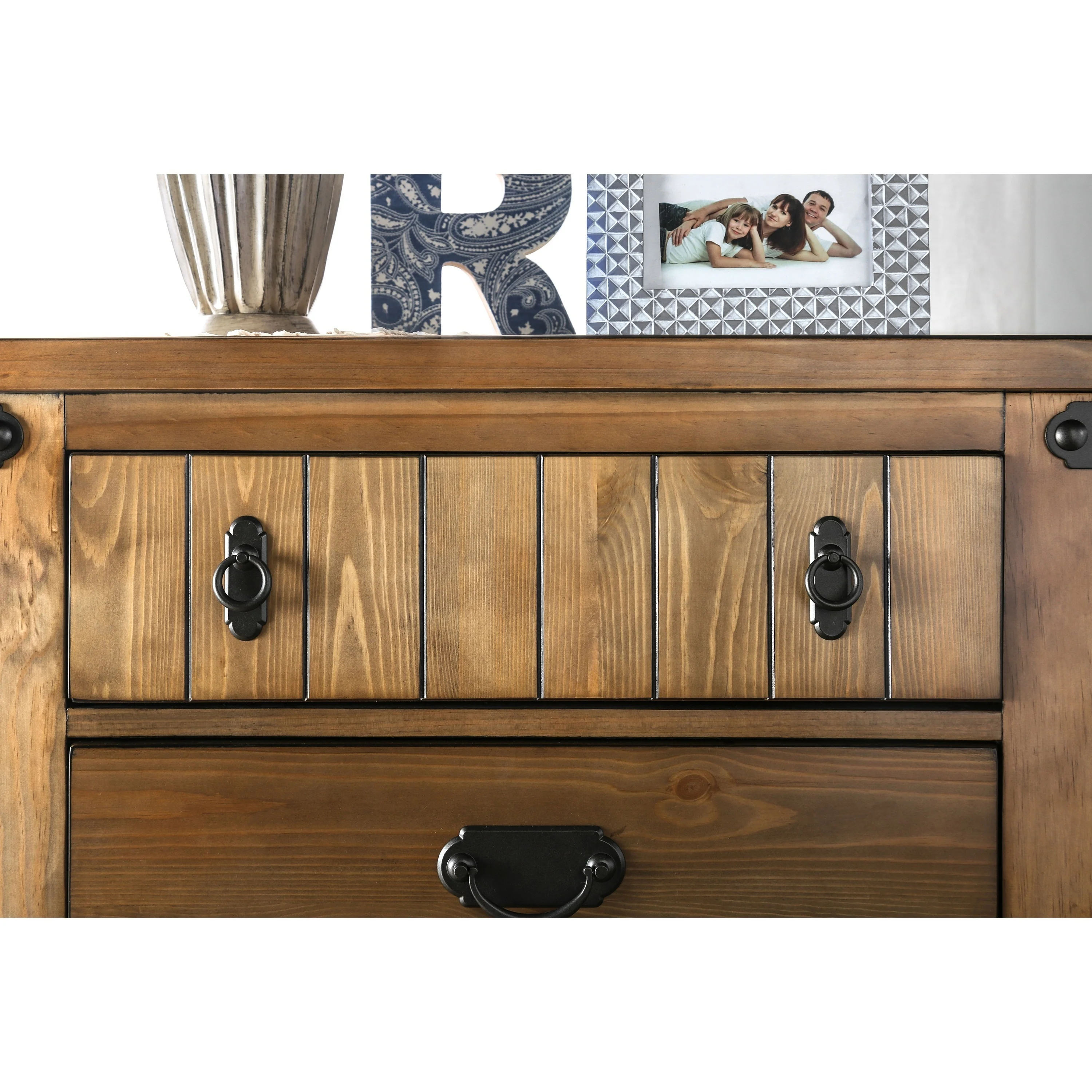 Furniture of America Sierren Country Brown Wood 3-Piece Panel Bedroom Set with USB Port by Queen