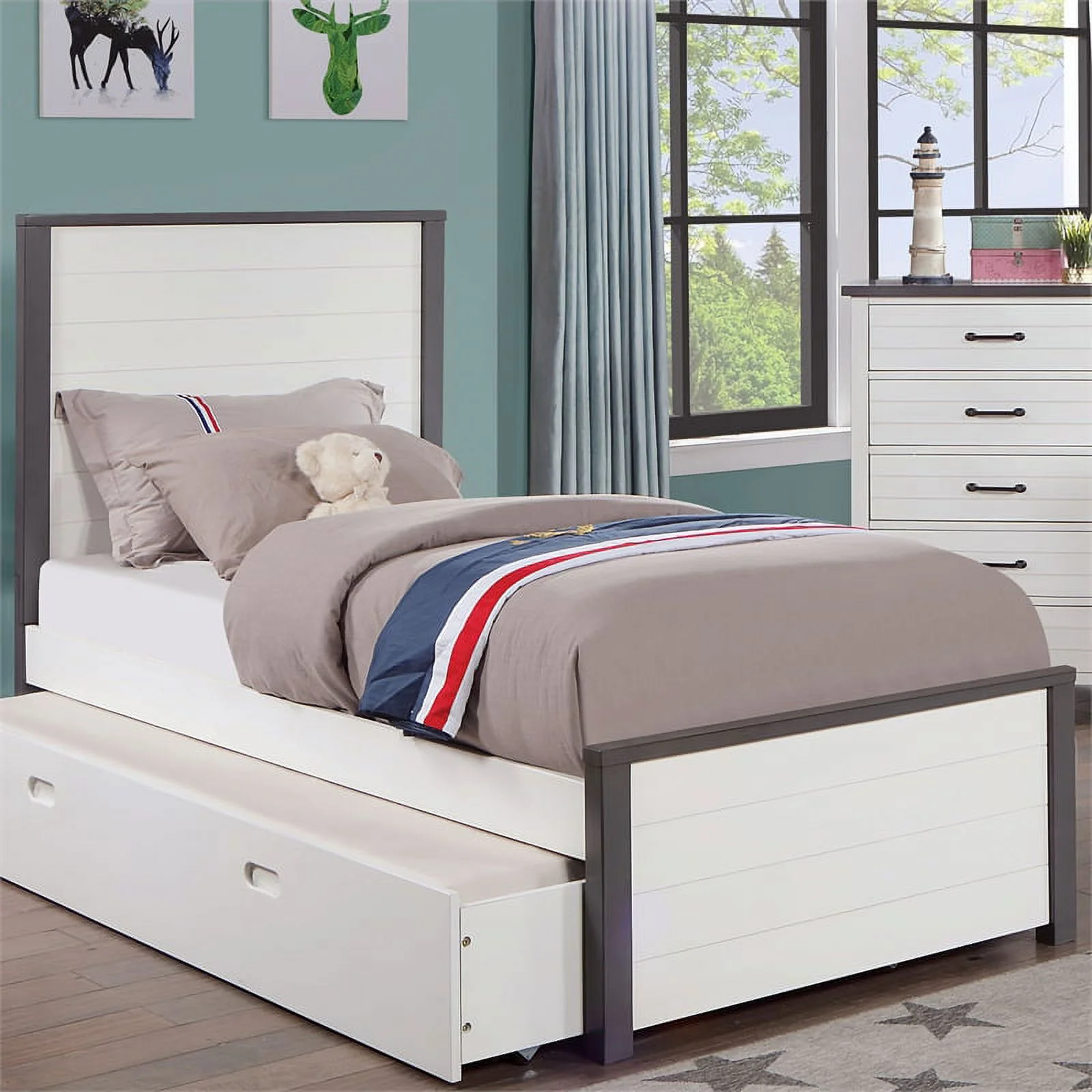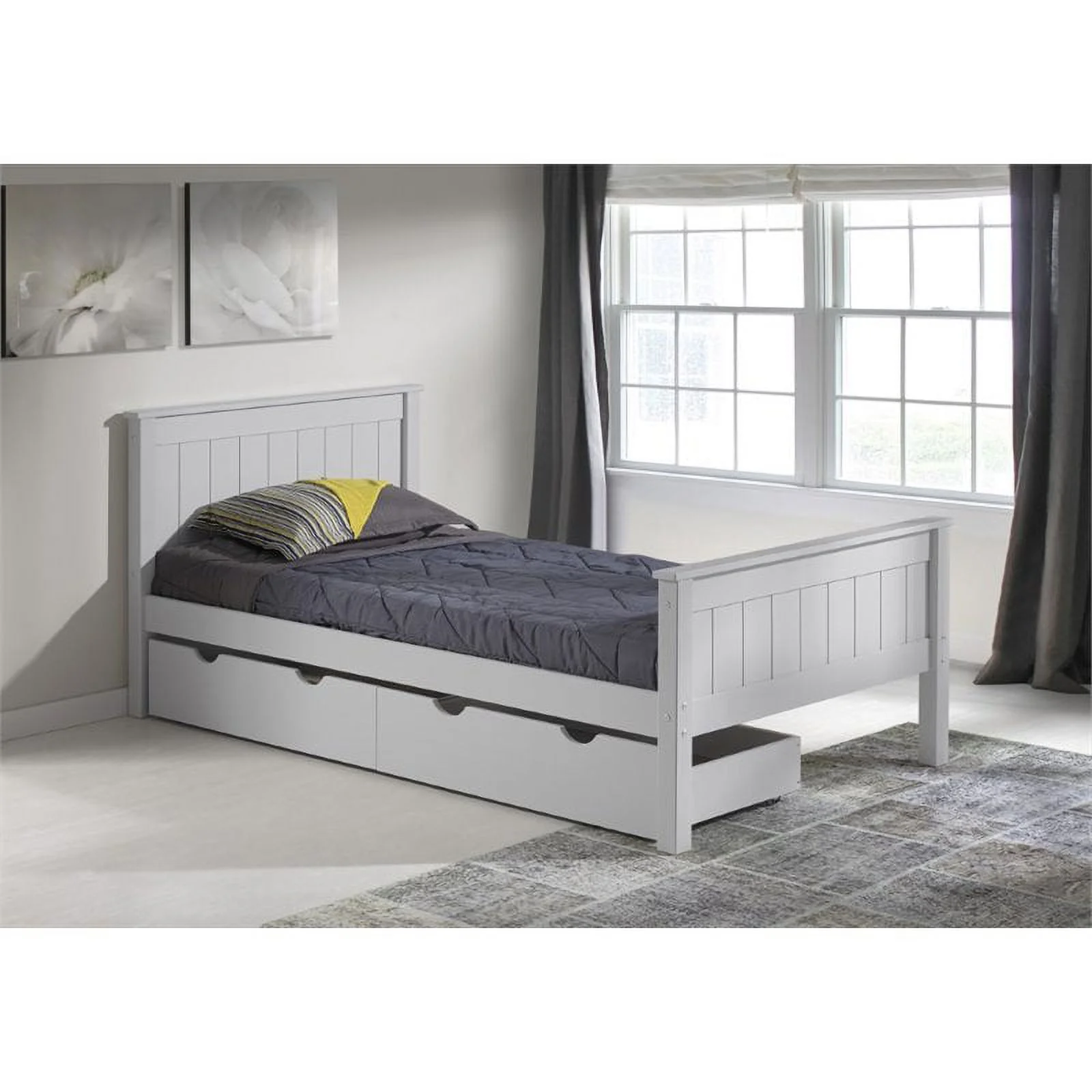 Rosebery Kids Twin Wood Platform Bed with Storage Drawers in Dove Gray