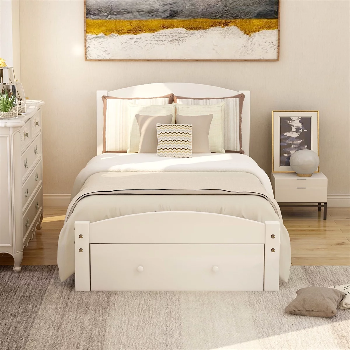 Adrinfly Wood Platform Bed Twin Bed Frame Mattress Foundation with Headboard and Wood Slat Support