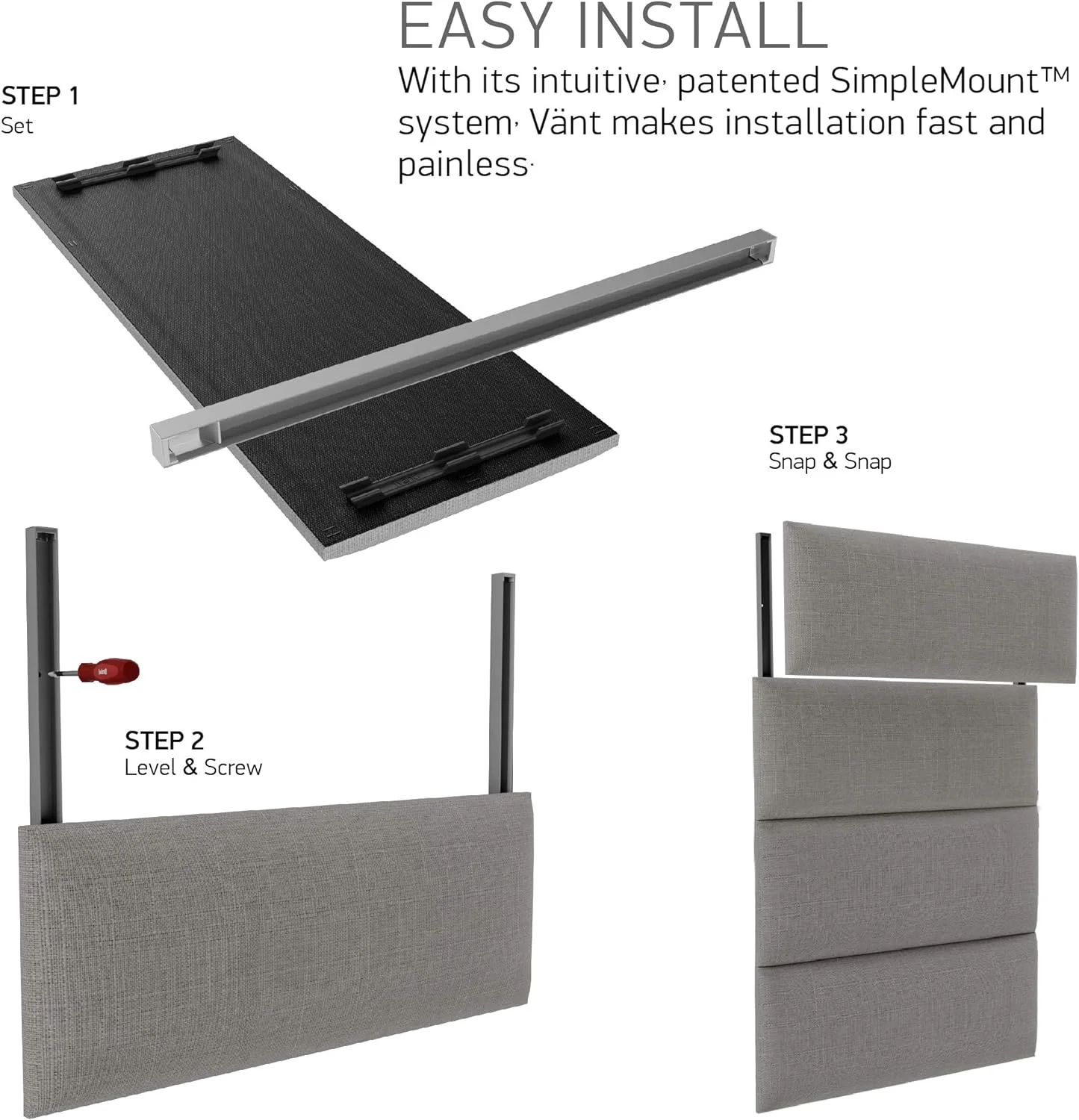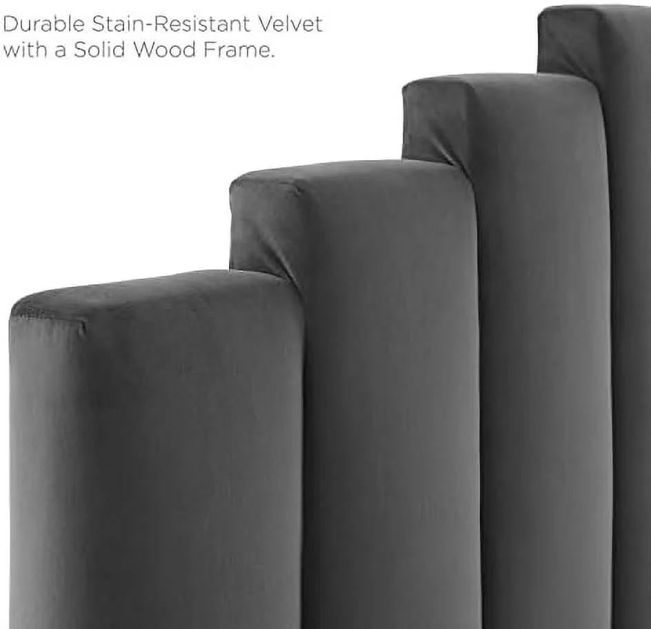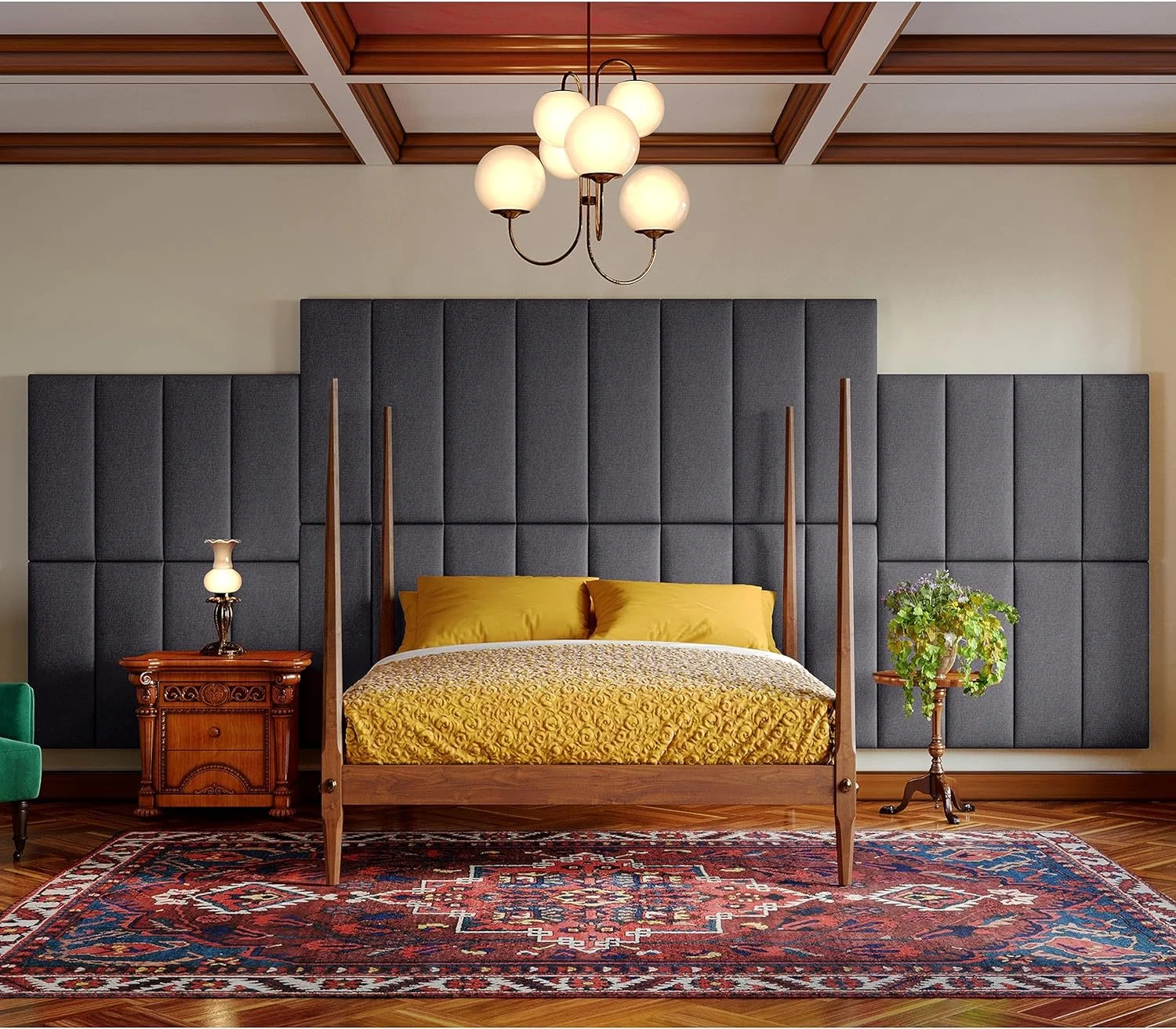Panelist Modern Padded Headboard – Set Of 4 Wall Mounted Panels (Each 11.25" X 30") - Queen, Charcoal Microvelvet