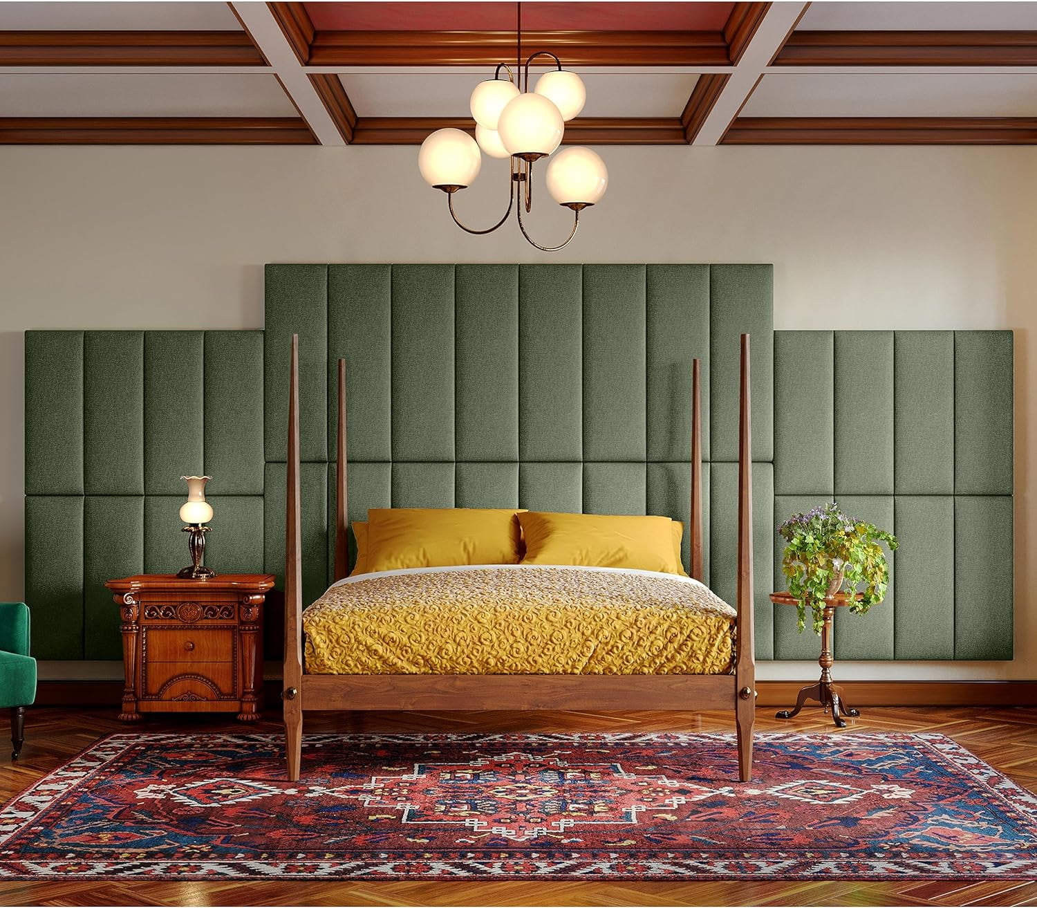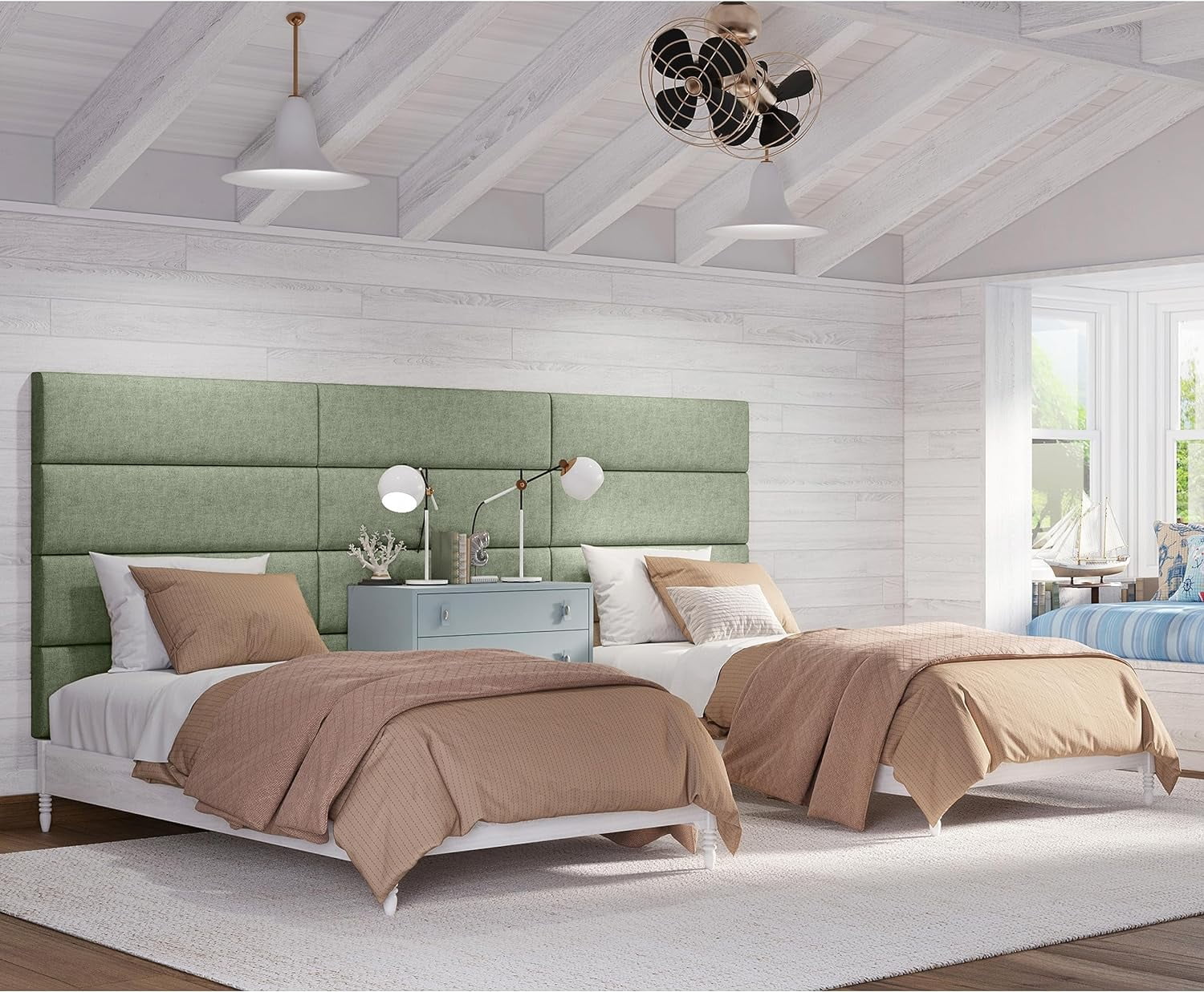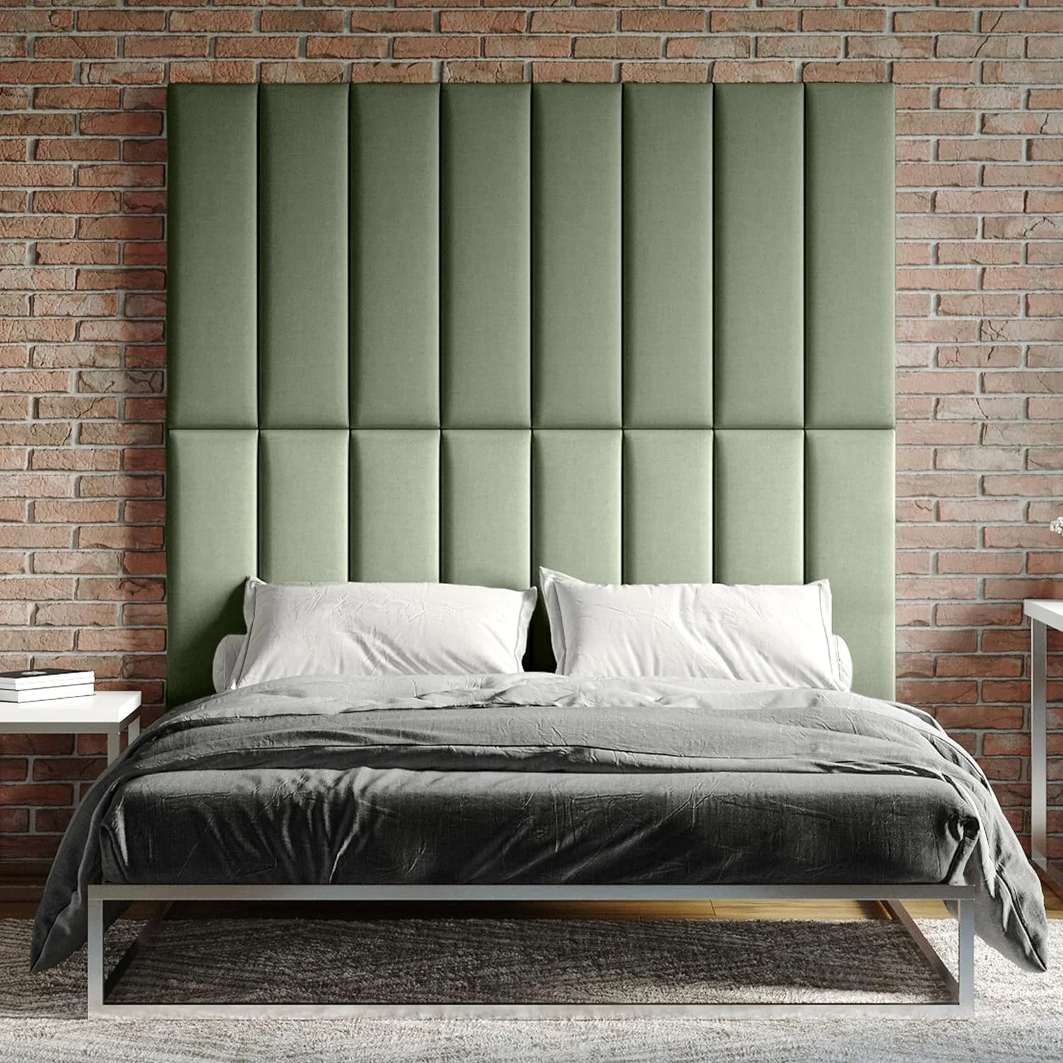 Panelist Modern Padded Headboard – Set Of 4 Wall Mounted Panels (Each 11.25" X 38") - King, Cypress Green Microvelvet
