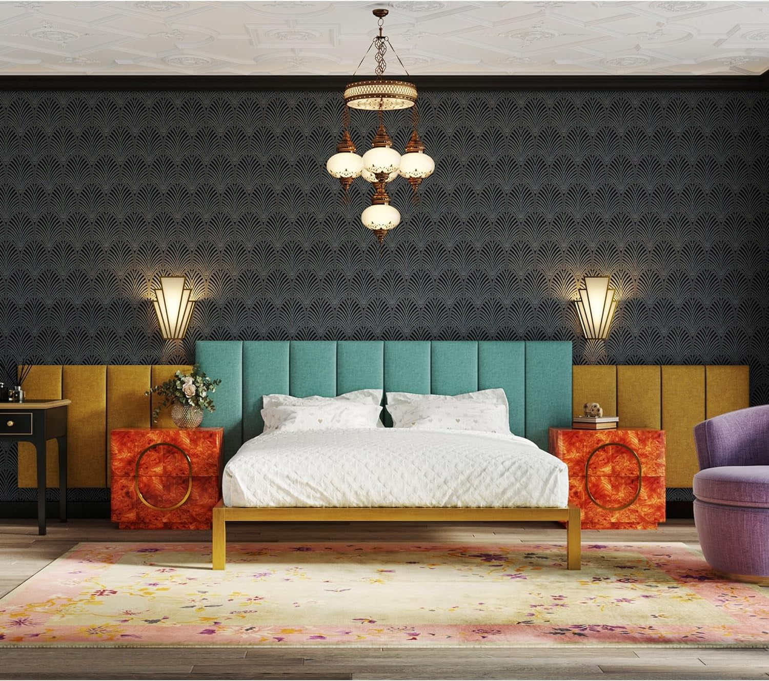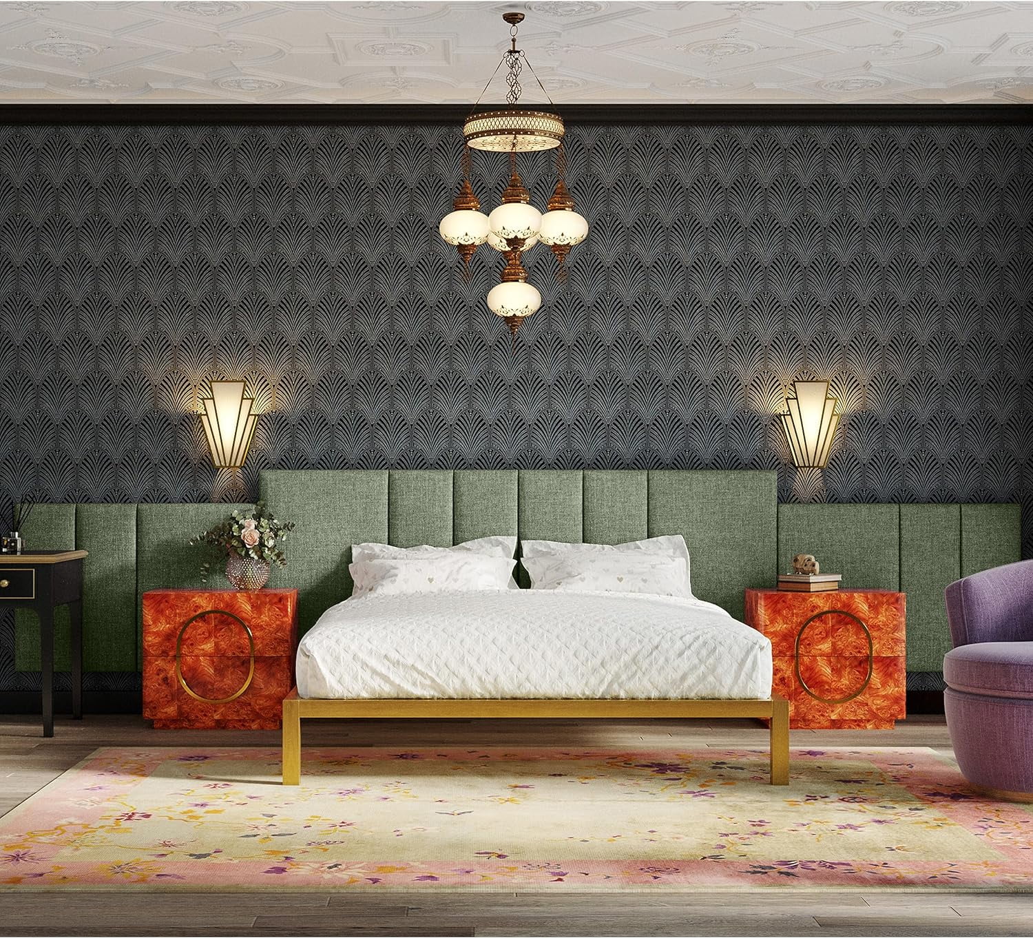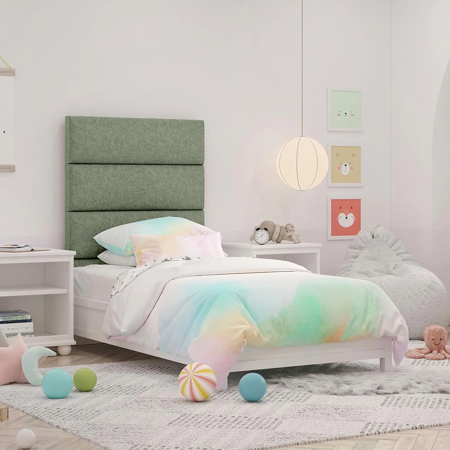Panelist Modern Padded Headboard – Set Of 4 Wall Mounted Panels (Each 11.25" X 38") - King, Cypress Green Microvelvet