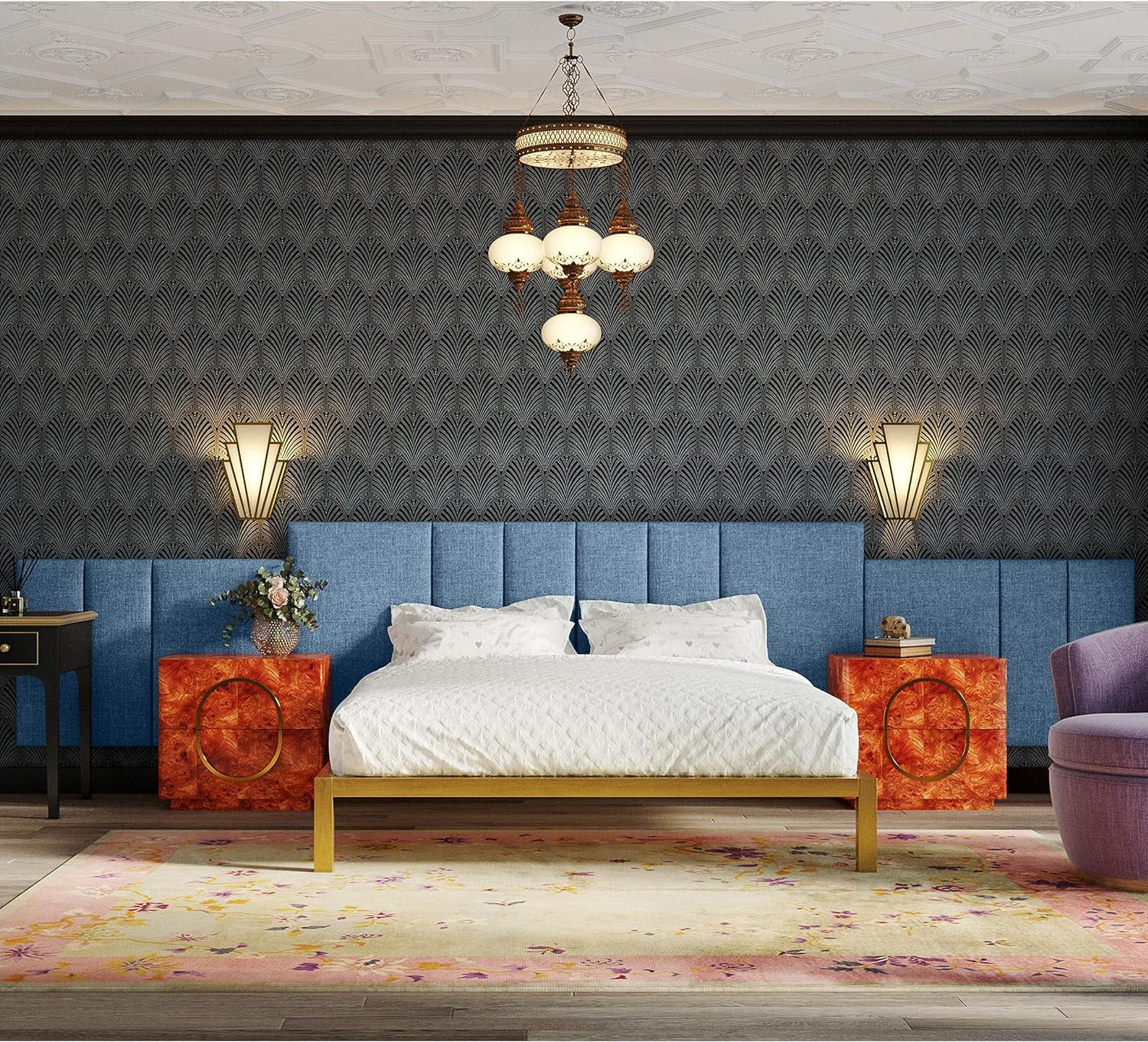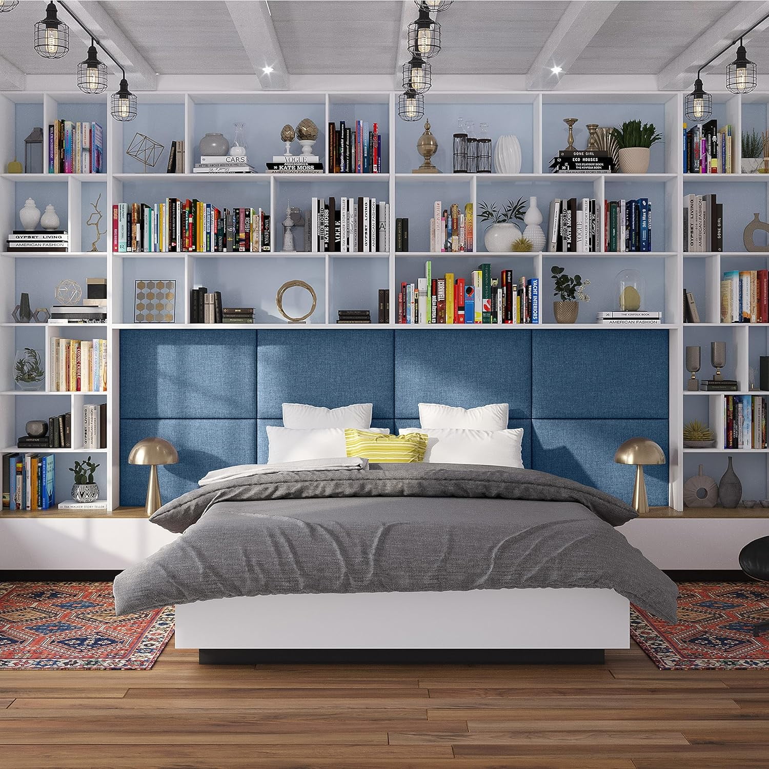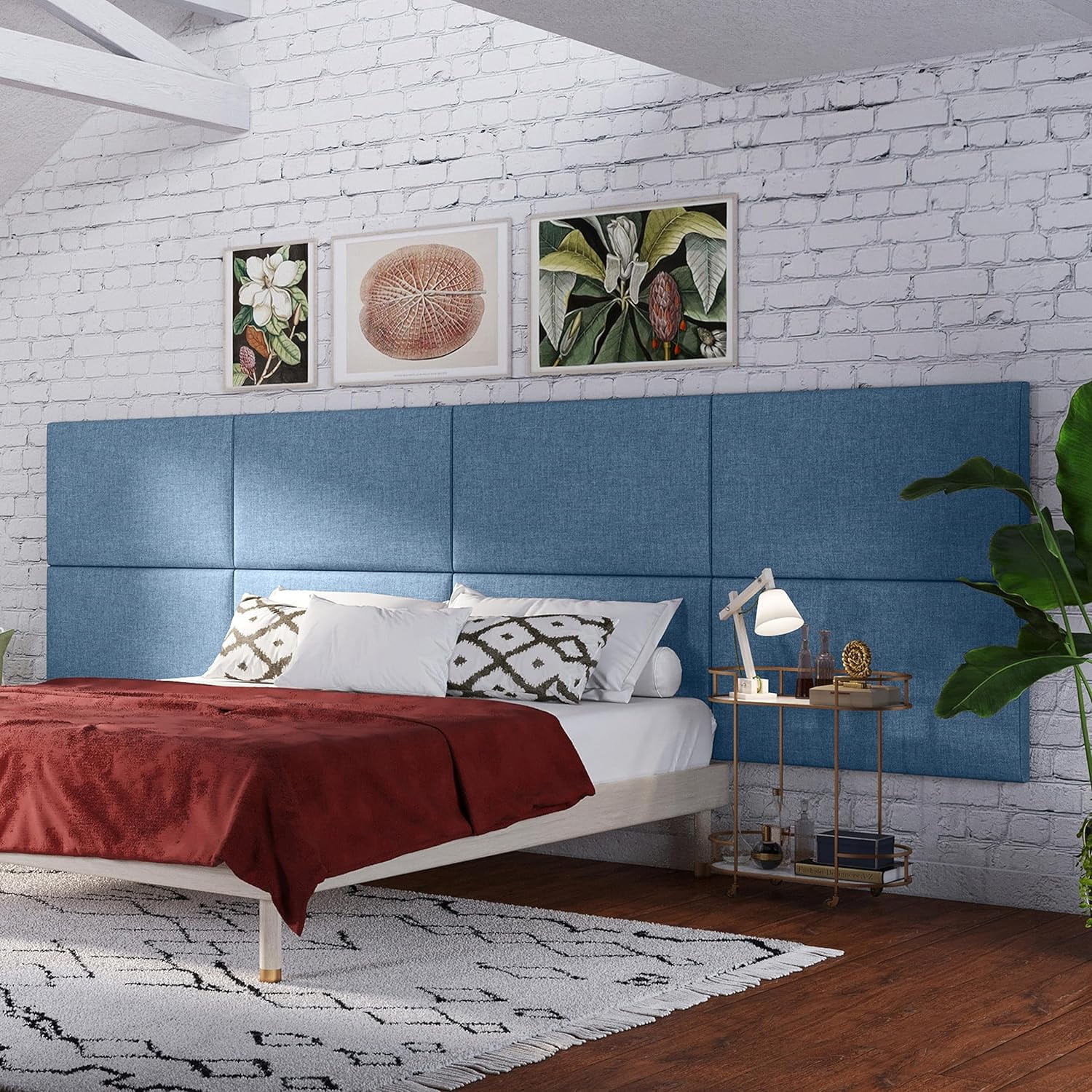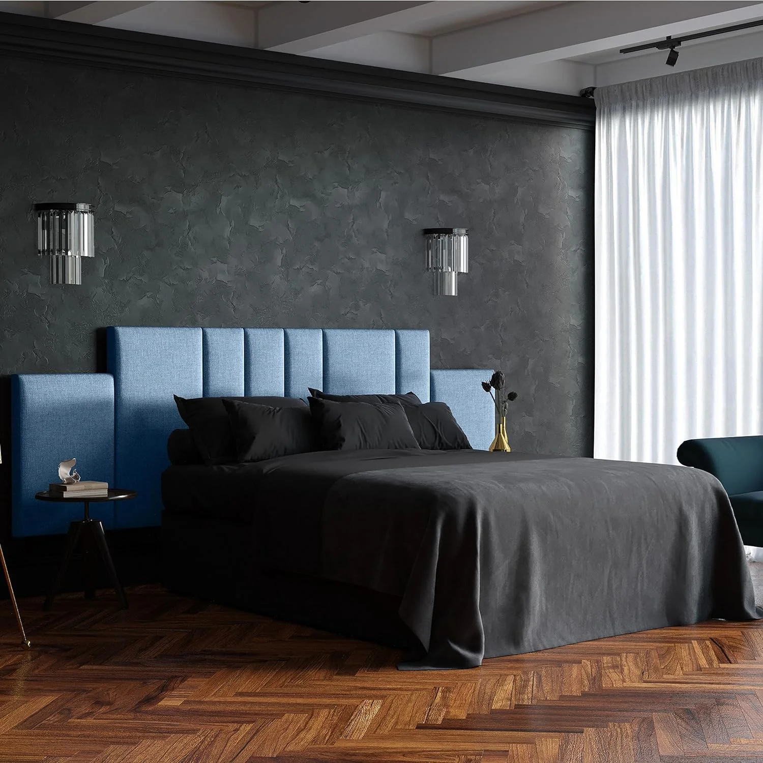Panelist Modern Padded Headboard- Wall Mounted Panel (22.5" X 22.5") - Microvelvet Petrol Blue