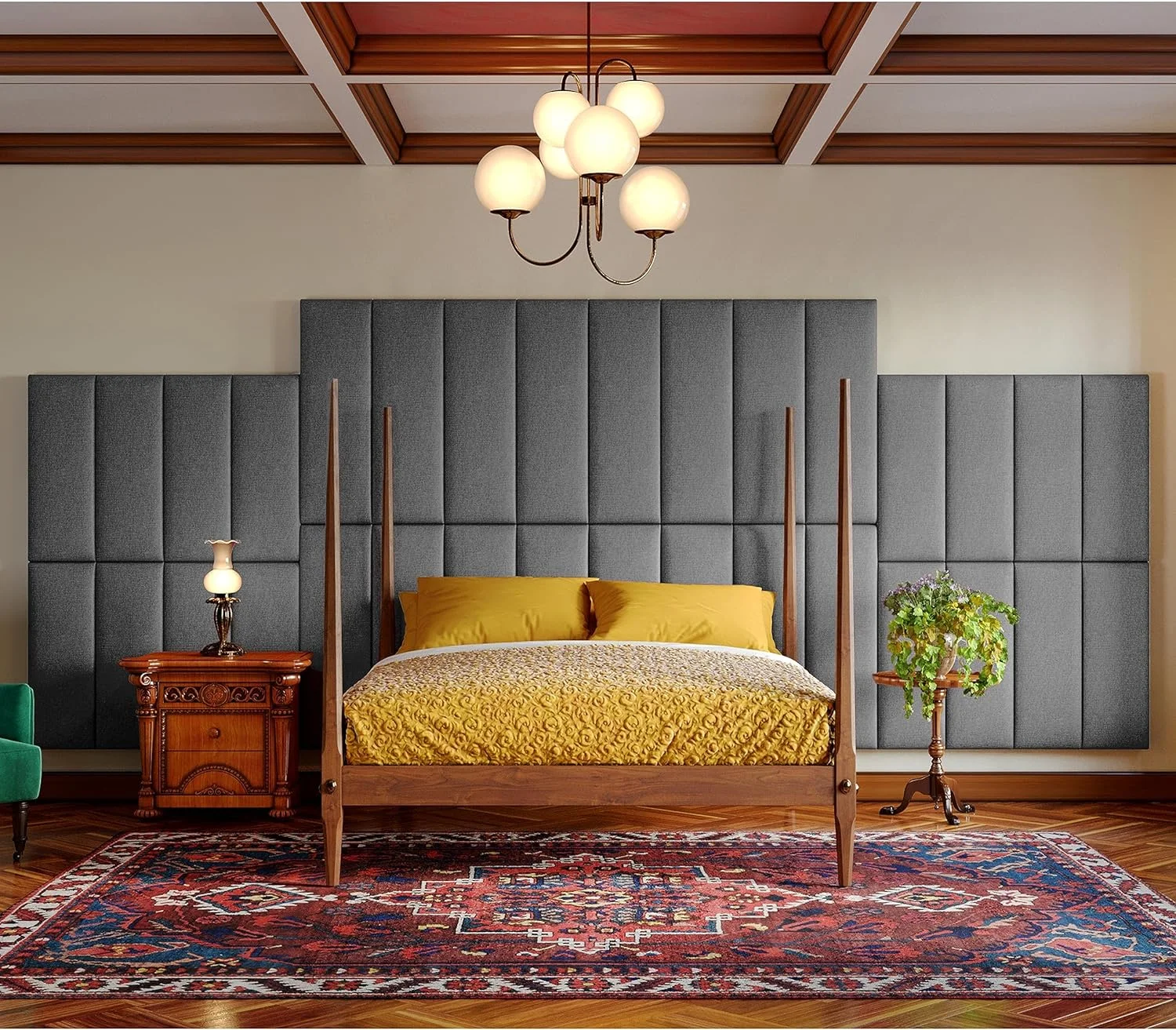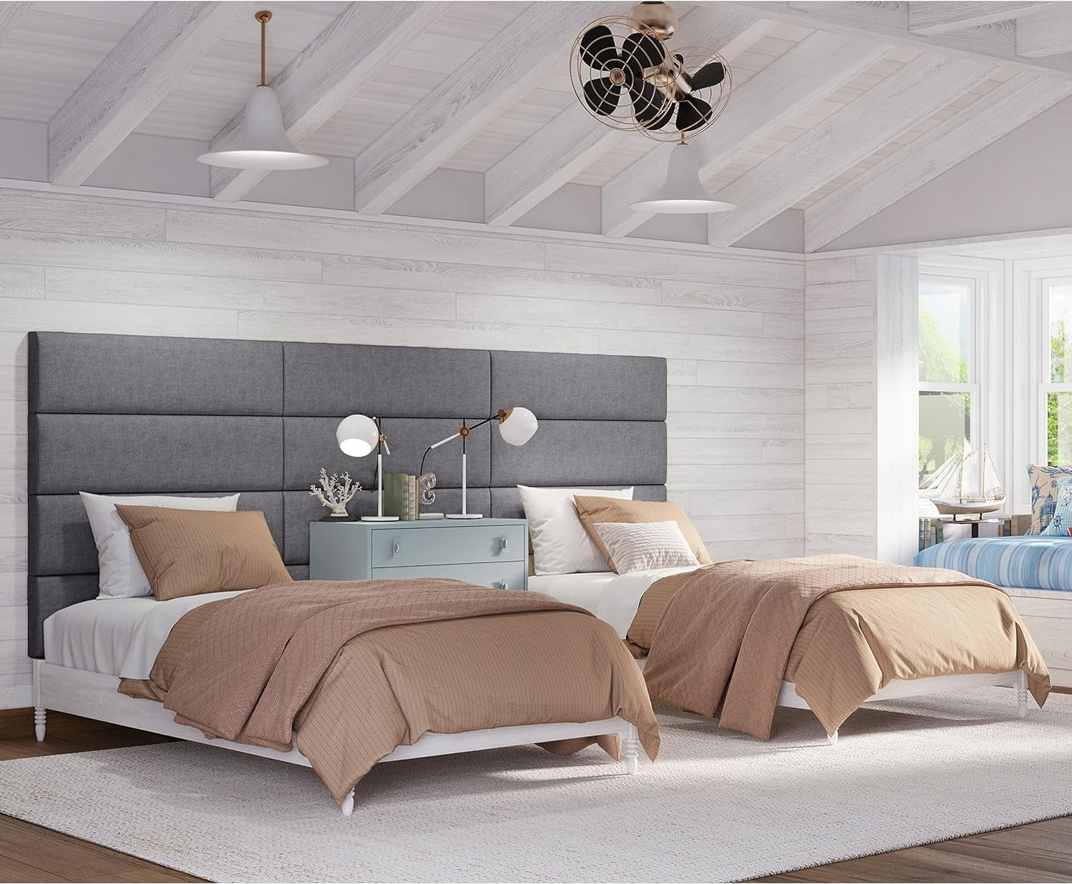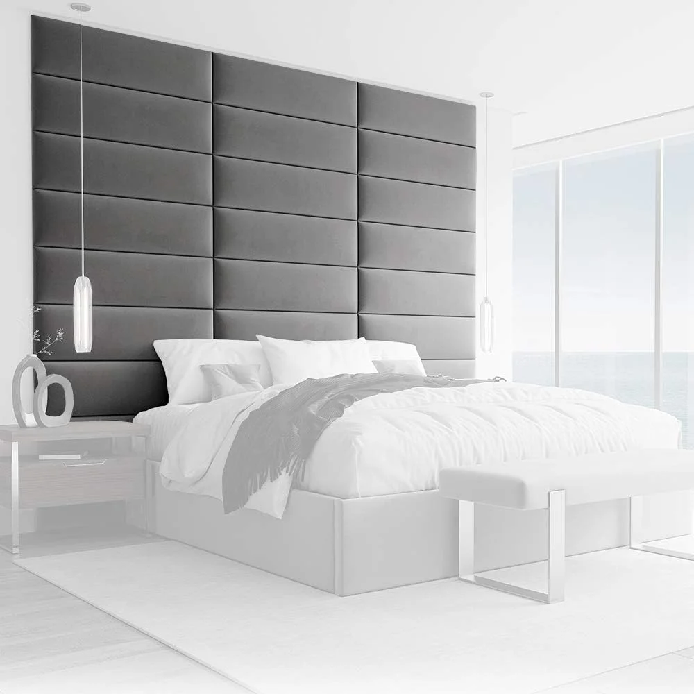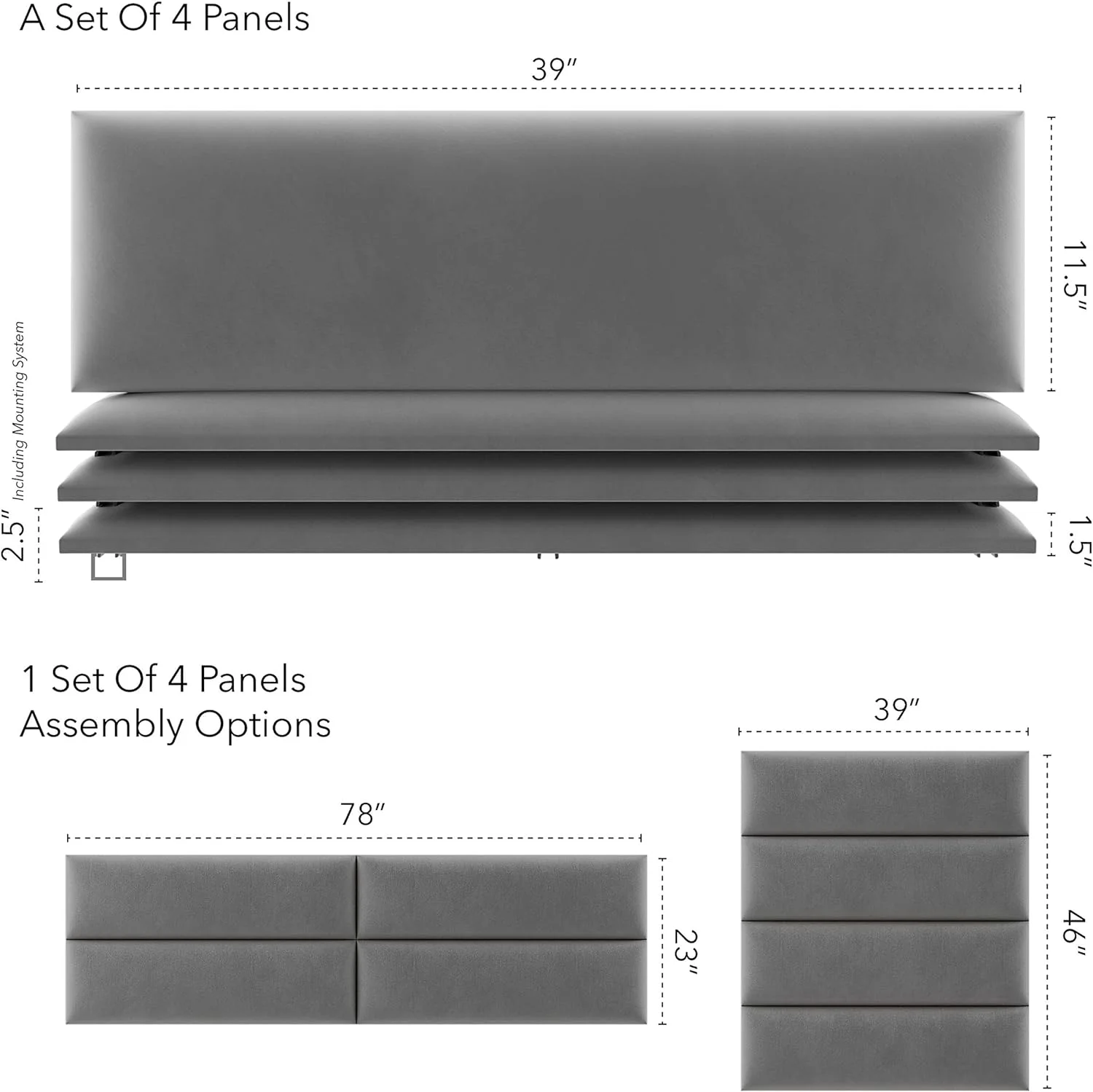Panelist Modern Padded Headboard – Set Of 4 Wall Mounted Panels (Each 11.25" X 30") - Queen, Mouse Grey Microvelvet