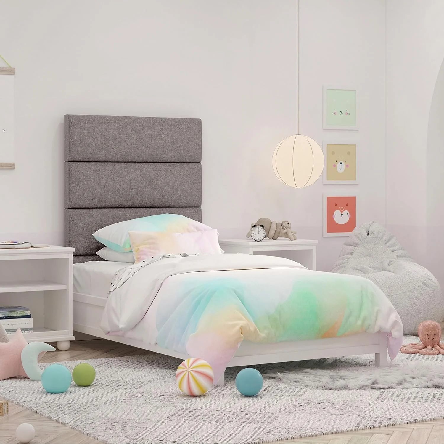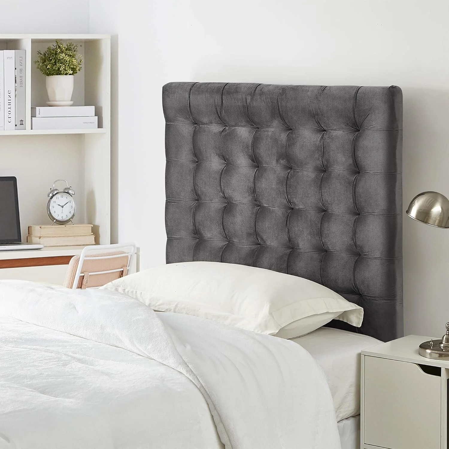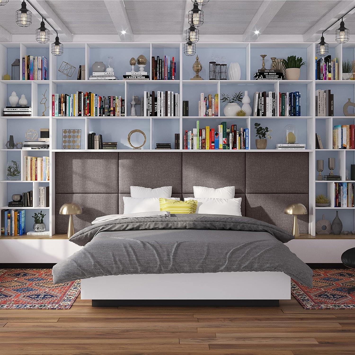 Panelist Modern Padded Headboard – Set Of 4 Wall Mounted Panels (Each 11.25" X 30") - Queen, Mouse Grey Microvelvet