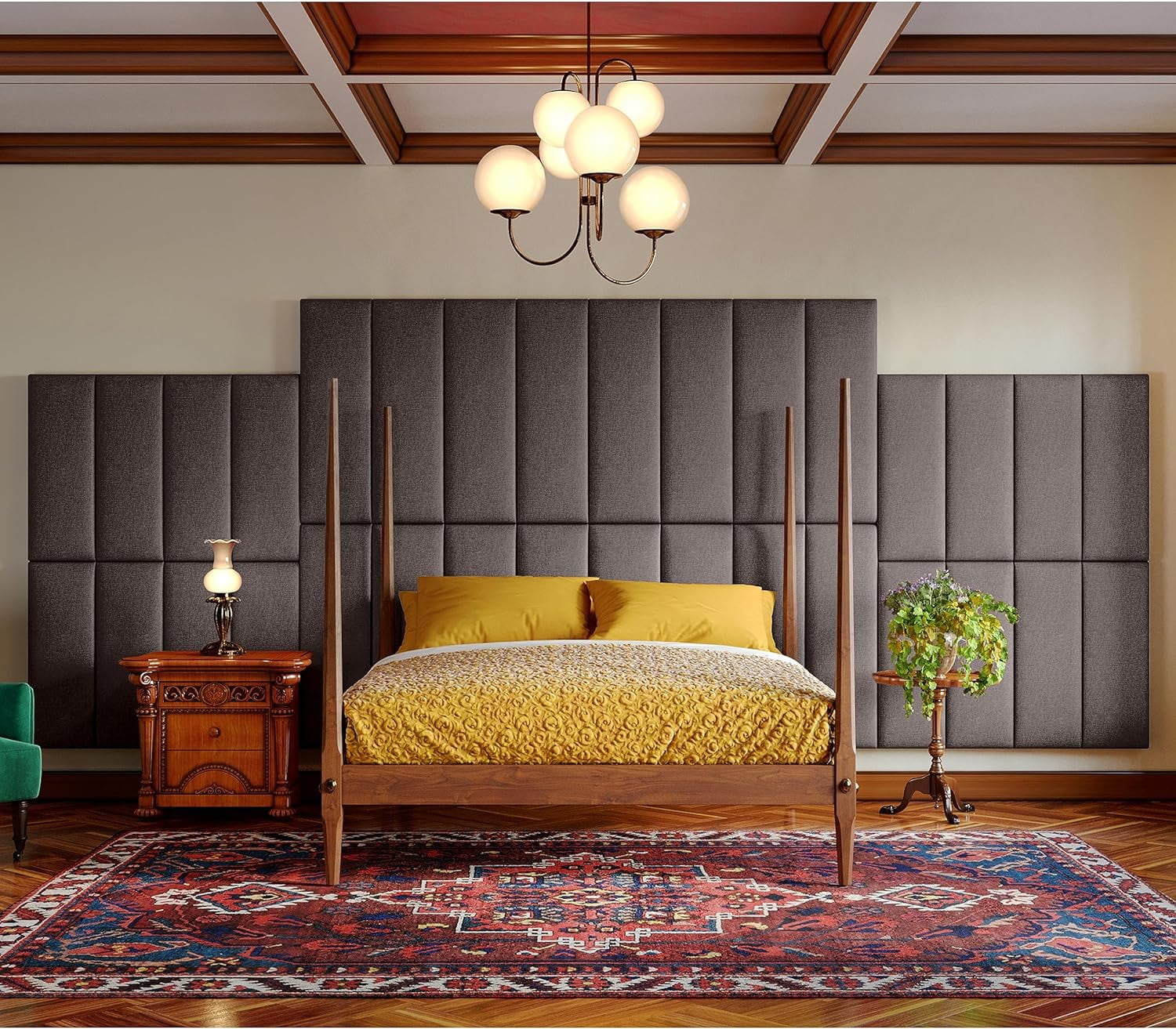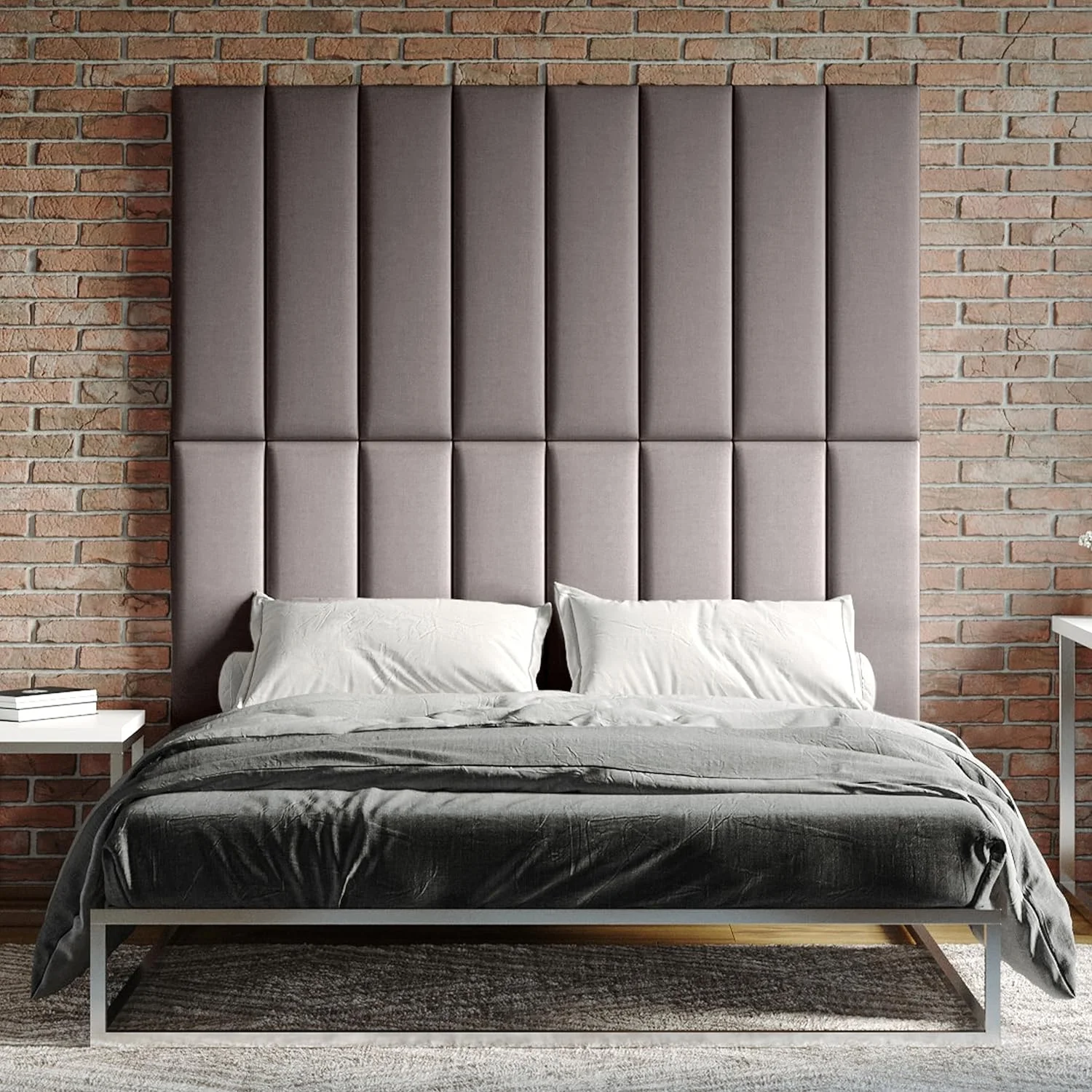 Panelist Modern Padded Headboard – Set Of 4 Wall Mounted Panels (Each 11.25" X 30") - Queen, Havana Brown Microvelvet