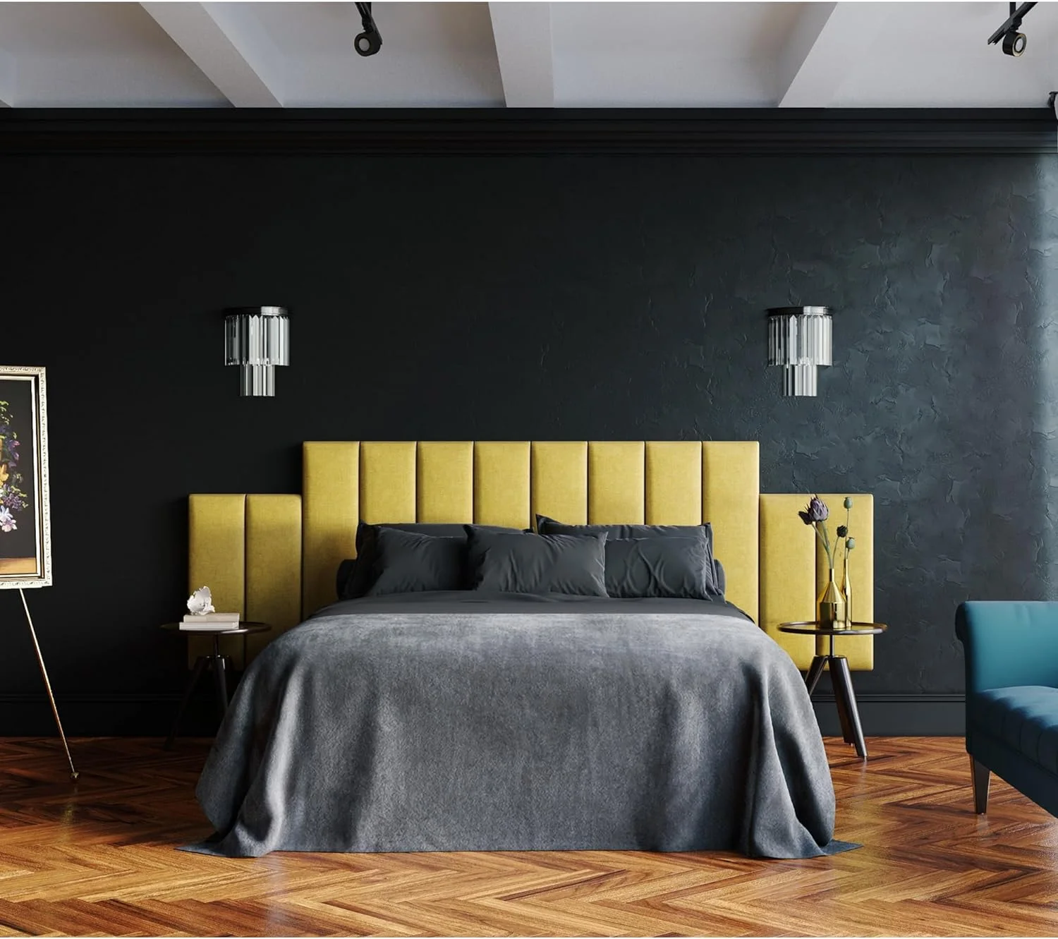 Panelist Modern Padded Headboard – Set Of 4 Wall Mounted Panels (Each 11.25" X 38") - King, Charcoal Microvelvet