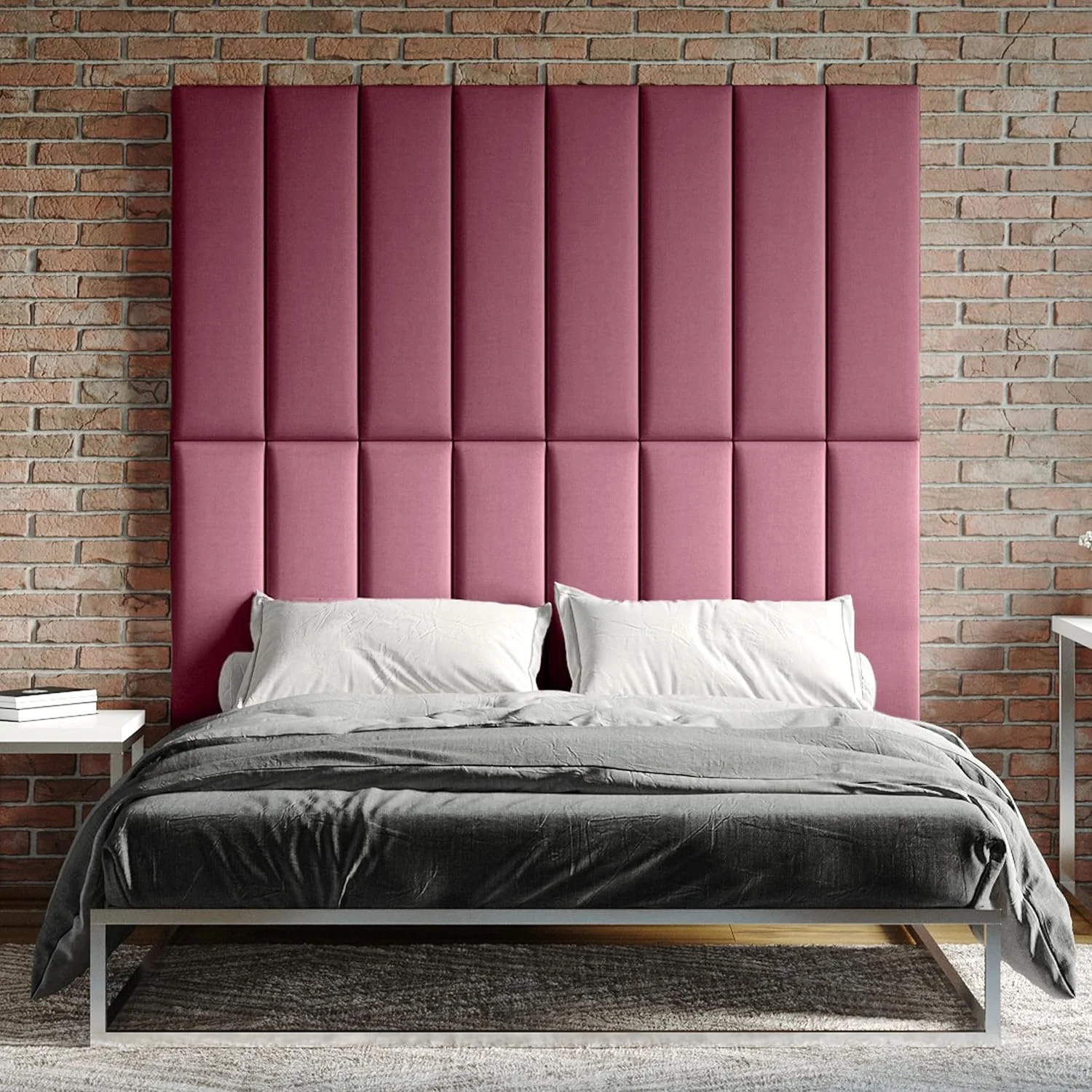 Panelist Modern Padded Headboard – Set Of 4 Wall Mounted Panels (Each 11.25" X 30") - Queen, Vino Red Microvelvet