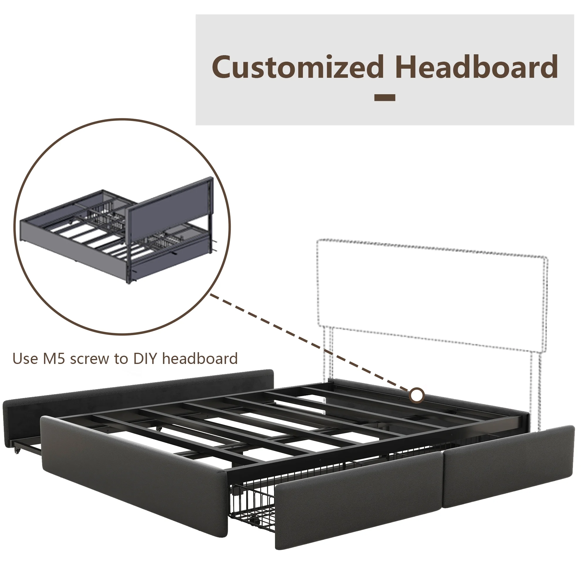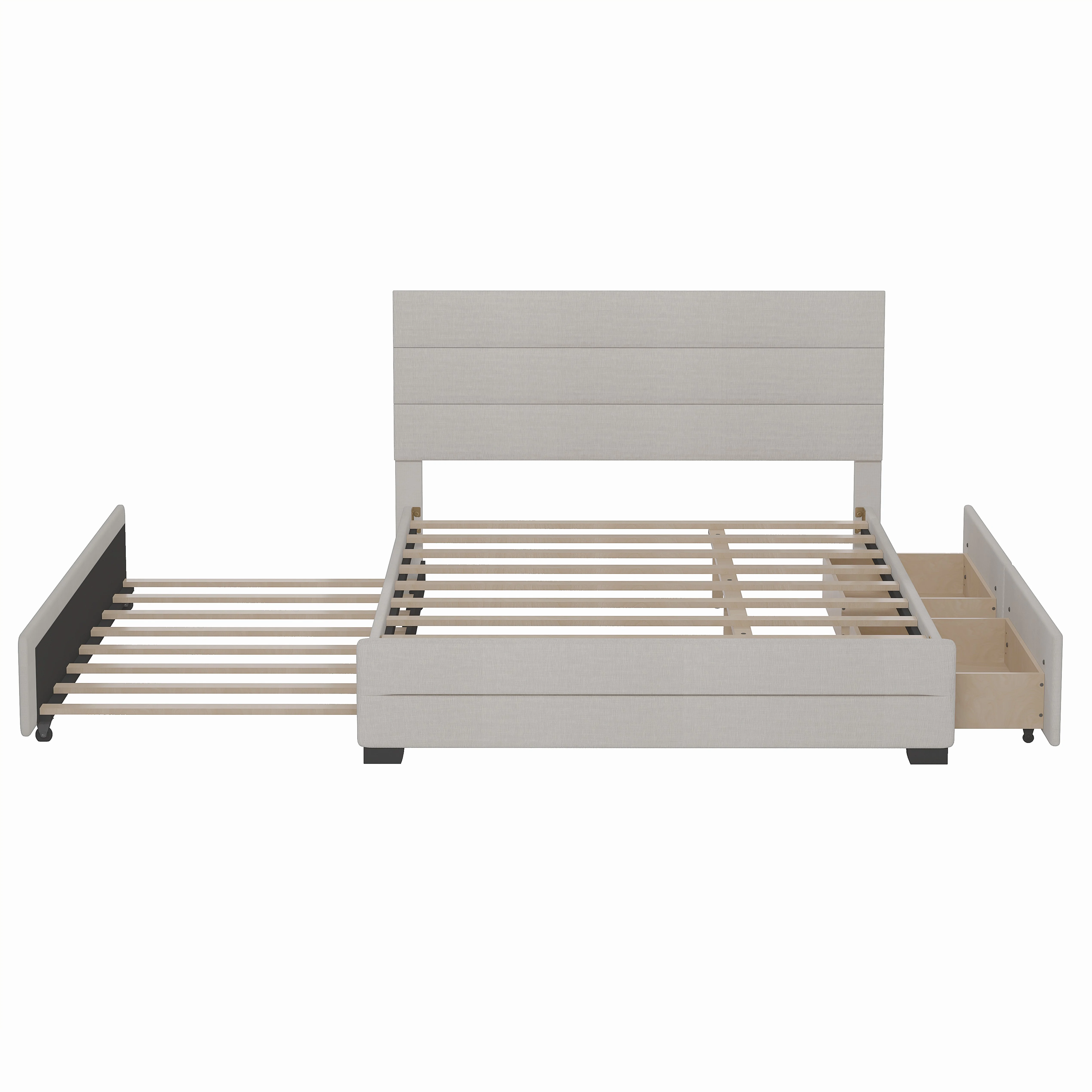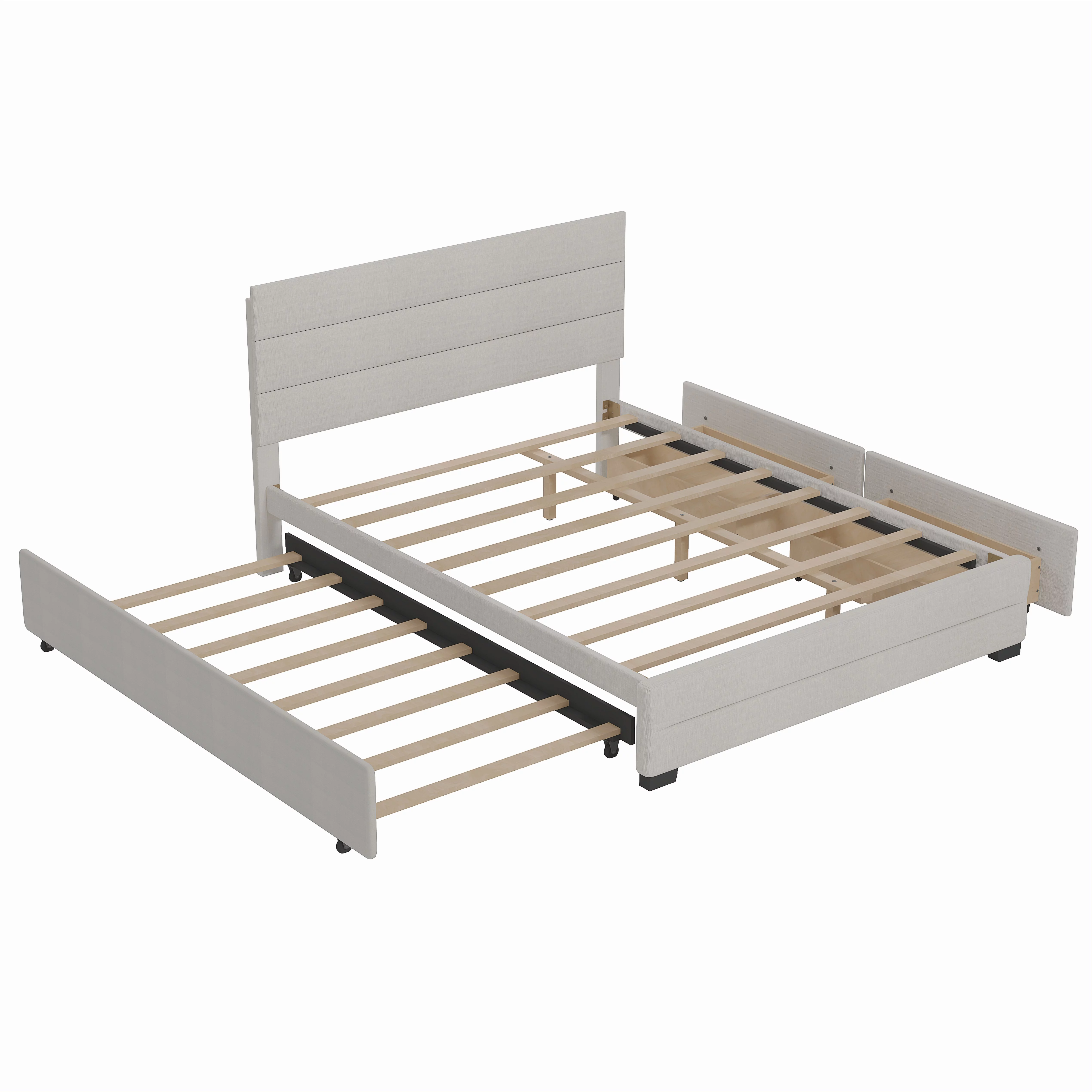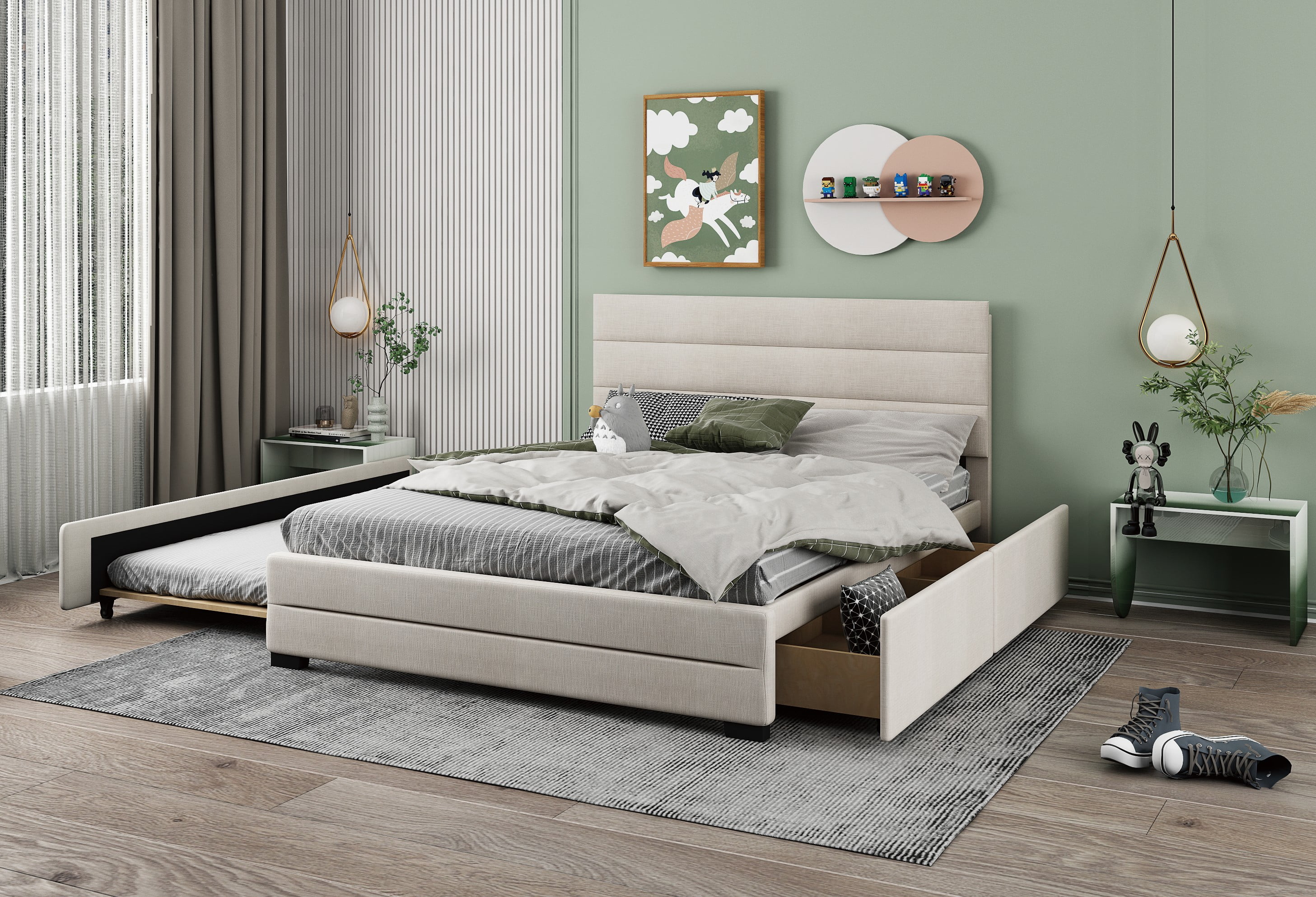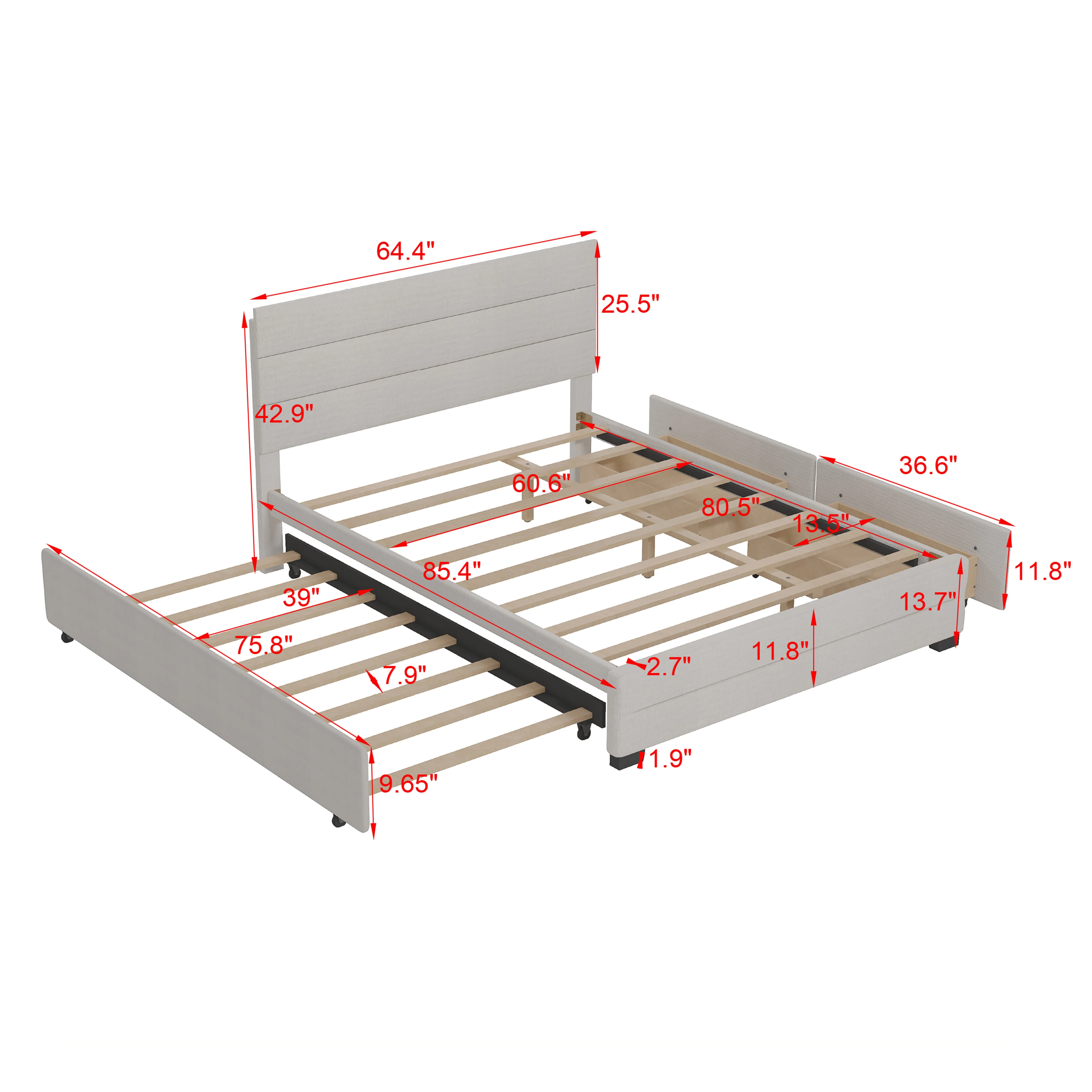 Full Size L-shaped Platform Beds with Trundle, Drawers and Table, Espresso