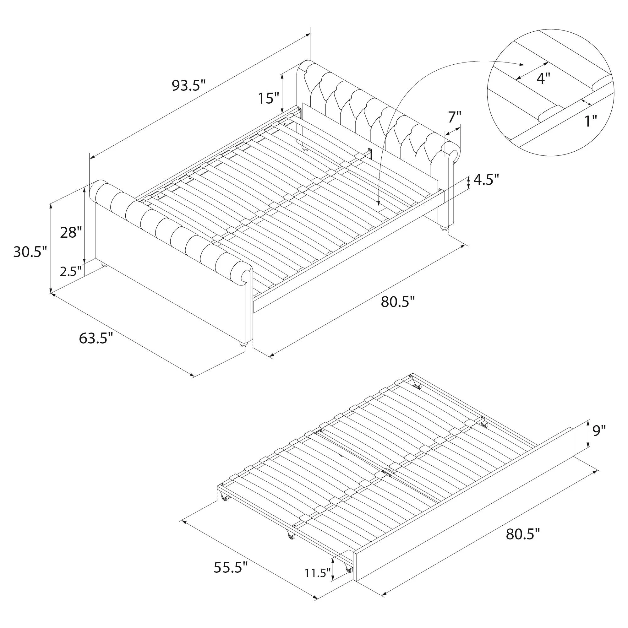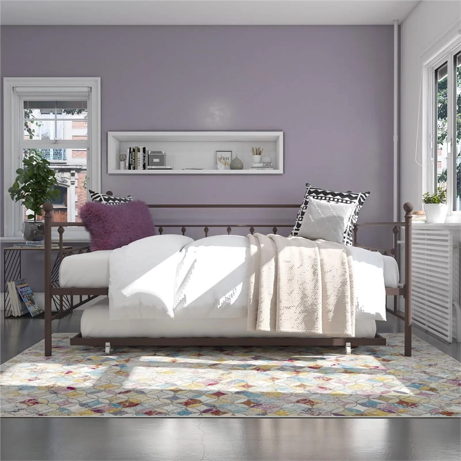 Pemberly Row Victorian Design Modern Metal Daybed and Trundle in Bronze