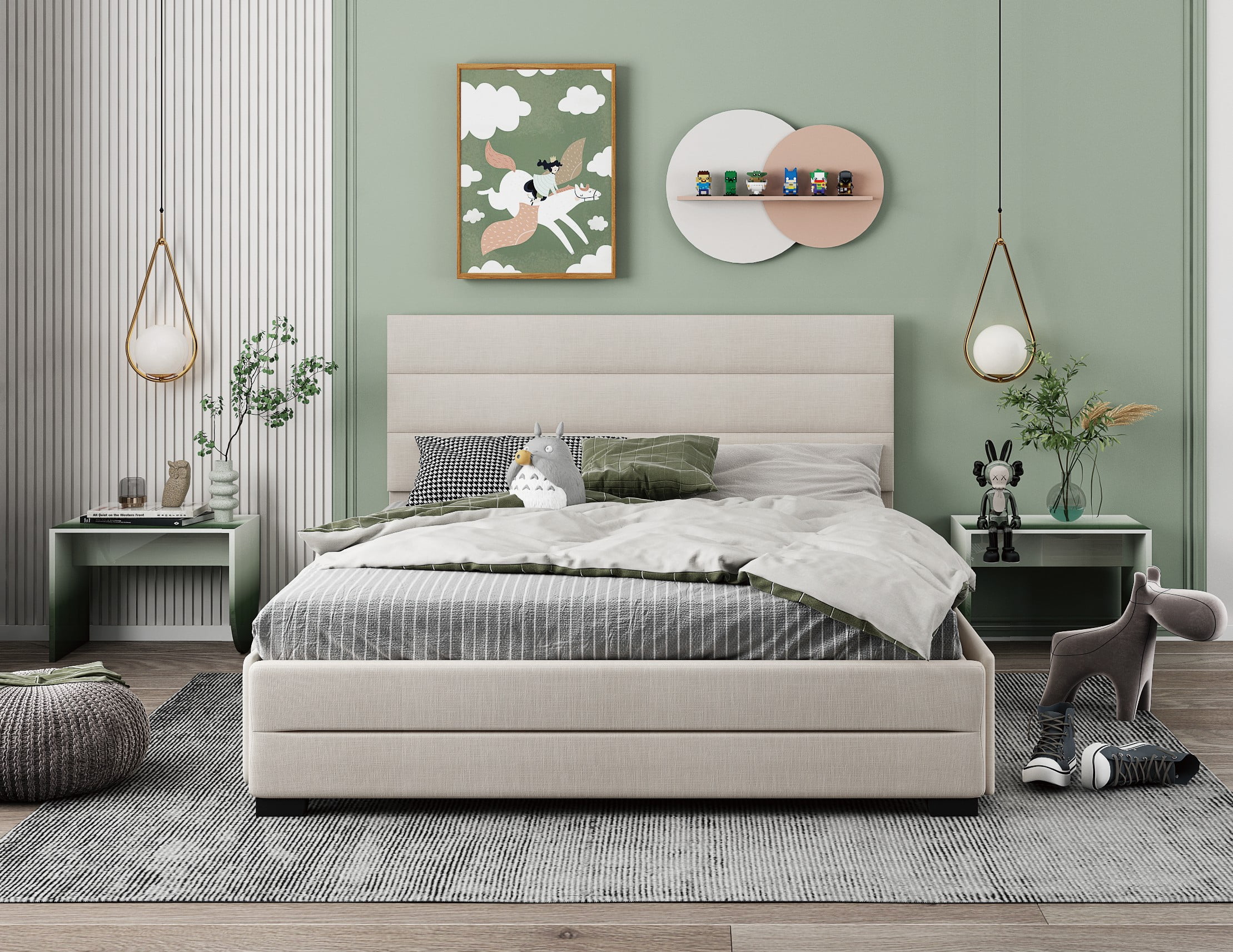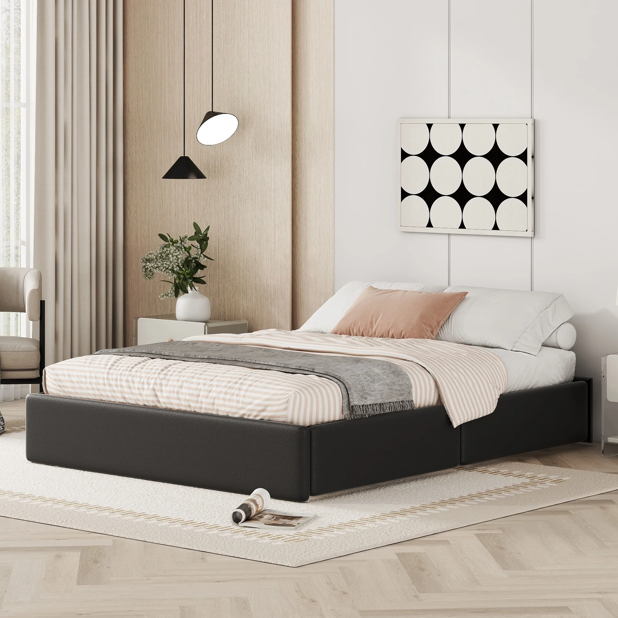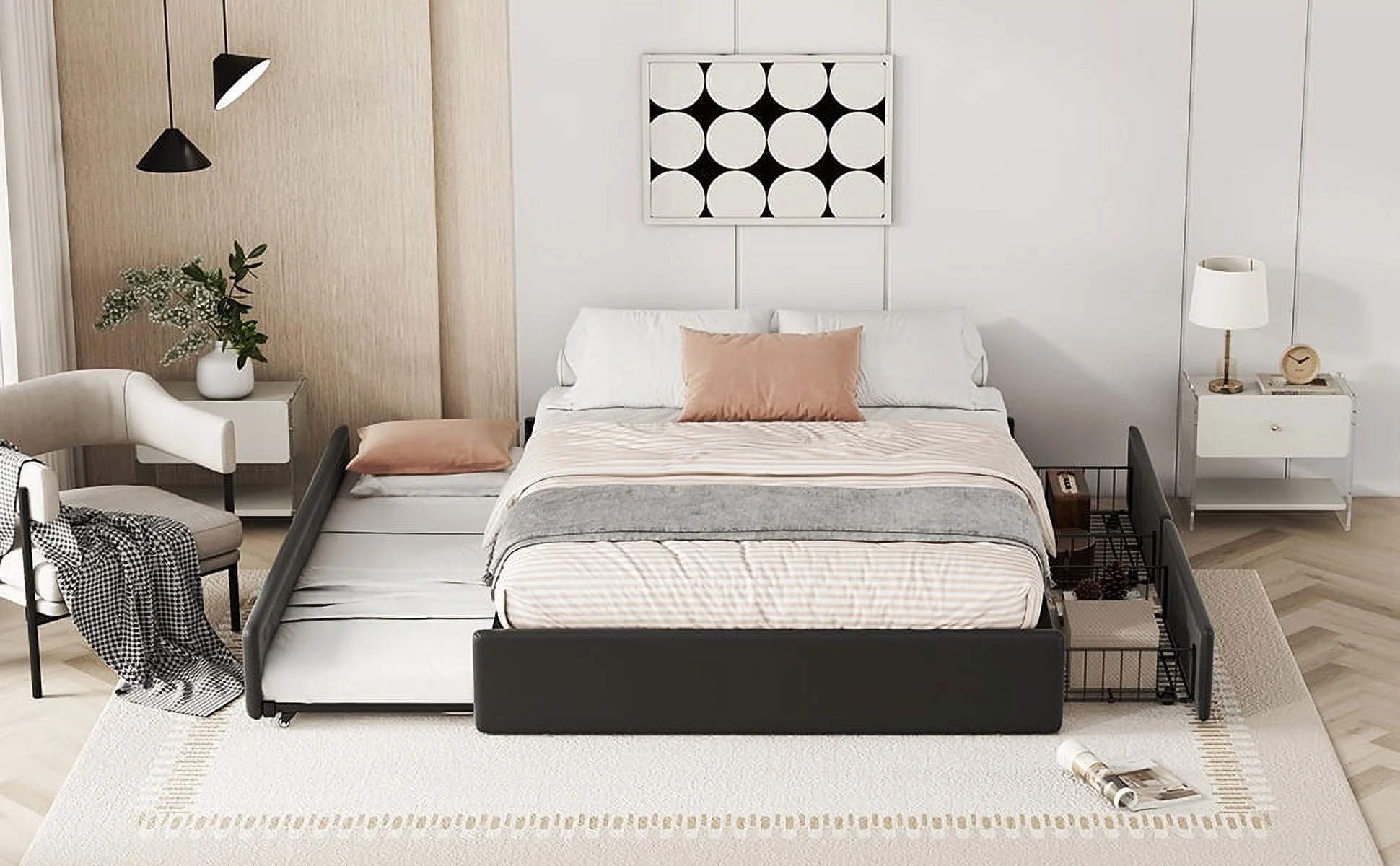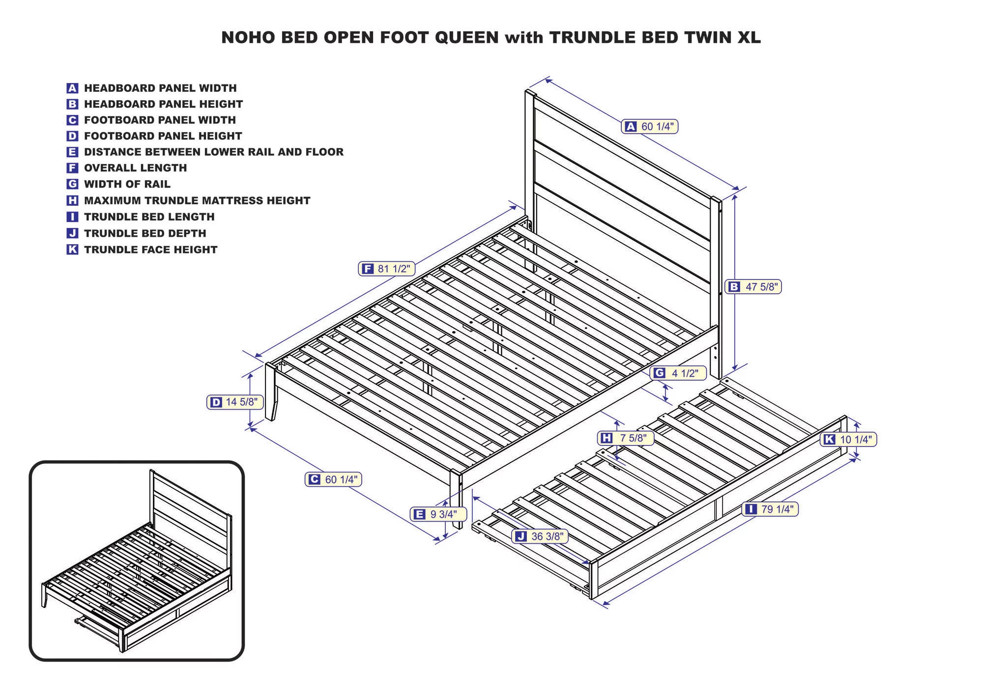 AFI NoHo 14" Queen Wood Platform Bed Frame with Twin XL Trundle, Walnut