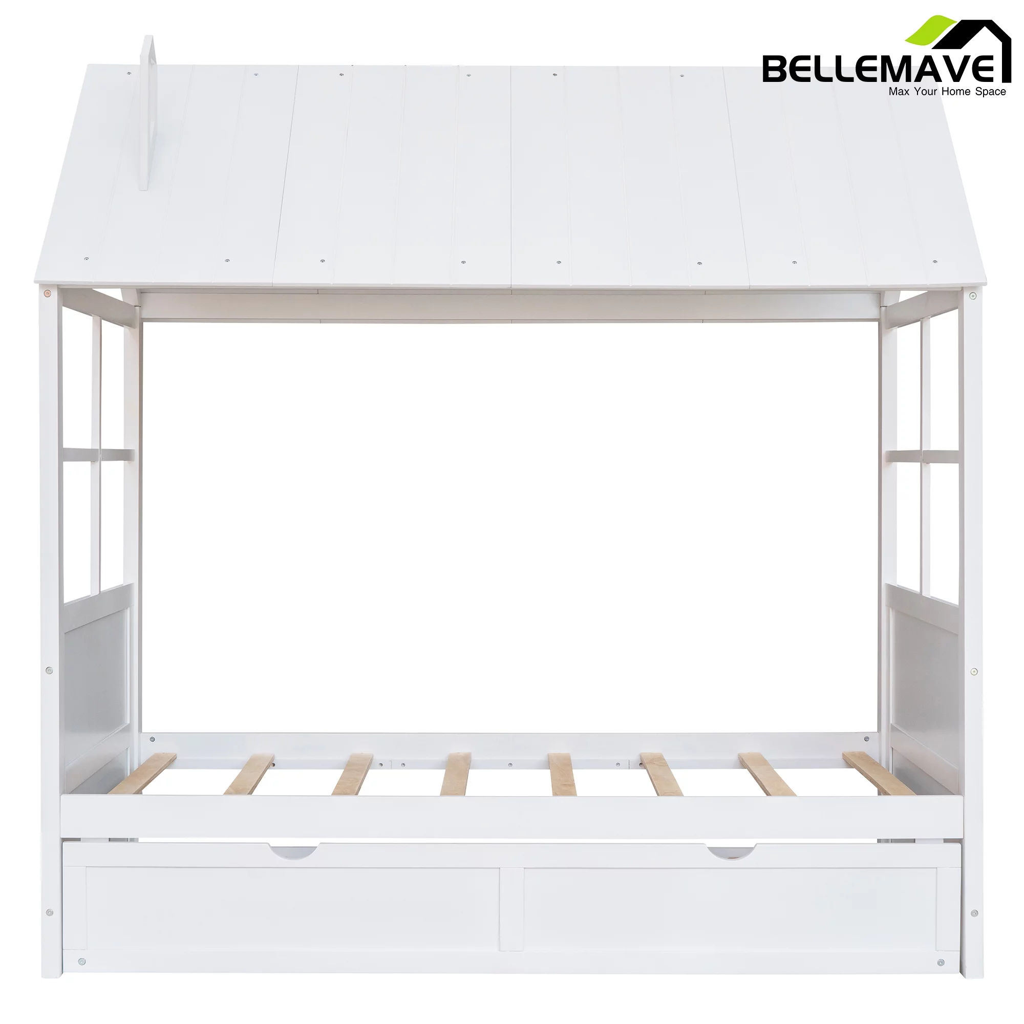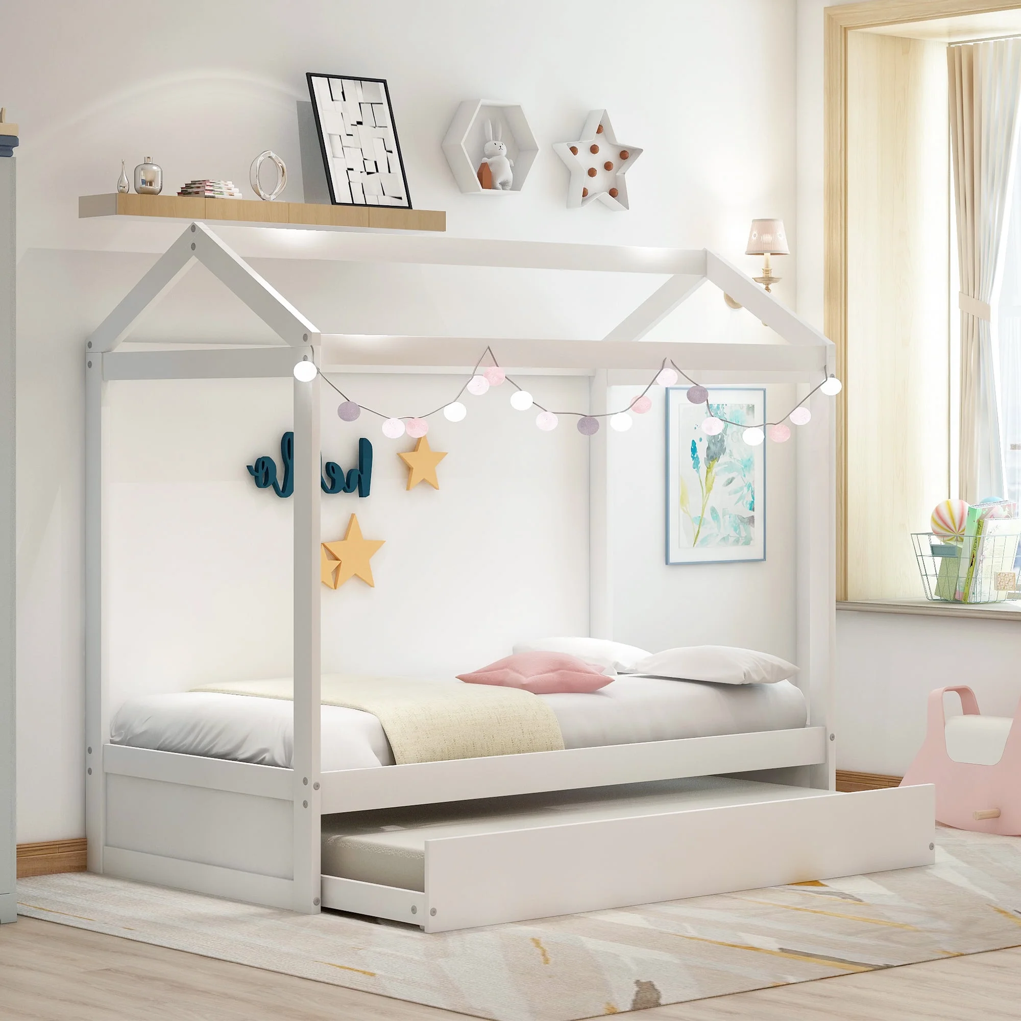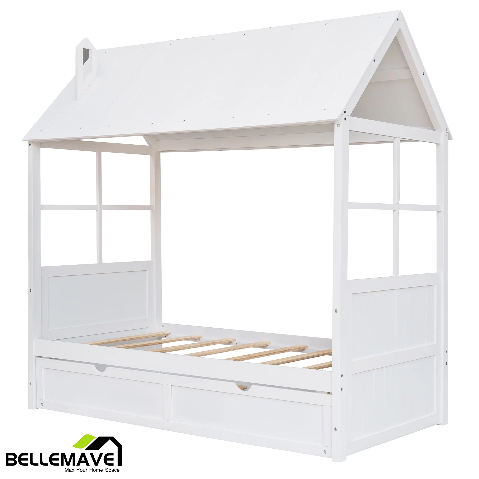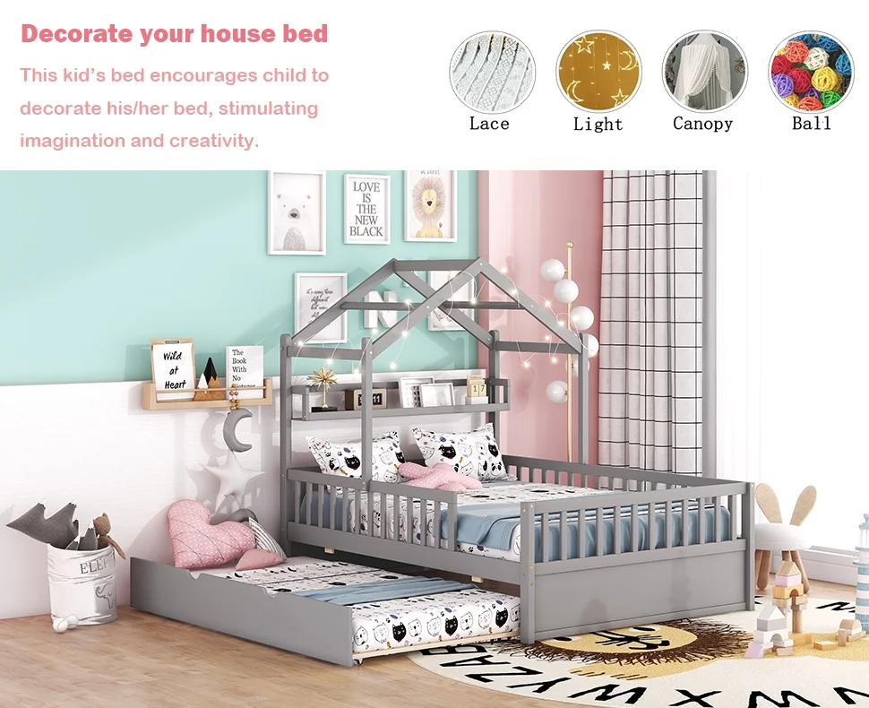 Docooler HOUSE FUUL BED WITH TWIN SIZE TRUNDLE FOR WHITE COLOR( white)