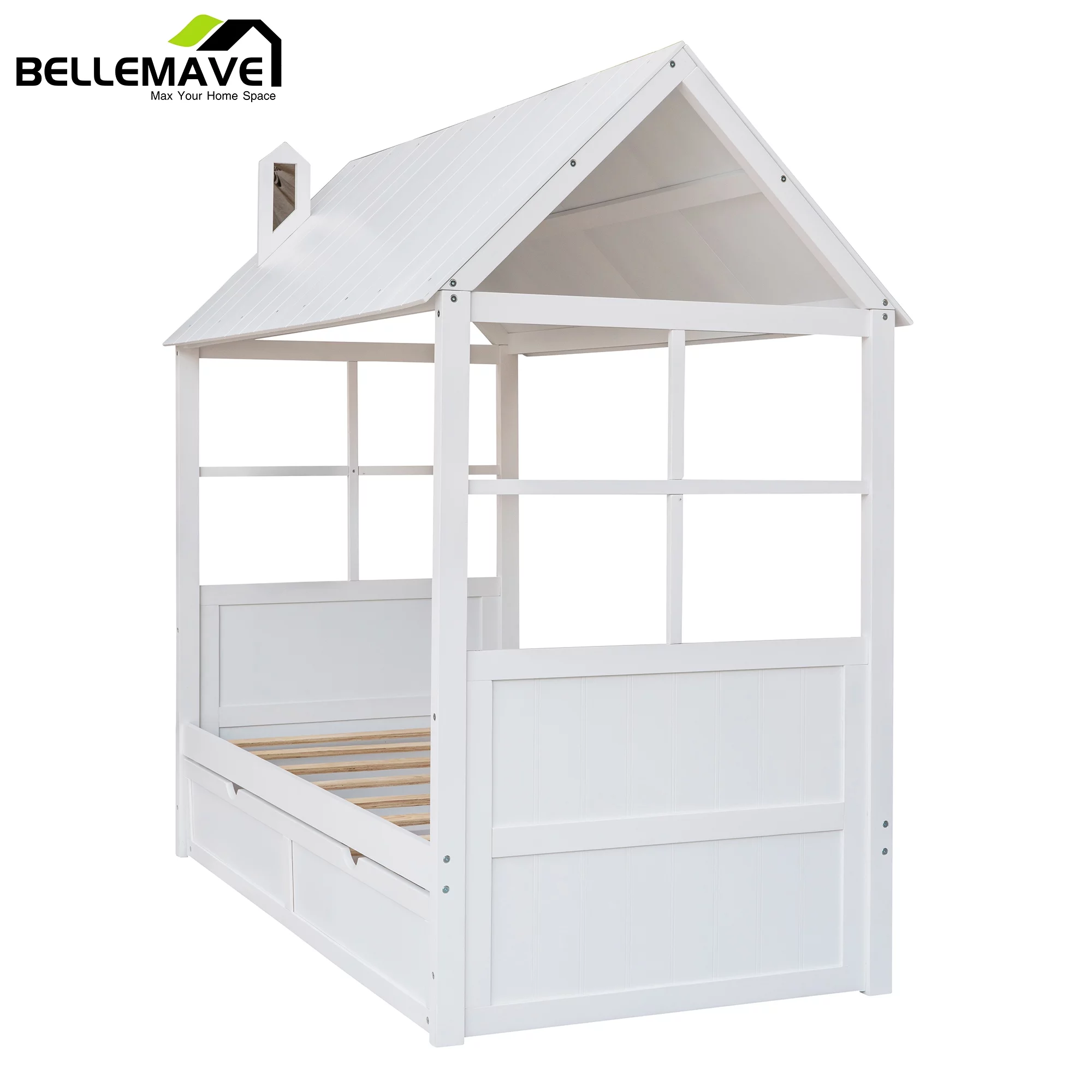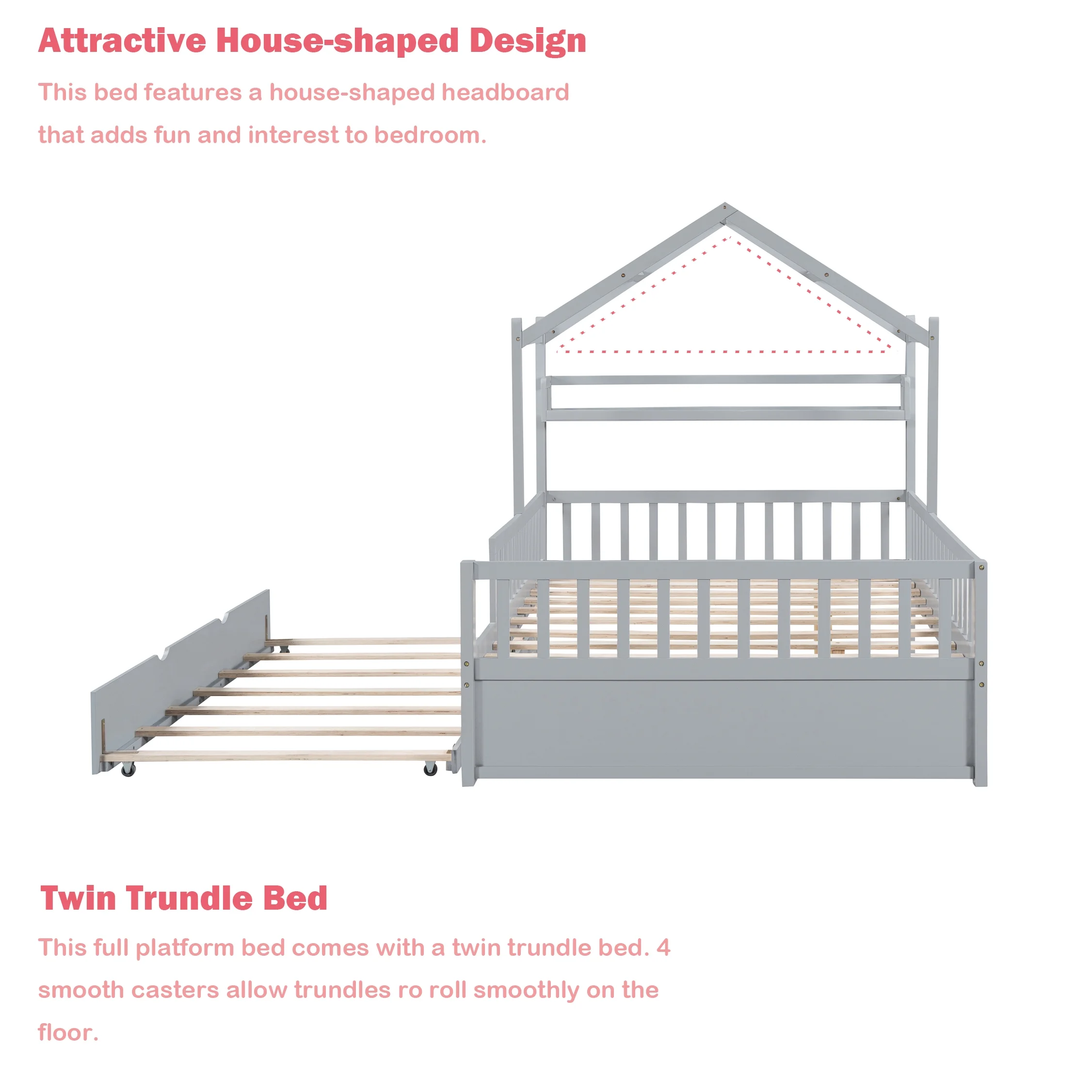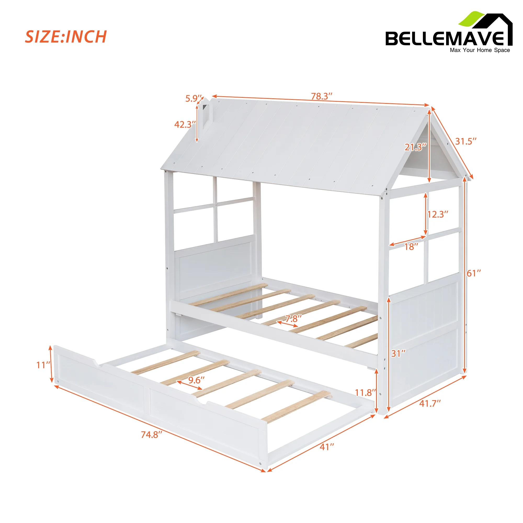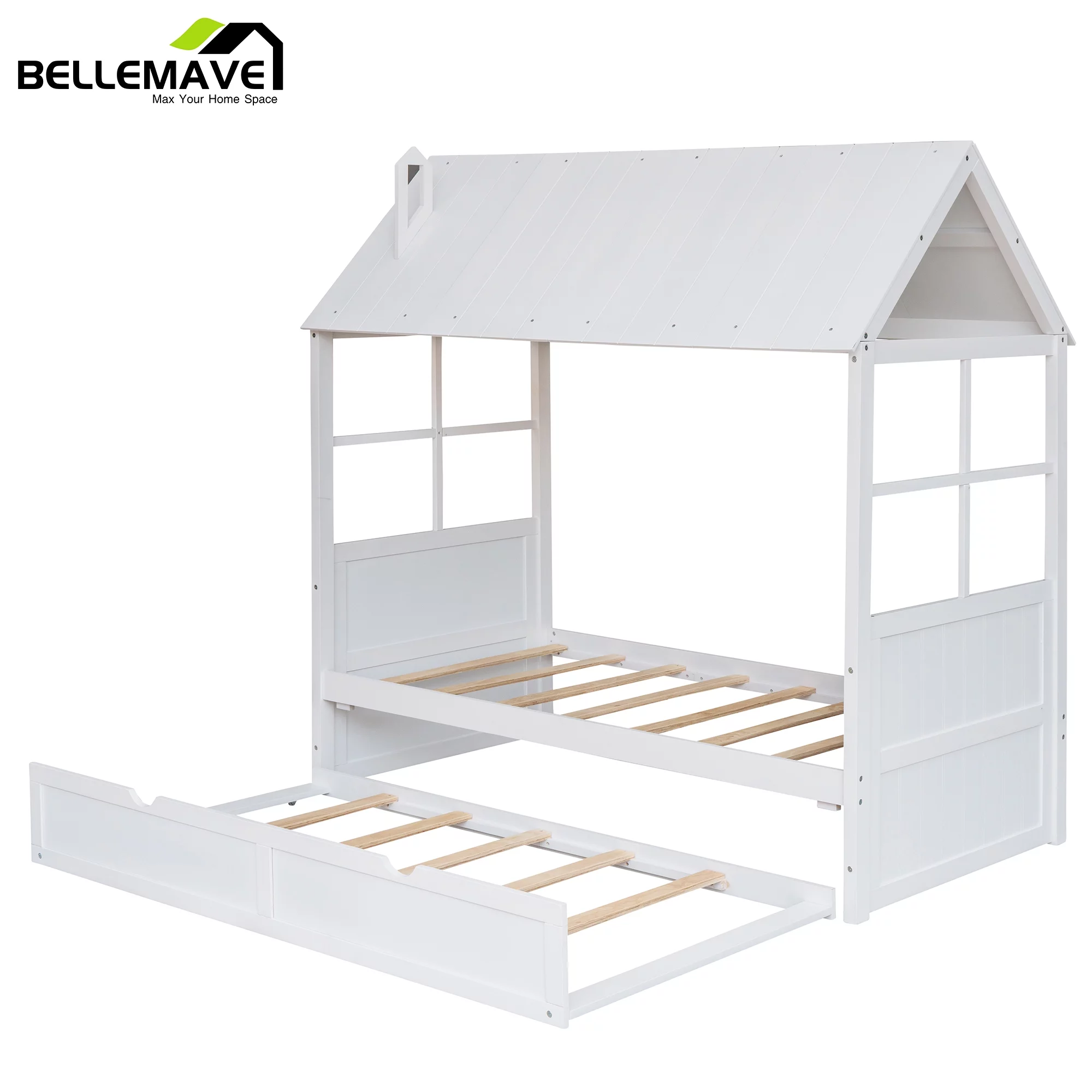 Docooler HOUSE FUUL BED WITH TWIN SIZE TRUNDLE FOR WHITE COLOR( white)