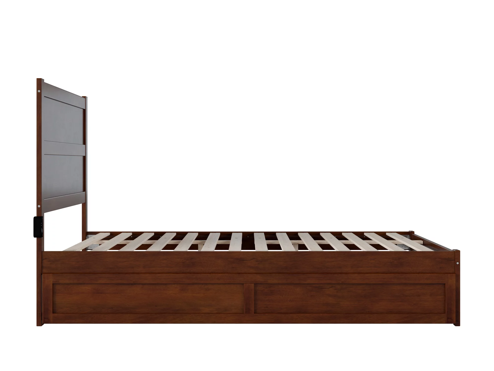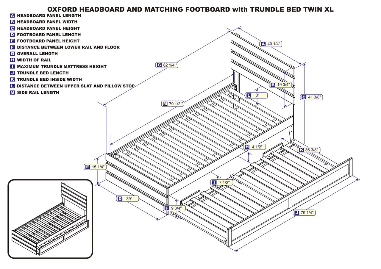 Oxford Twin Extra Long Bed with Footboard and USB Turbo Charger with Twin Extra Long Trundle in Walnut