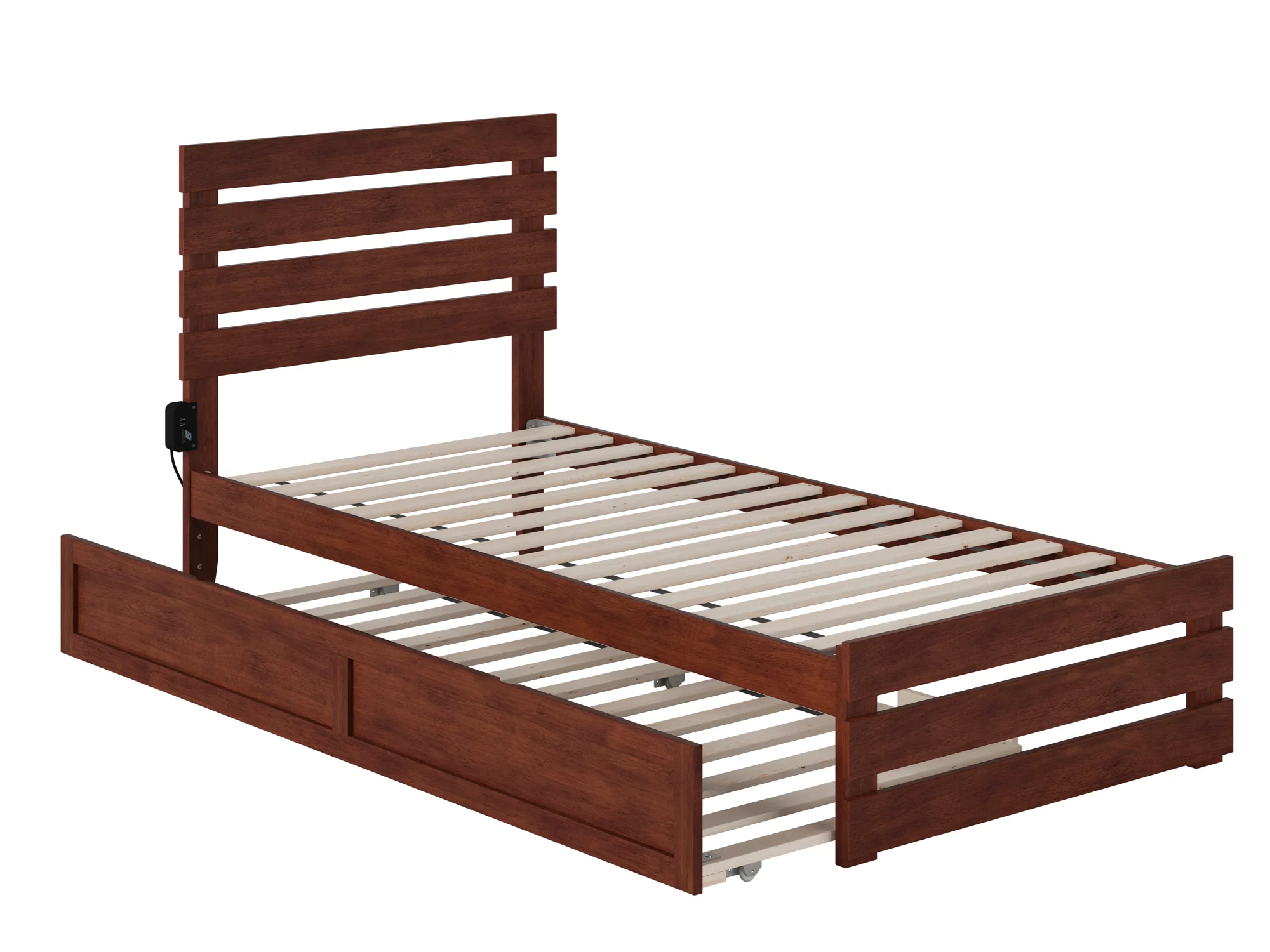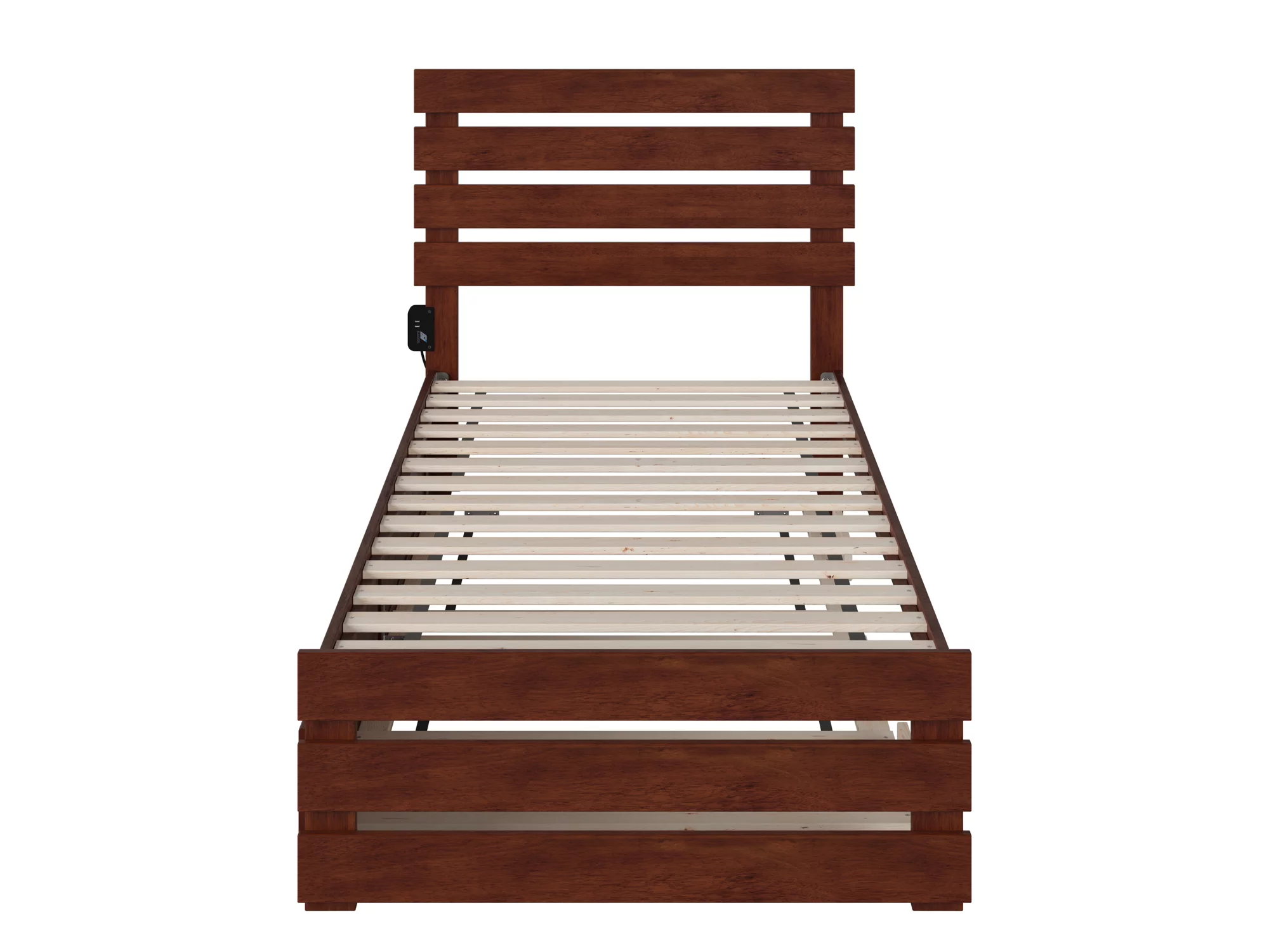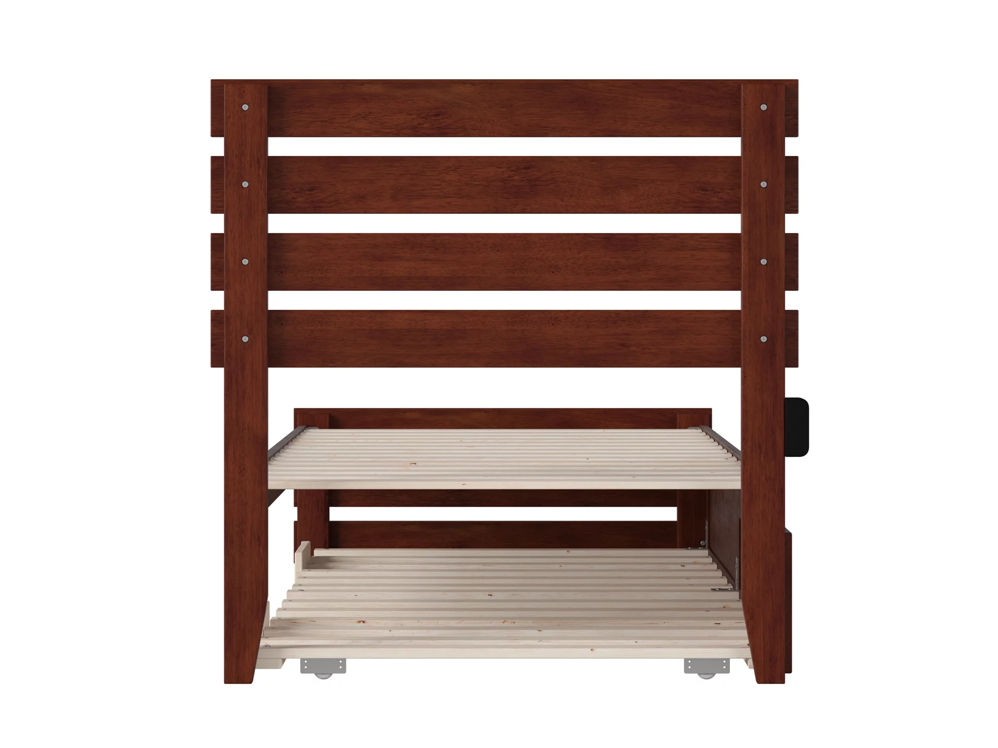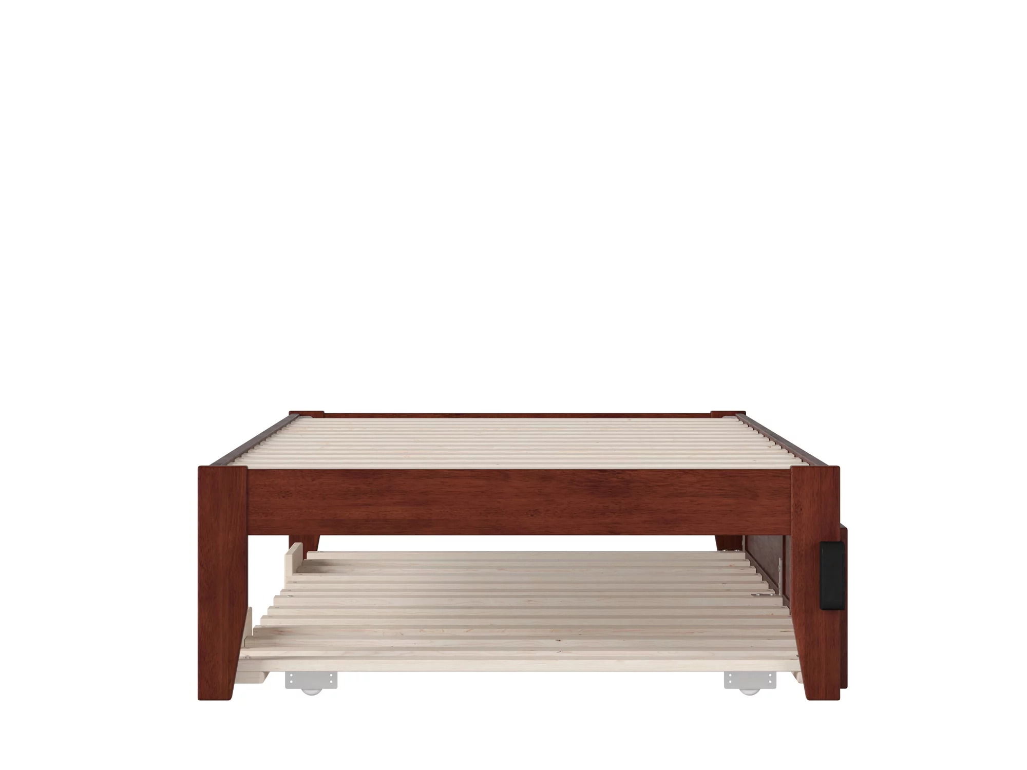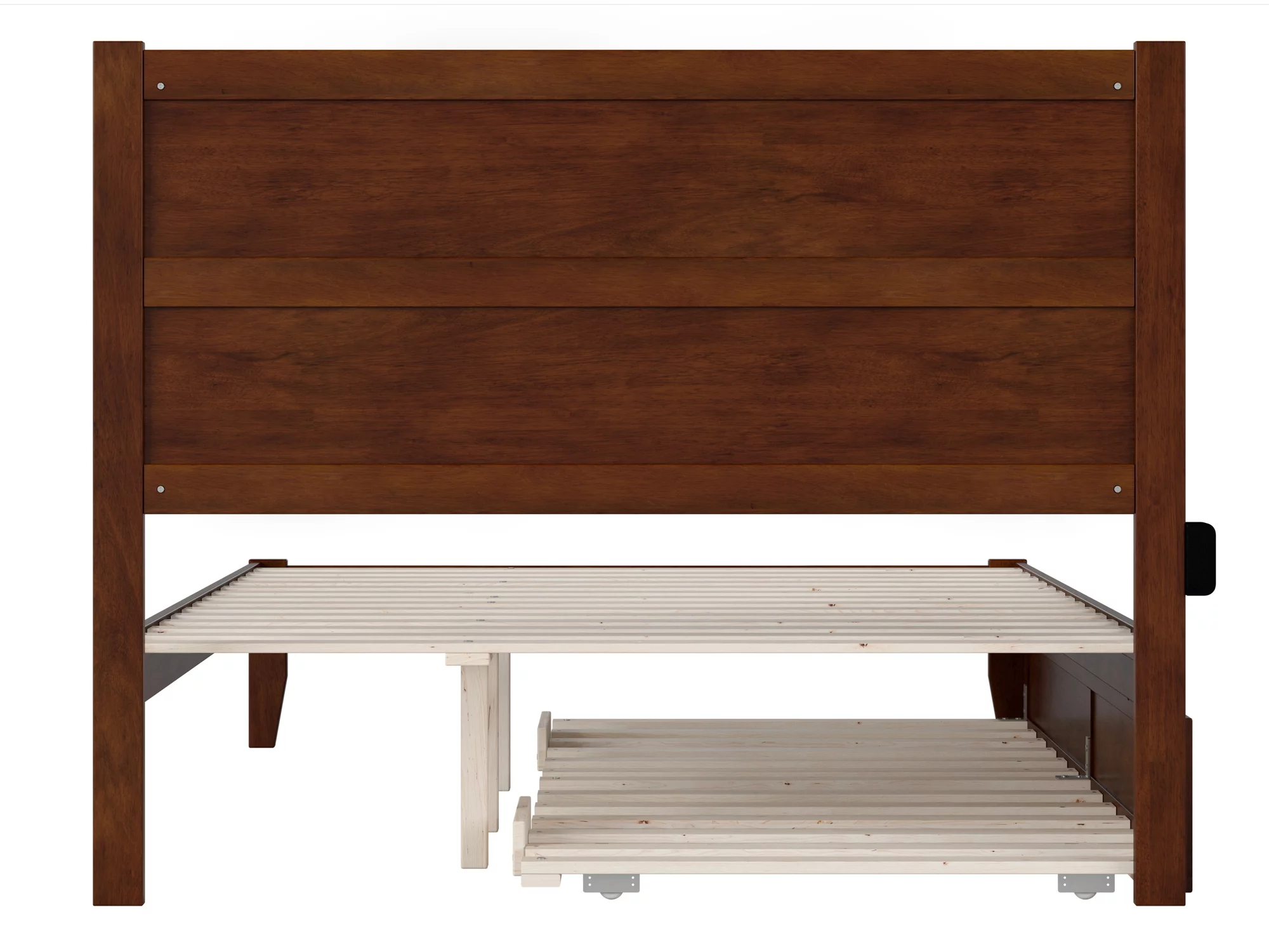 Colorado Twin Extra Long Bed with USB Turbo Charger and Twin Extra Long Trundle in Walnut