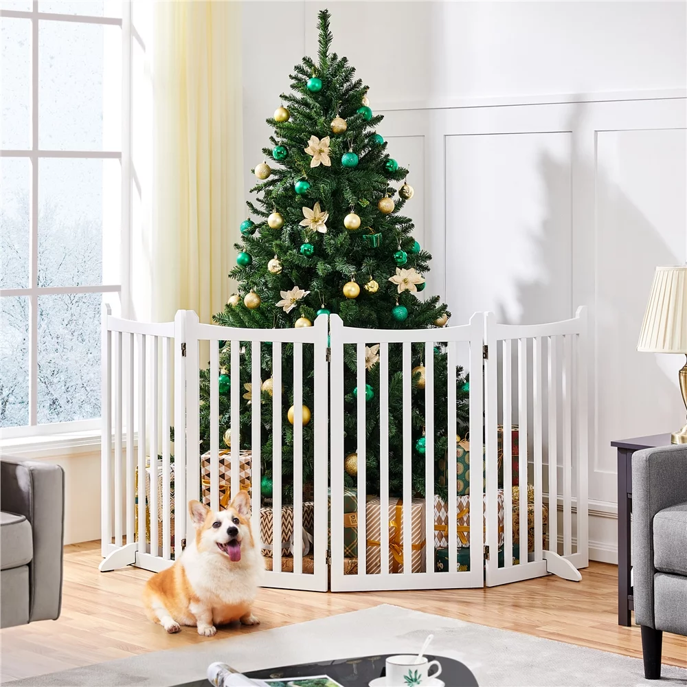 Topeakmart 36"H Foldable Freestanding Wooden Dog Gate Puppy Fence with 2 Support Feet, 4-Panel, White
