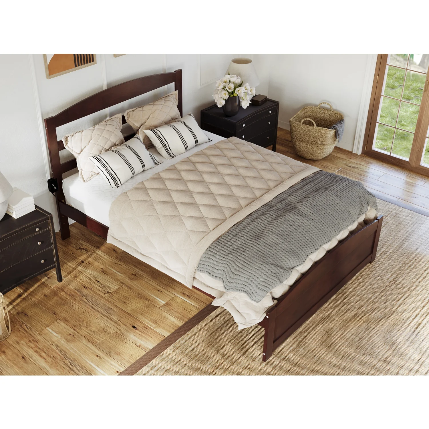 AFI Madison Full Wood Platform Bed with Matching Footboard & Twin Trundle in Espresso