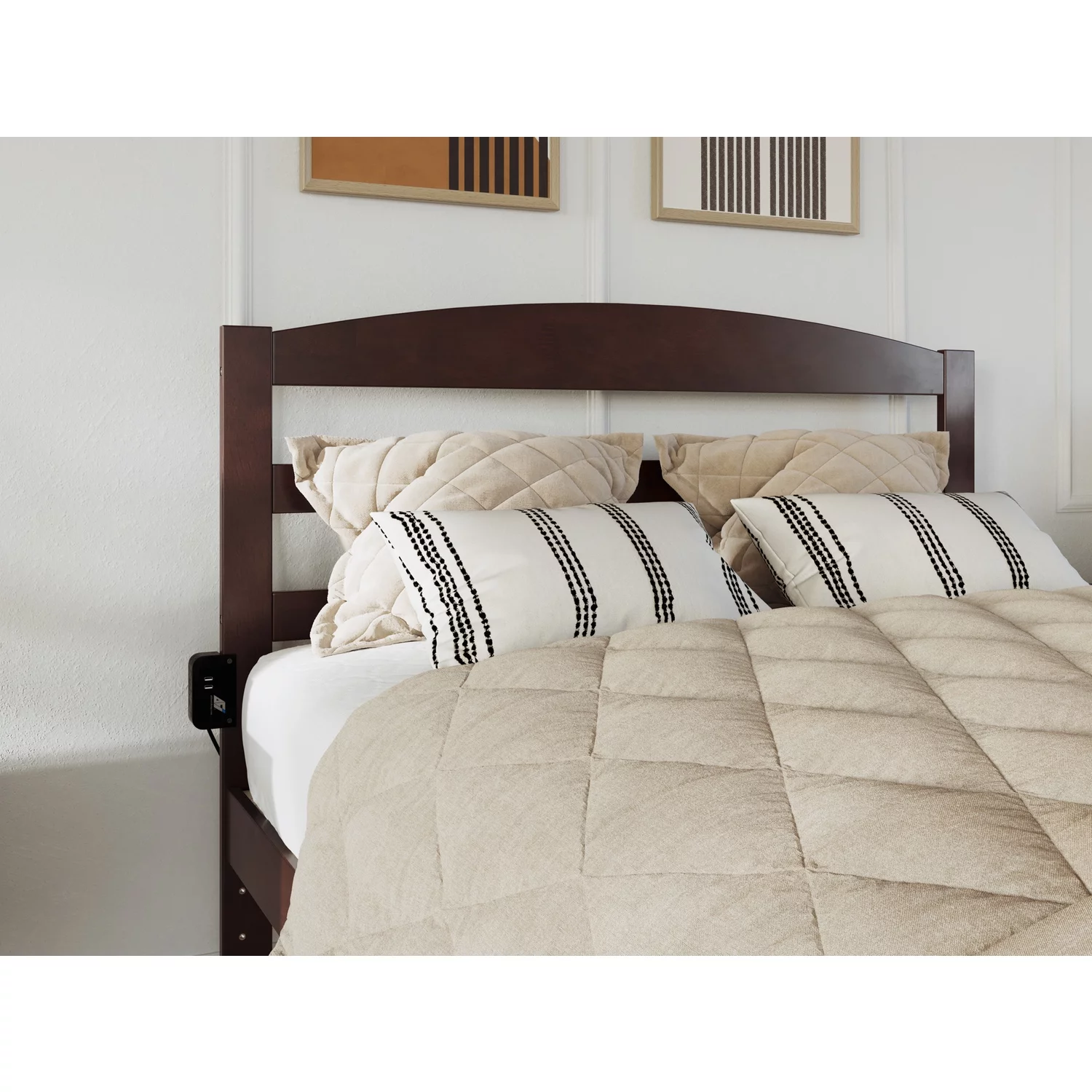 AFI Mission Full Traditional Bed with Matching Footboard and Turbo Charger in Walnut