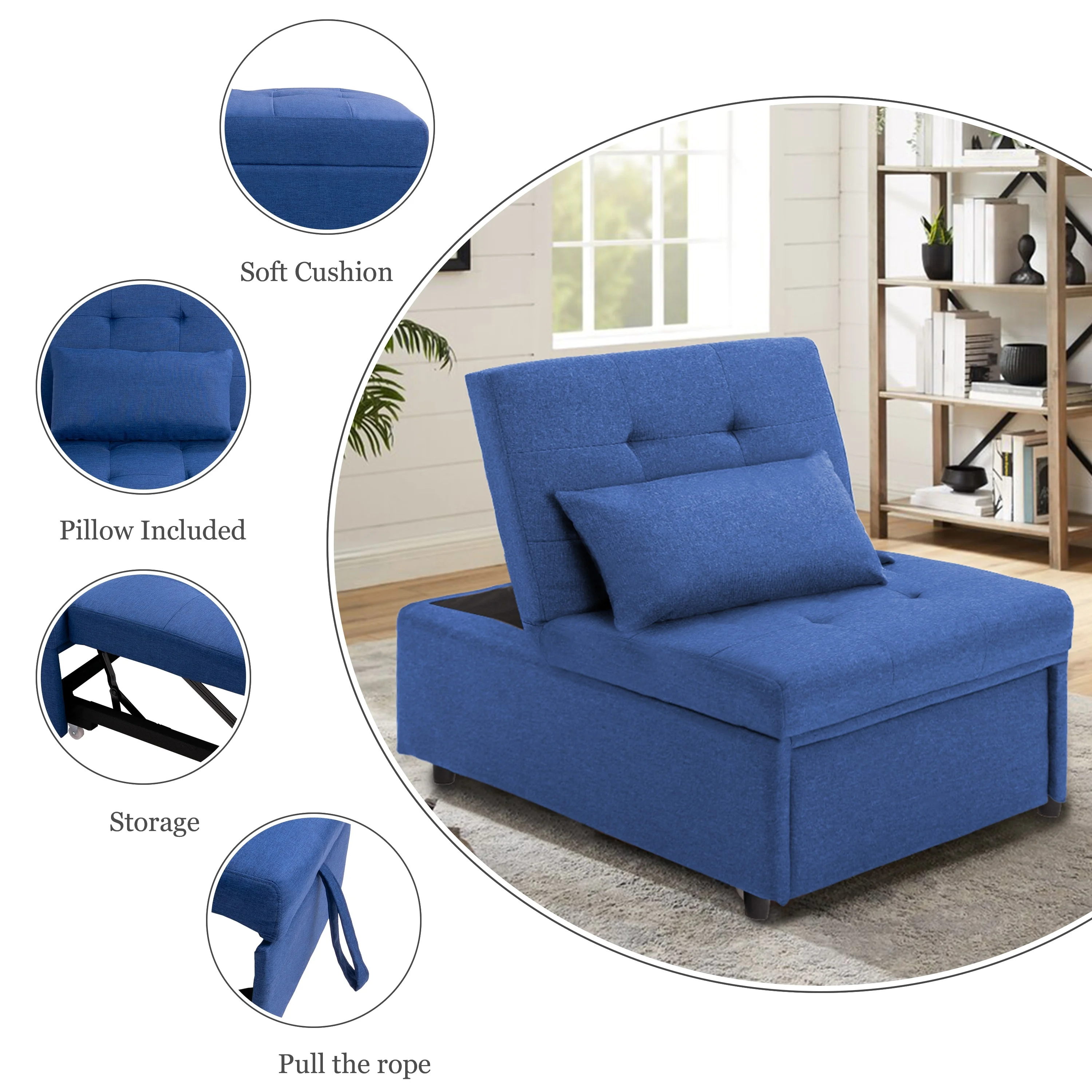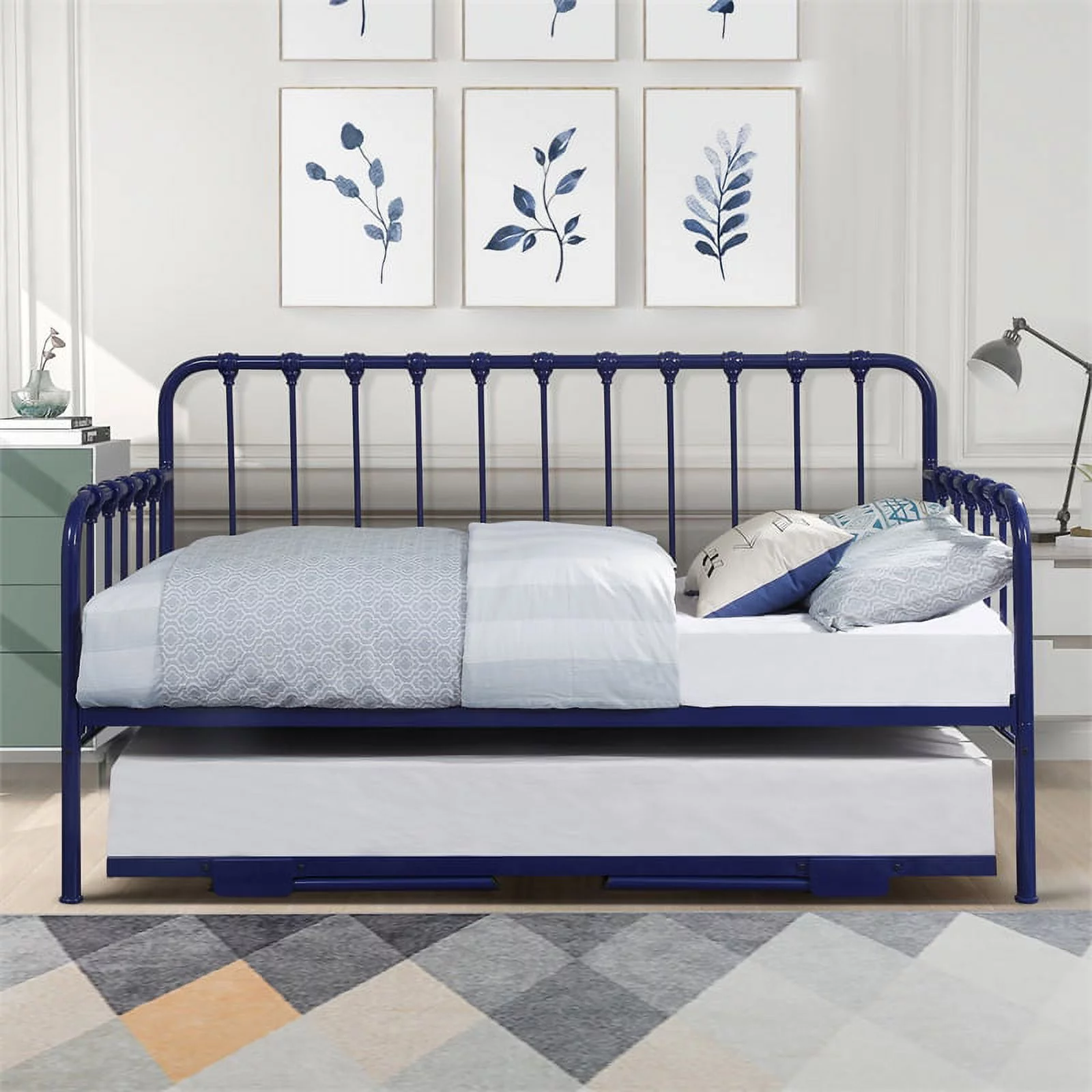 Home Square 2-Piece Set with Daybed with Trundle in Navy & Coffee Table