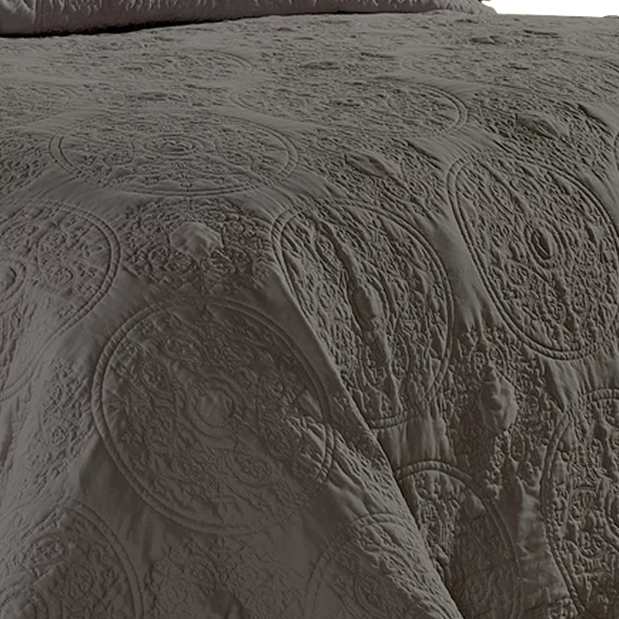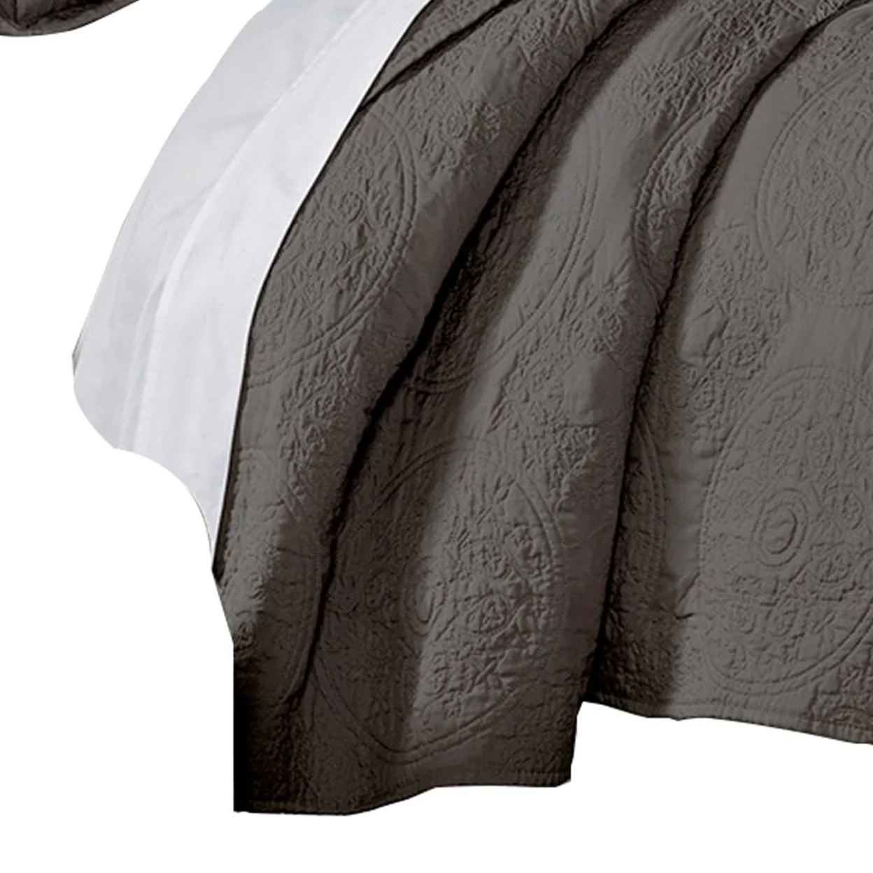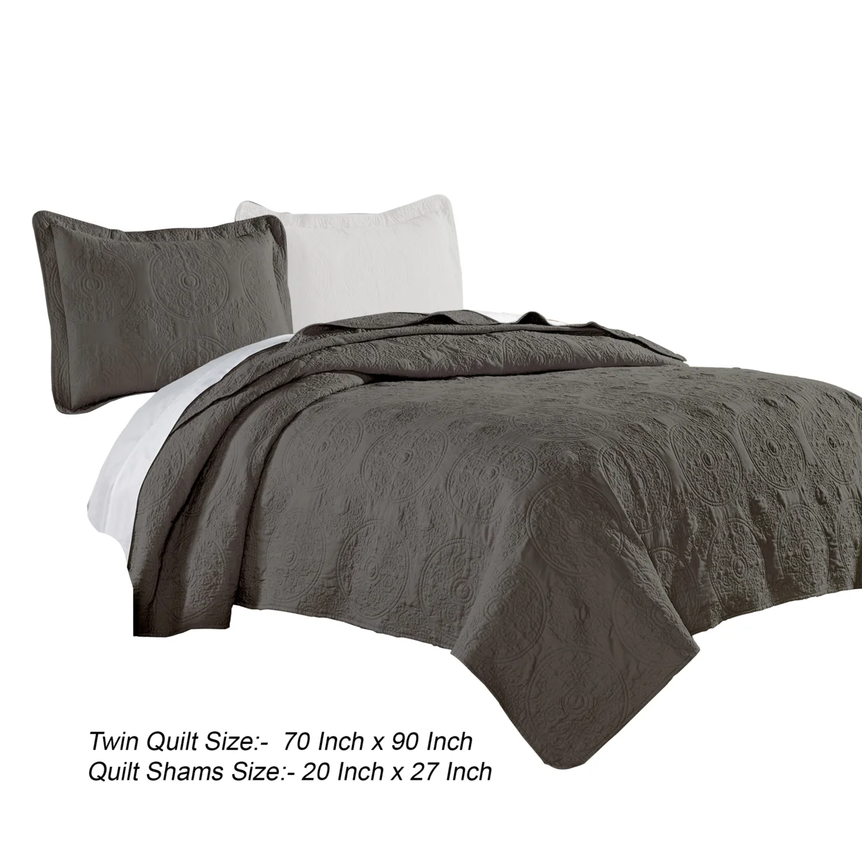 Ada 2 Piece Microfiber Twin Size Quilt Set, Mandala Embroidery, Dark Gray- Saltoro Sherpi