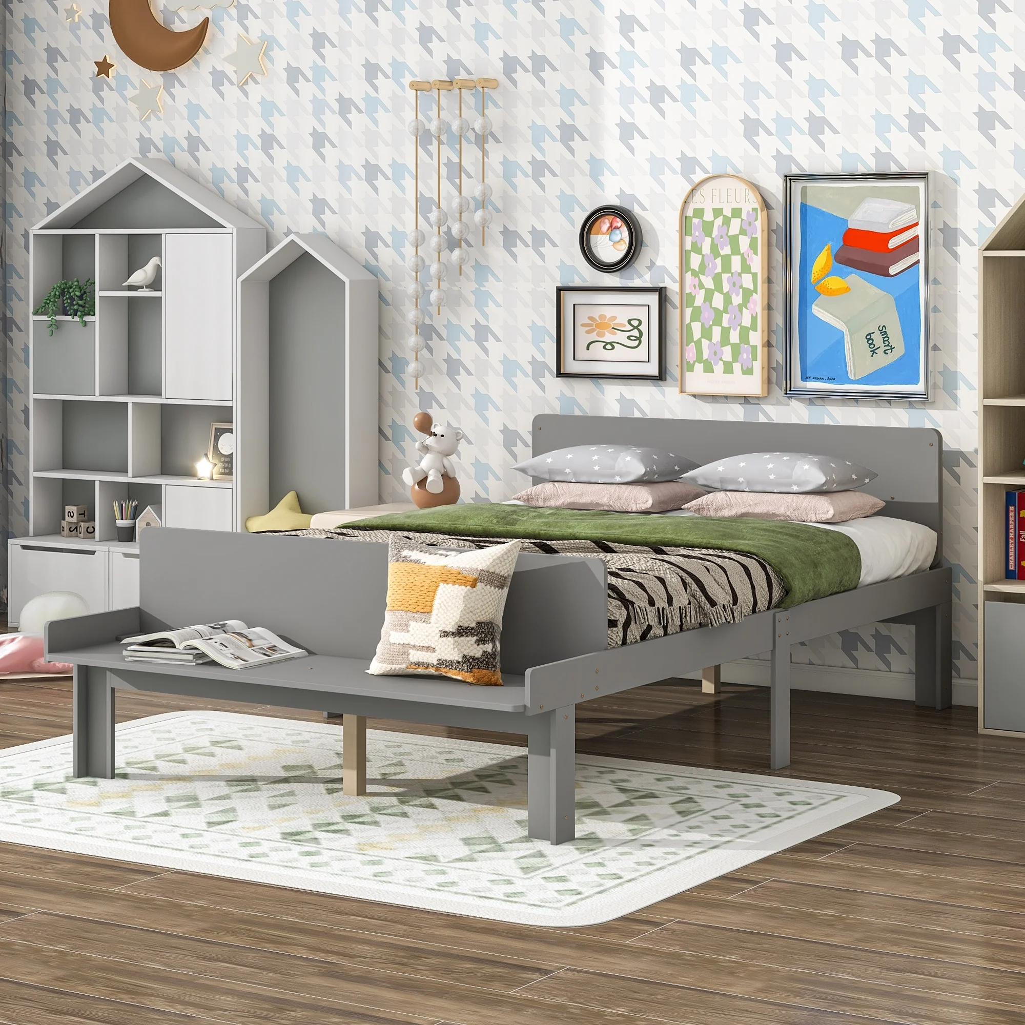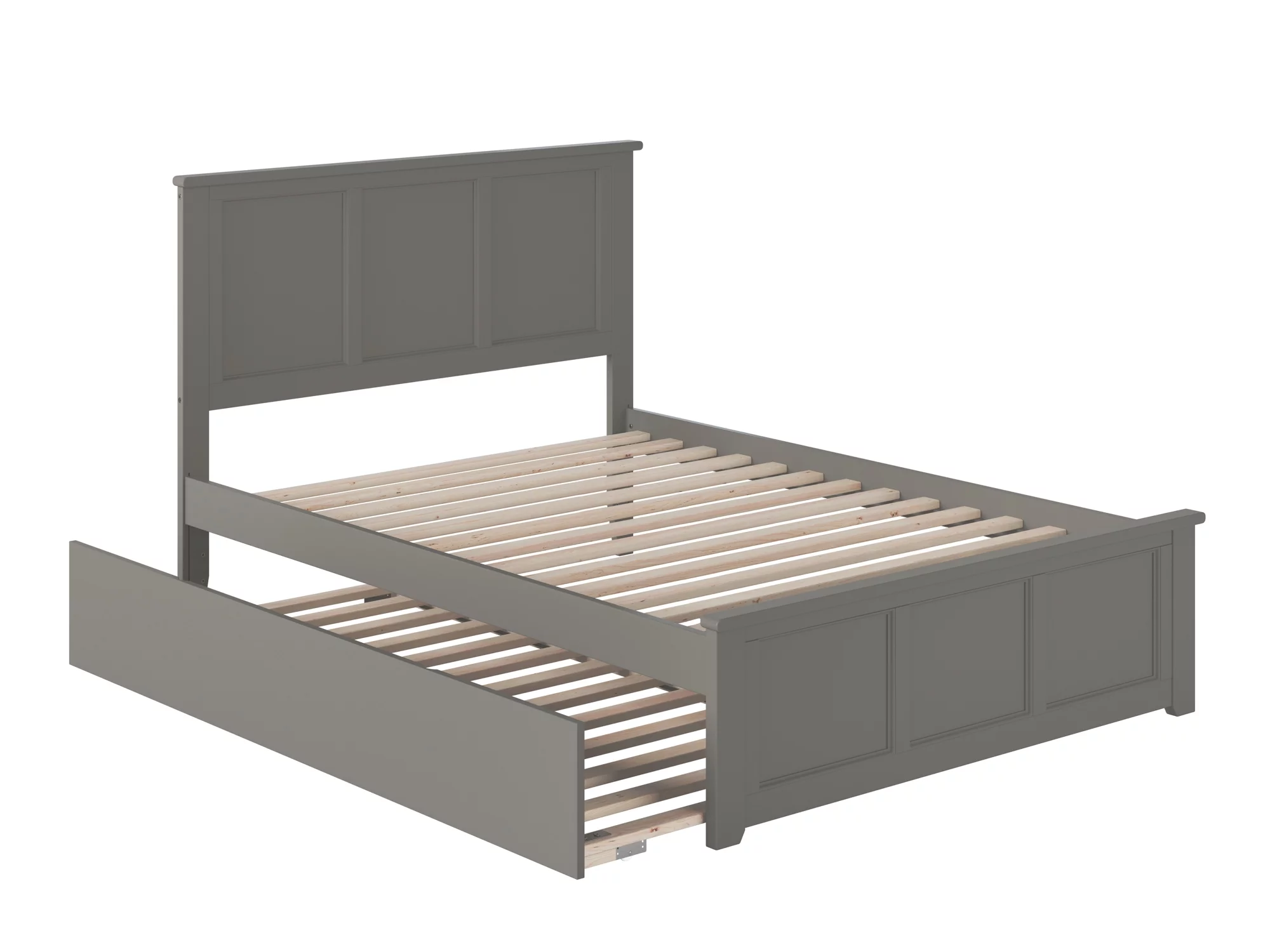 AFI Madison Full Wood Platform Bed with Matching Footboard & Twin Trundle in Grey
