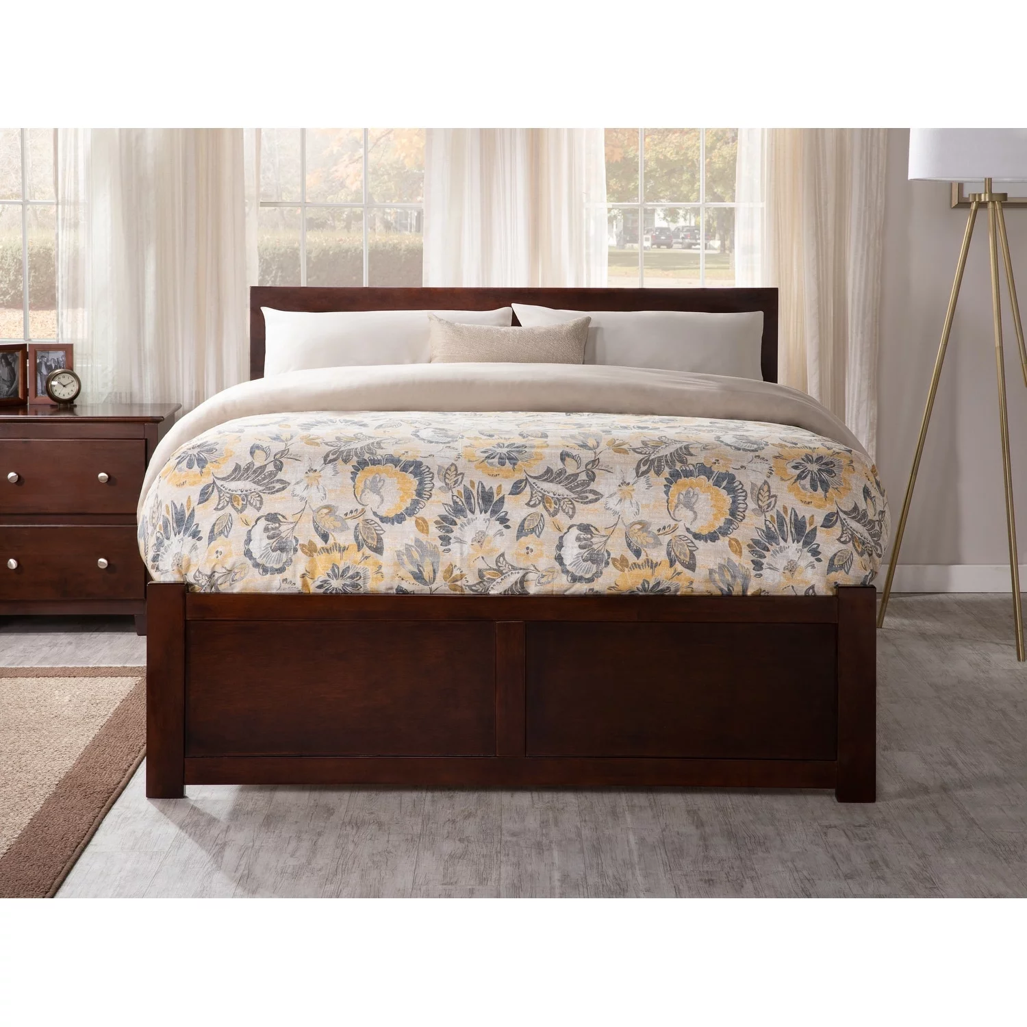 AFI Madison Full Wood Platform Bed with Matching Footboard & Twin Trundle in Walnut