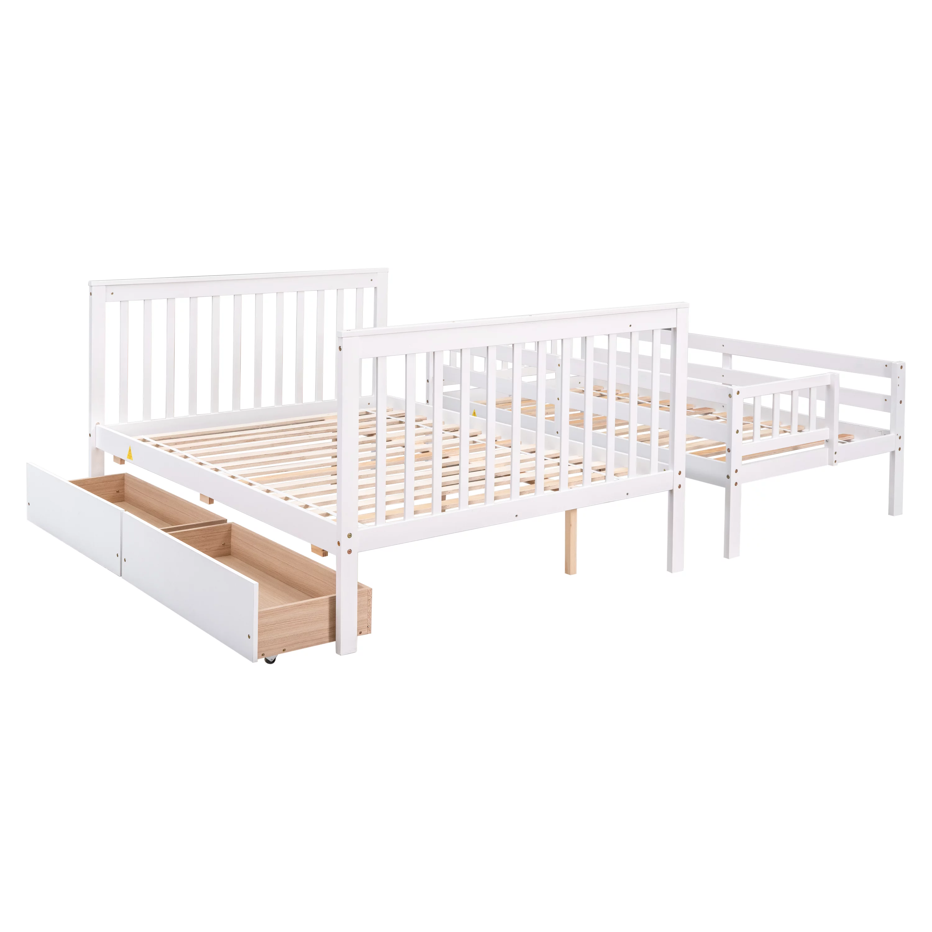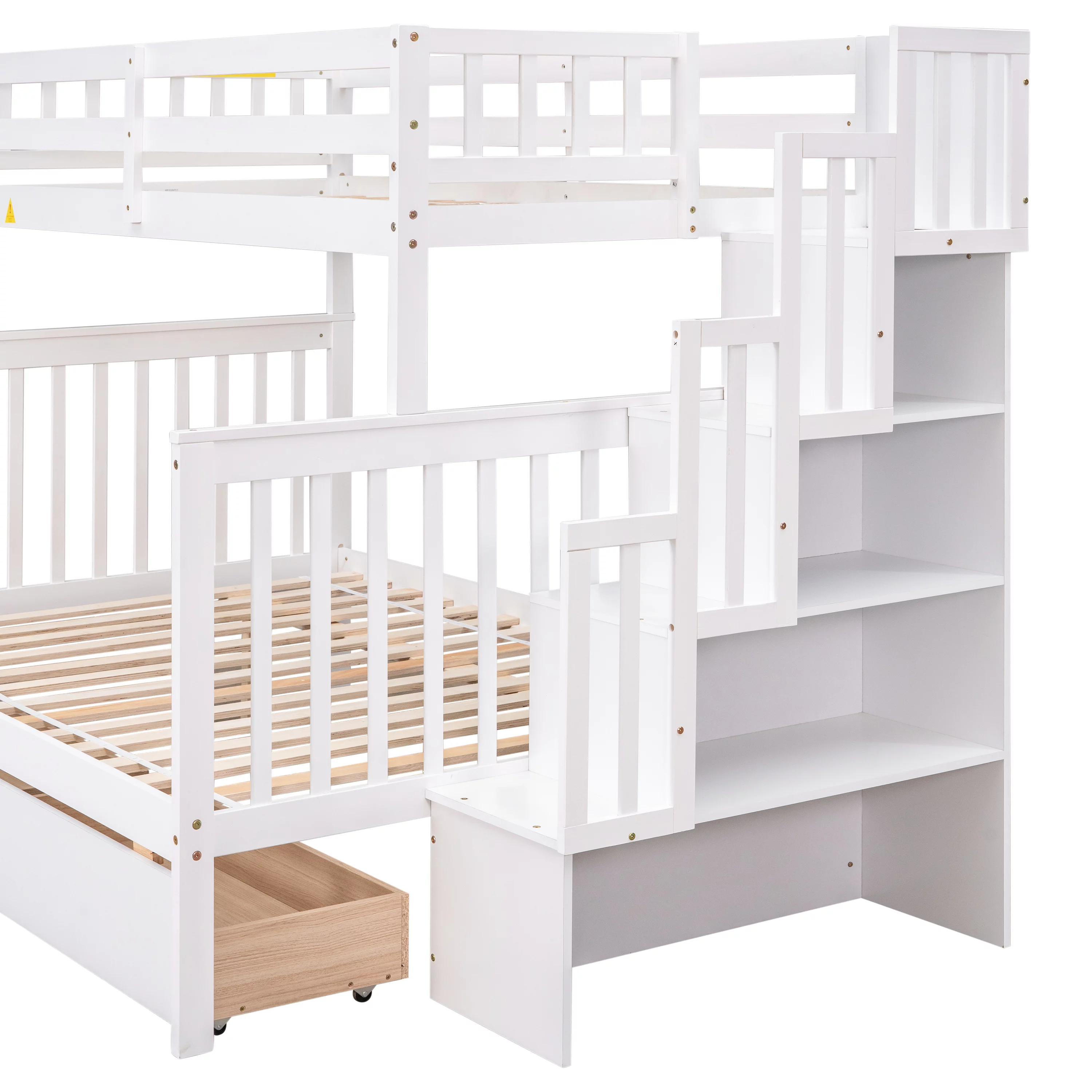Euroco Solid Wood Twin over Full Bunk Bed with Storage Drawers & Stairway for Kids Room, White