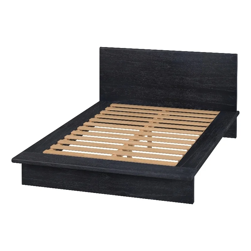 Homestead Platform Bed with Storage & Laser Engraved Bear Design, Stain & Clear Lacquer - Queen Size