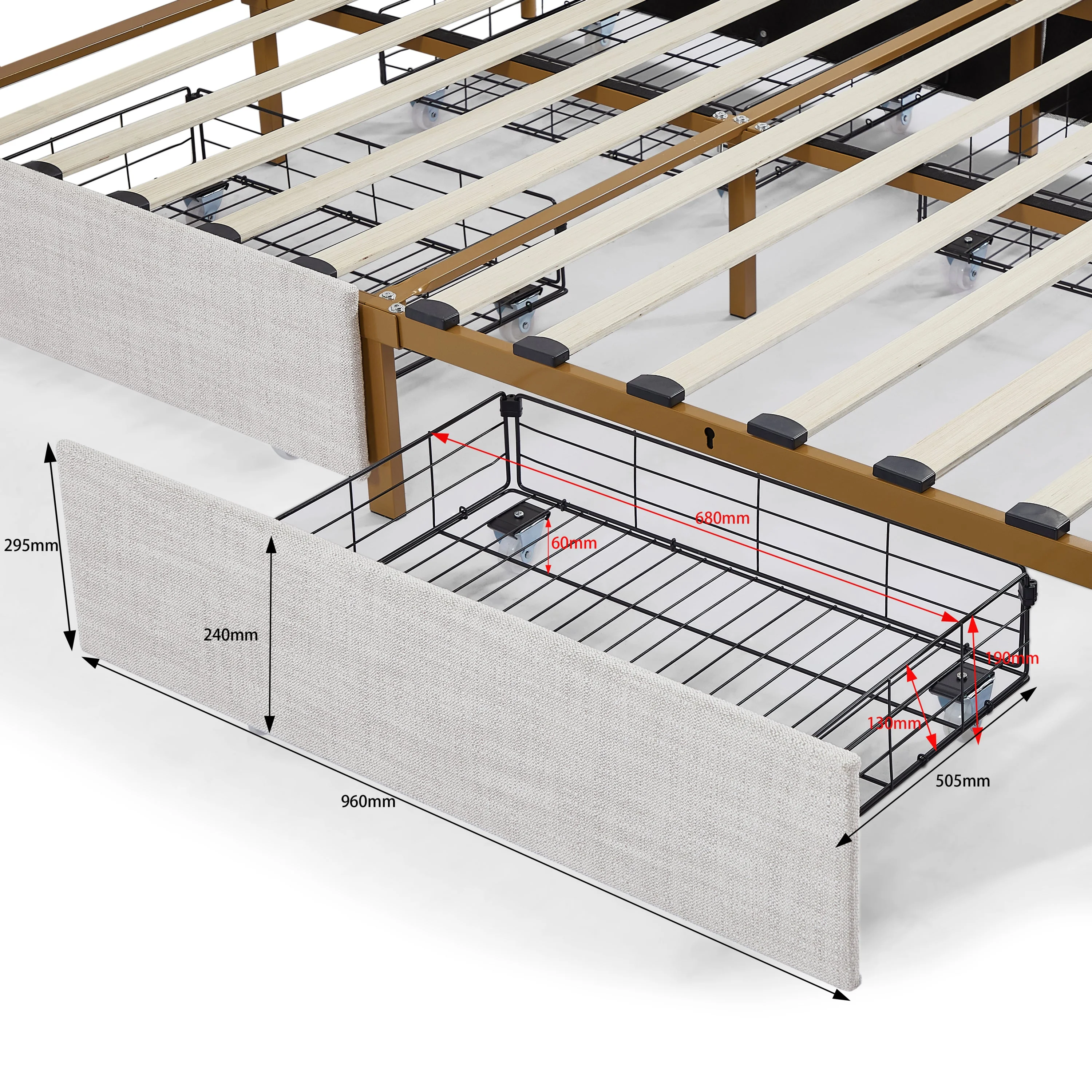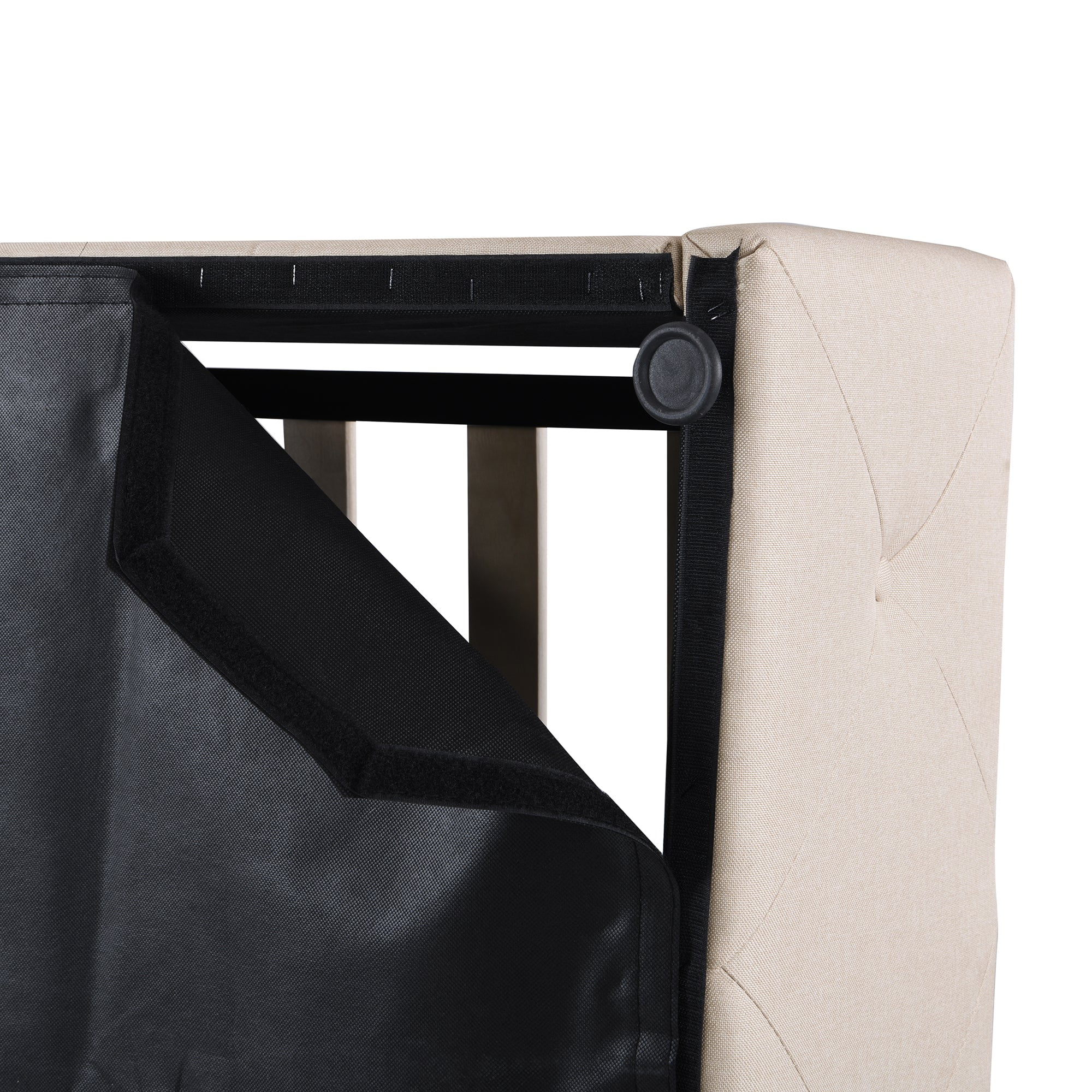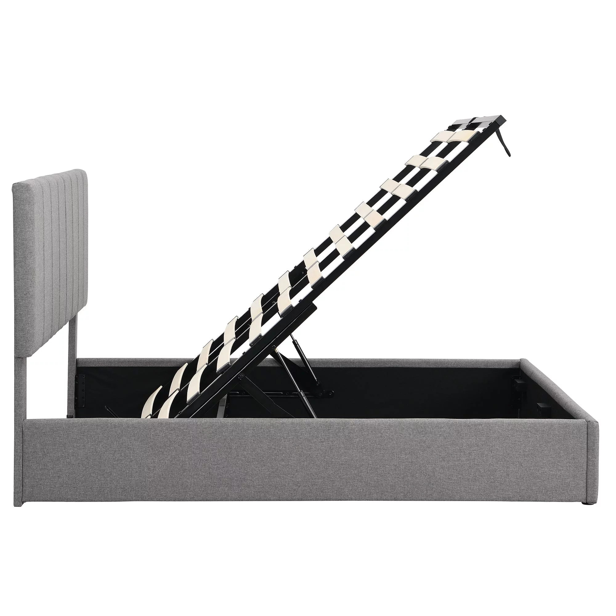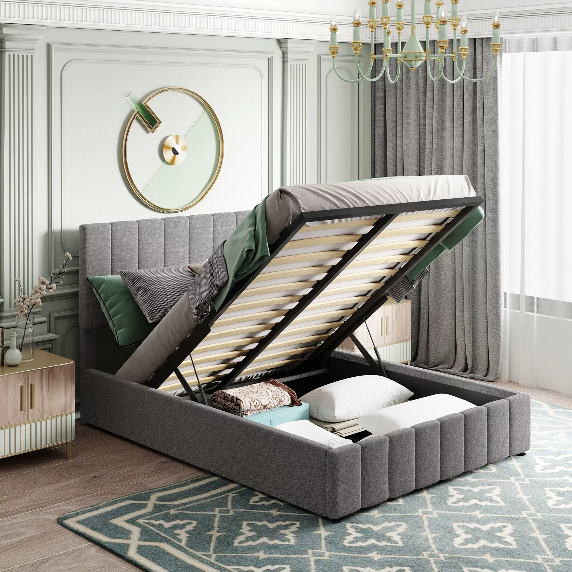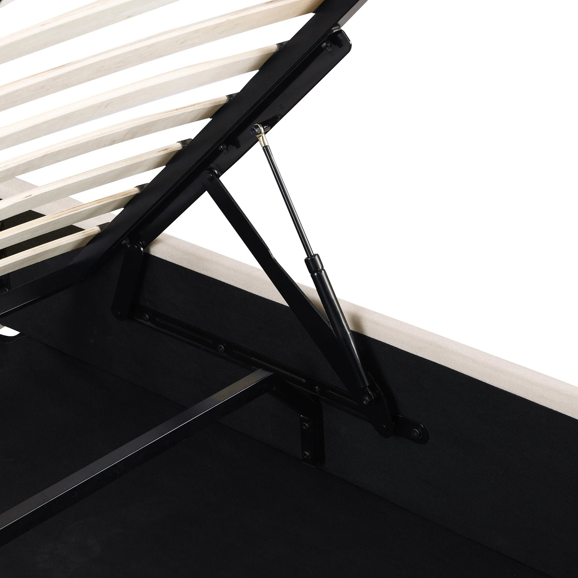 Regal Restful Retreat - Beige Upholstered Platform Bed with Hydraulic Storage