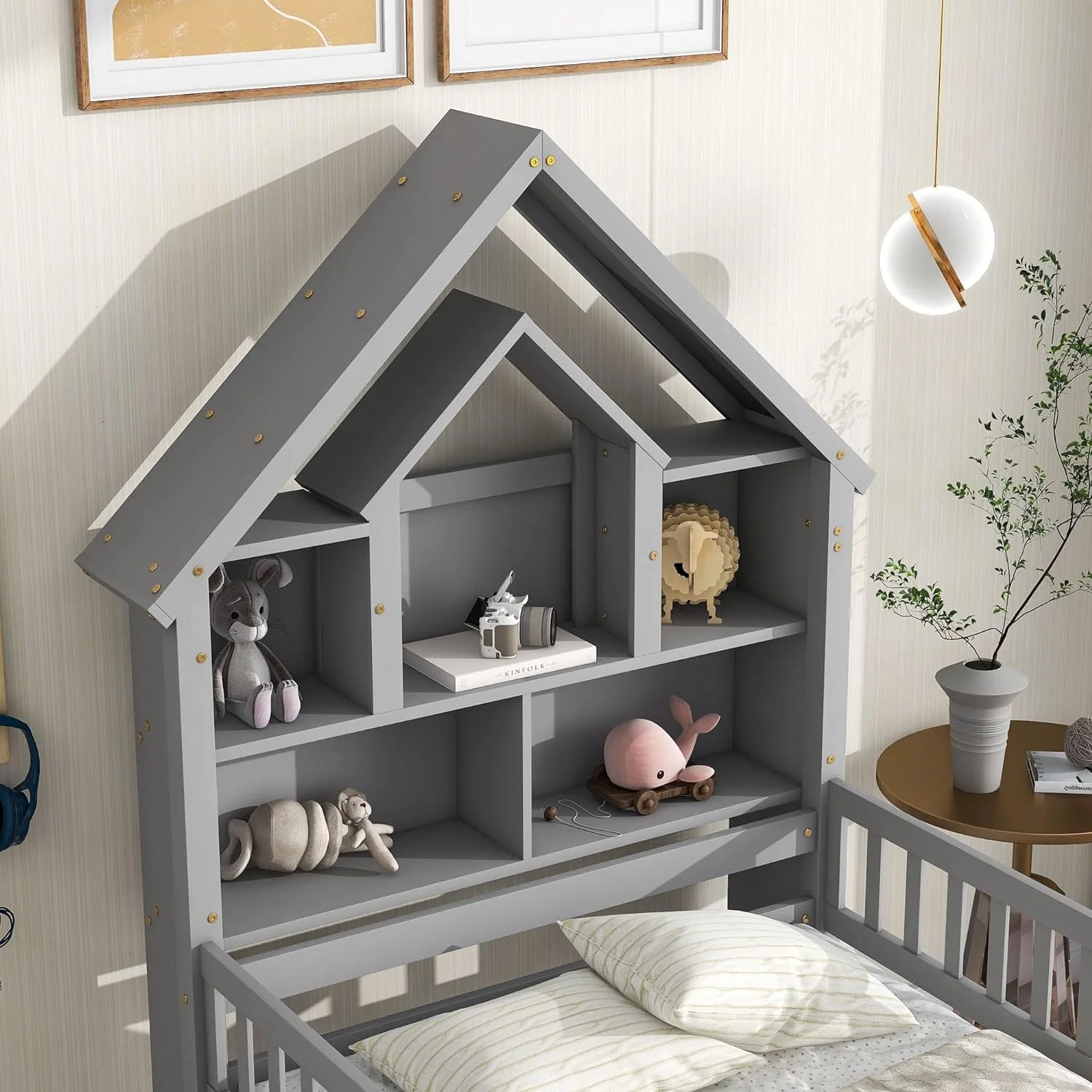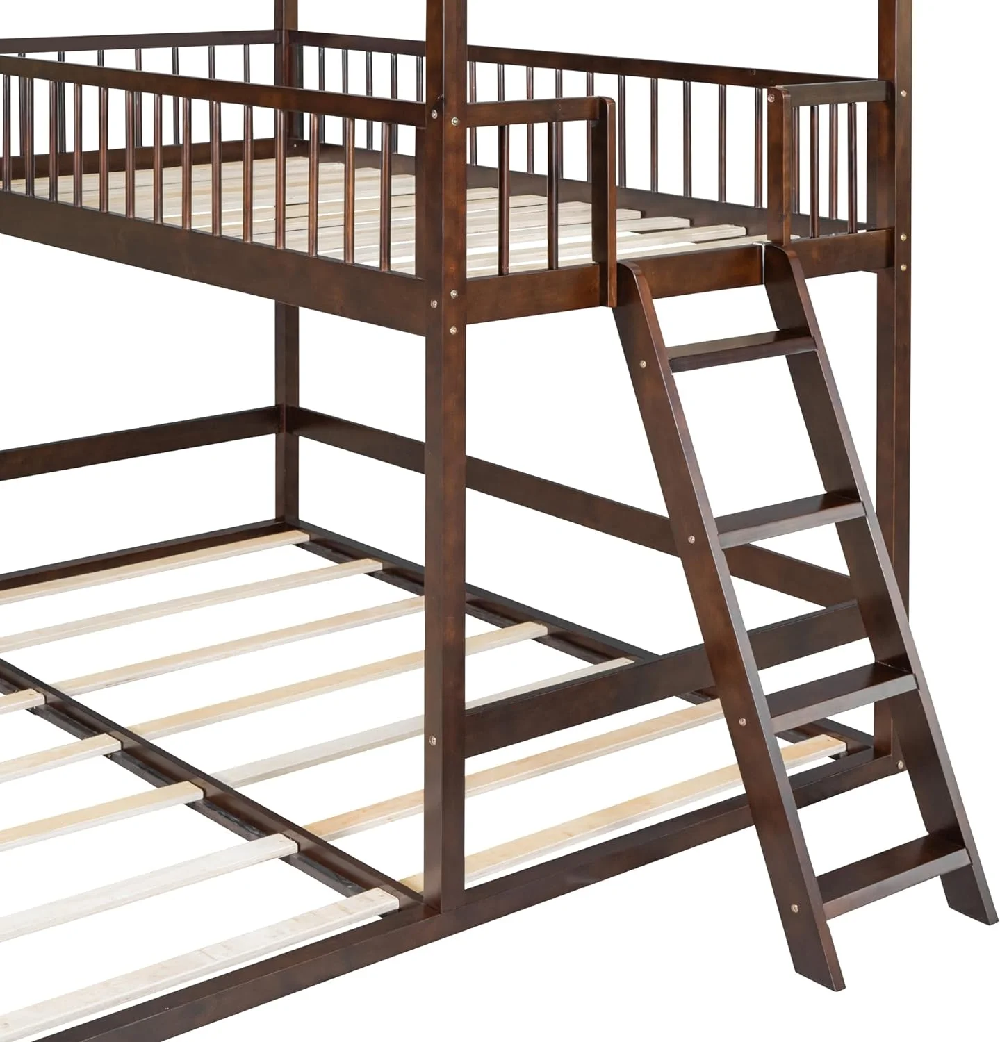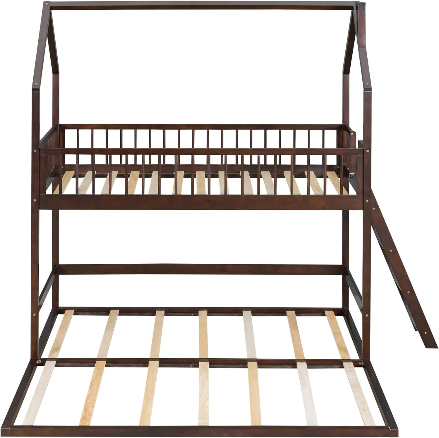 Twin Over Twin House Bunk Bed with Extending Trundle and Ladder, Wooden Bunk Bed Frame for Kids Teens Girls Boys