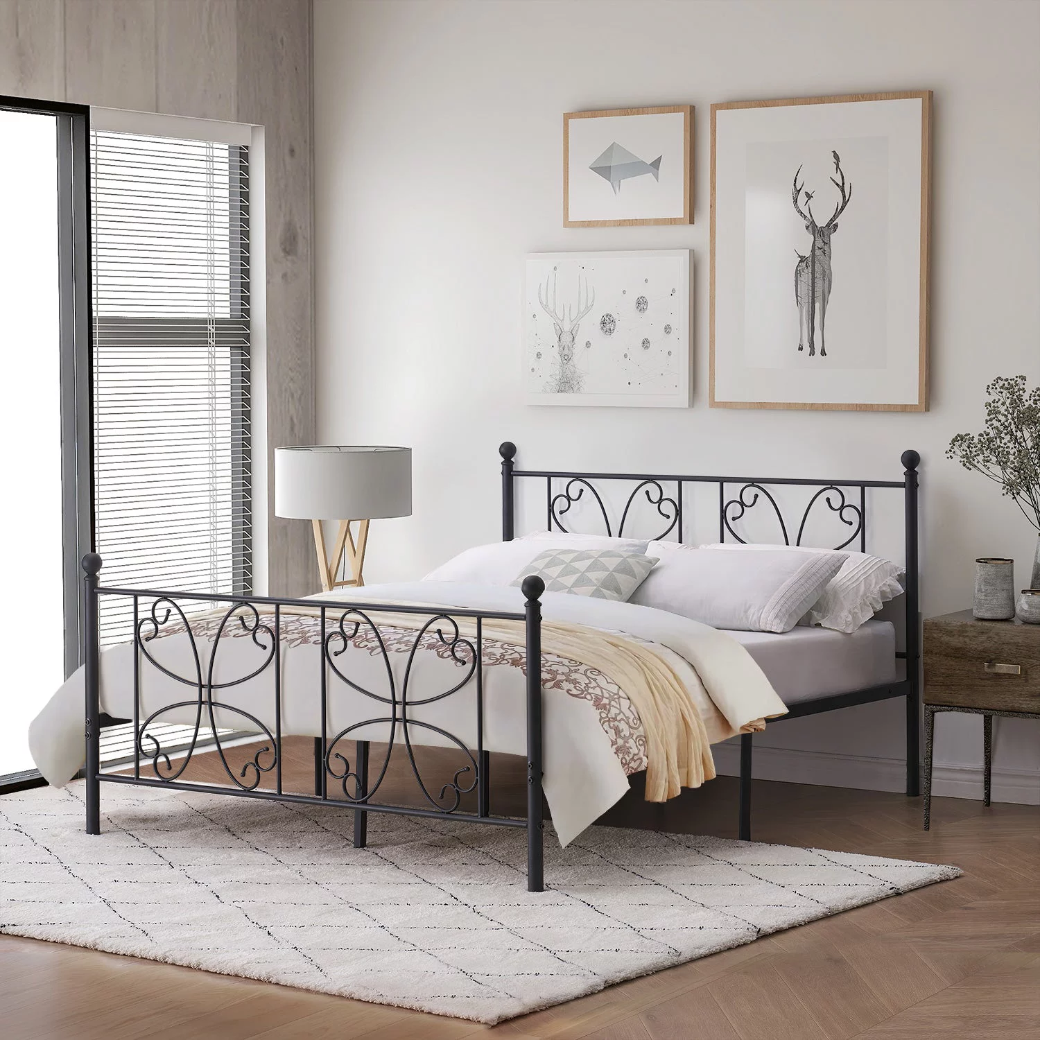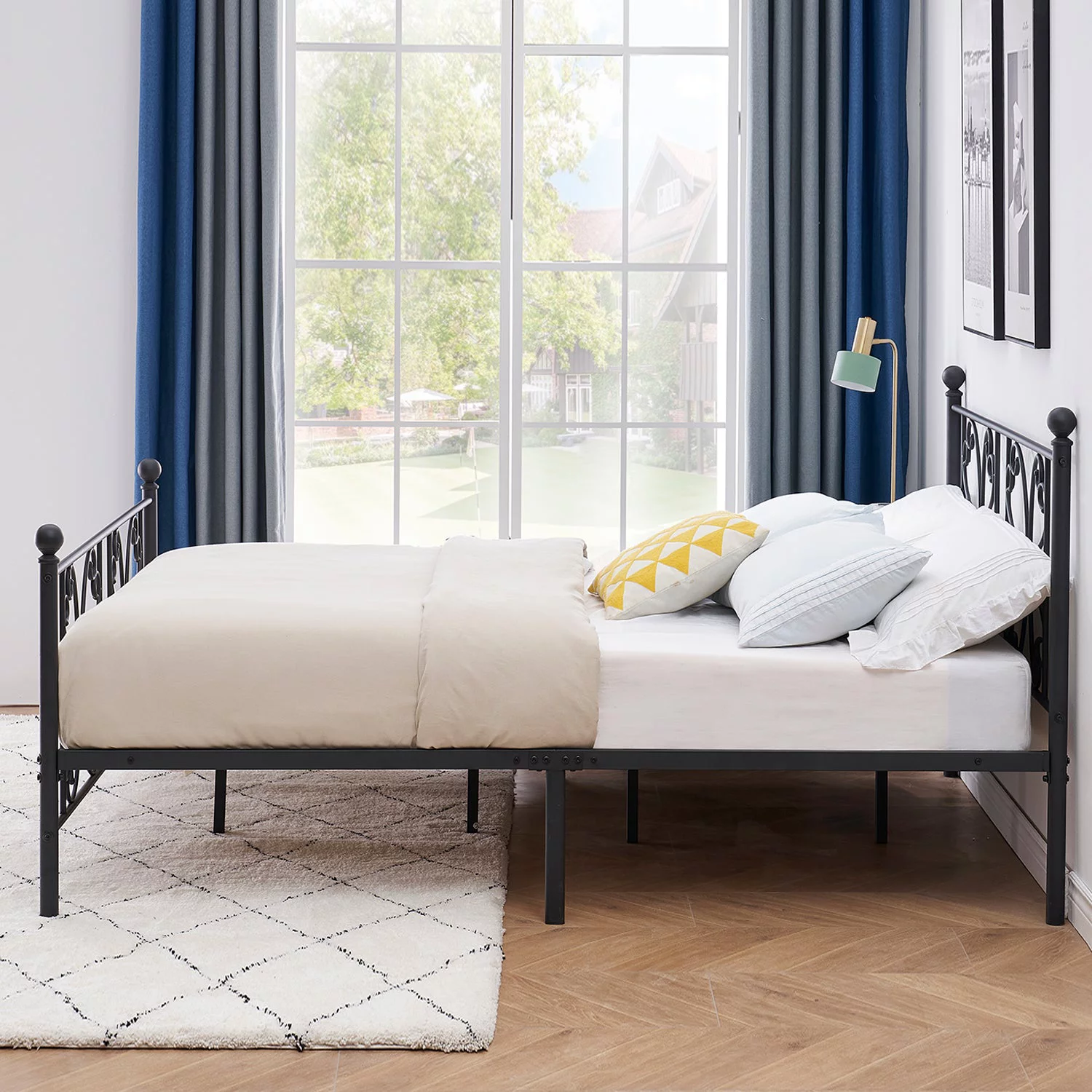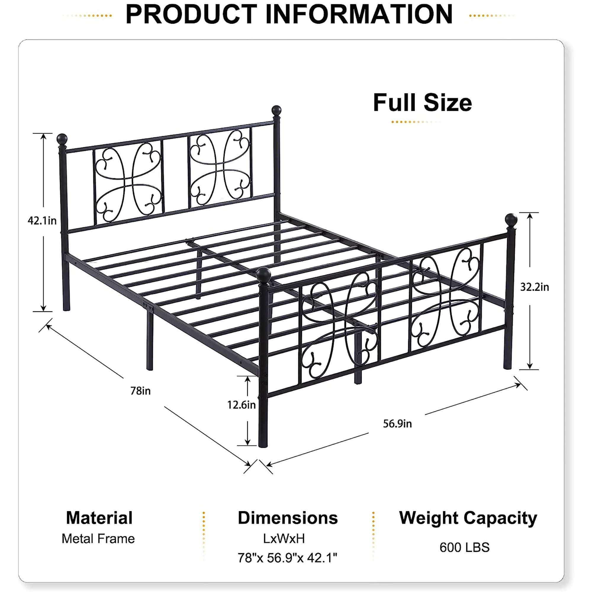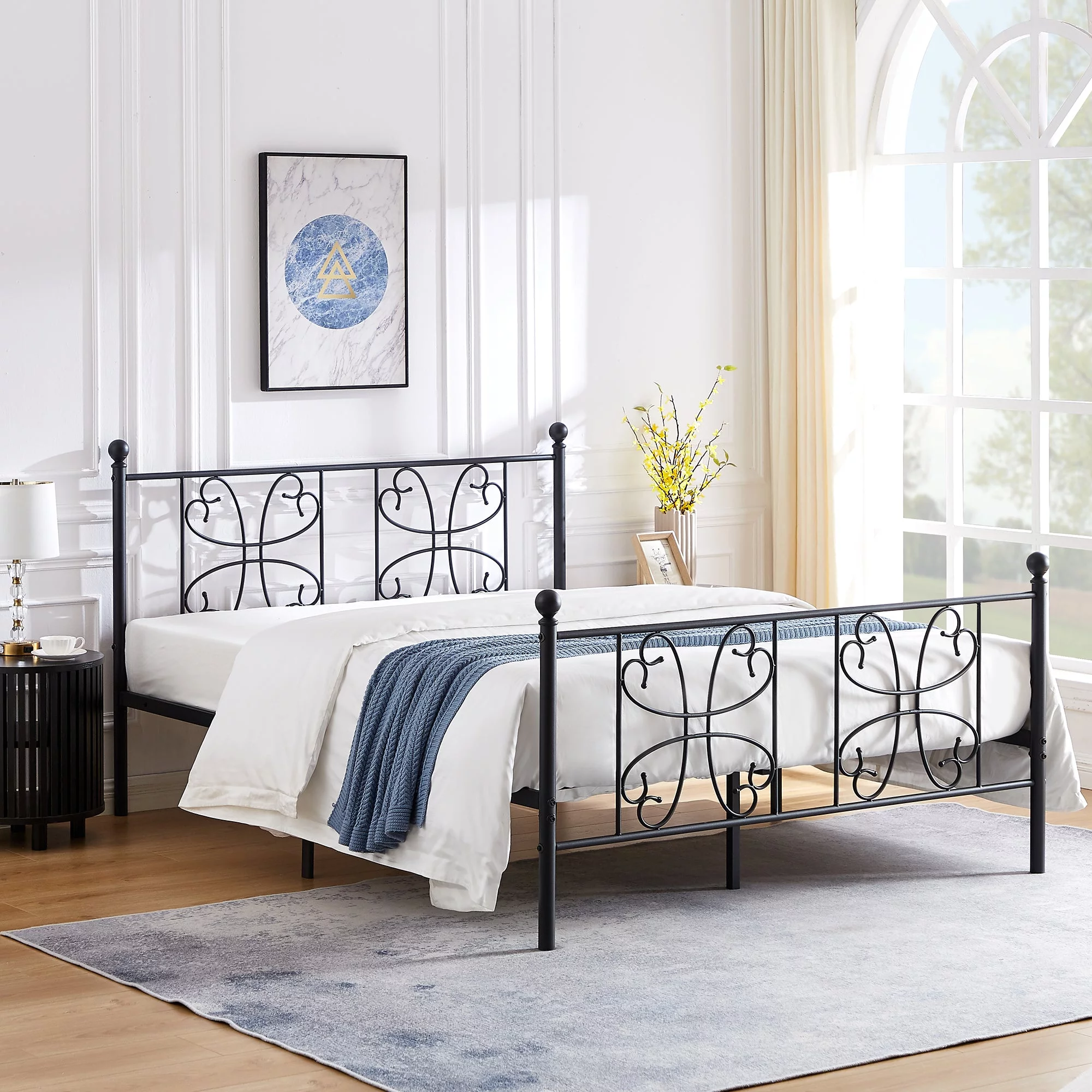 LIHONG 18 Inch Metal Platform Beds w/Heavy Duty Steel Slat Mattress Foundation (No Box Spring Needed)