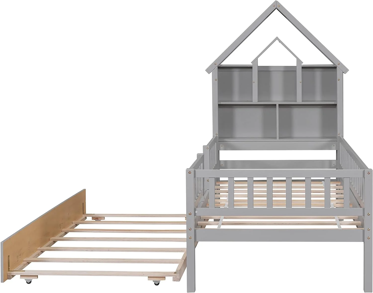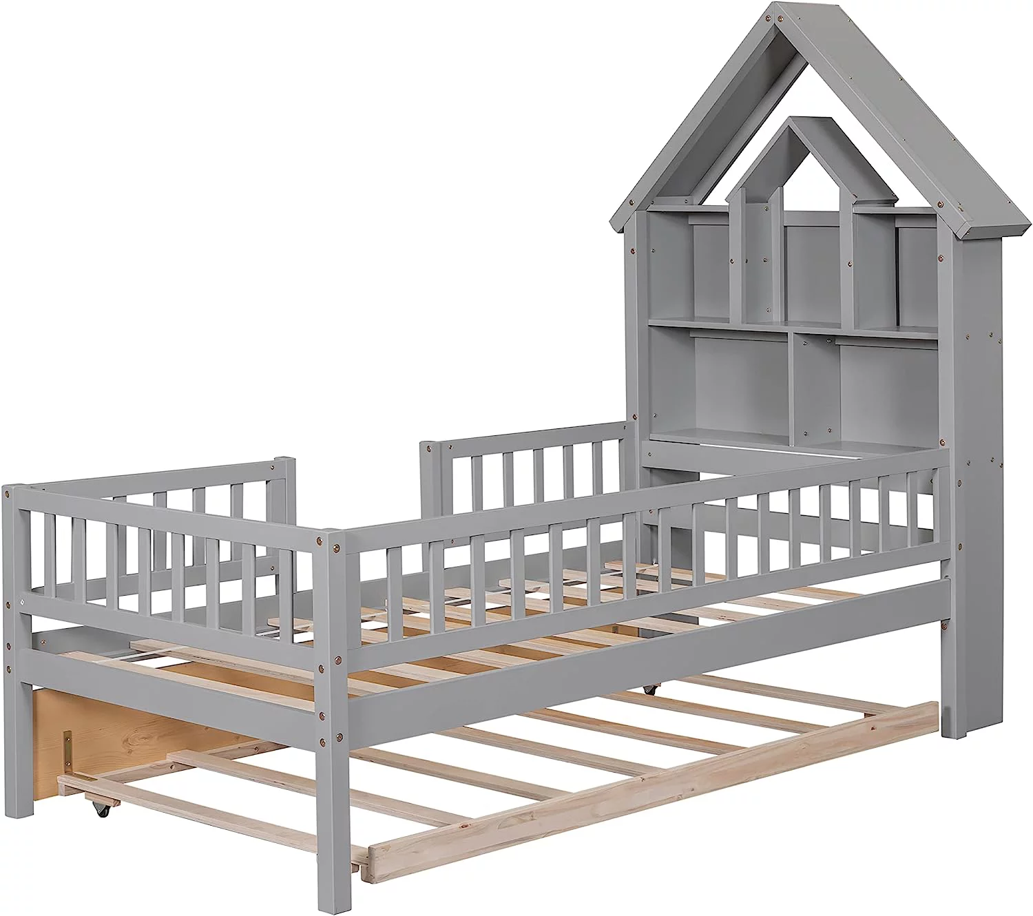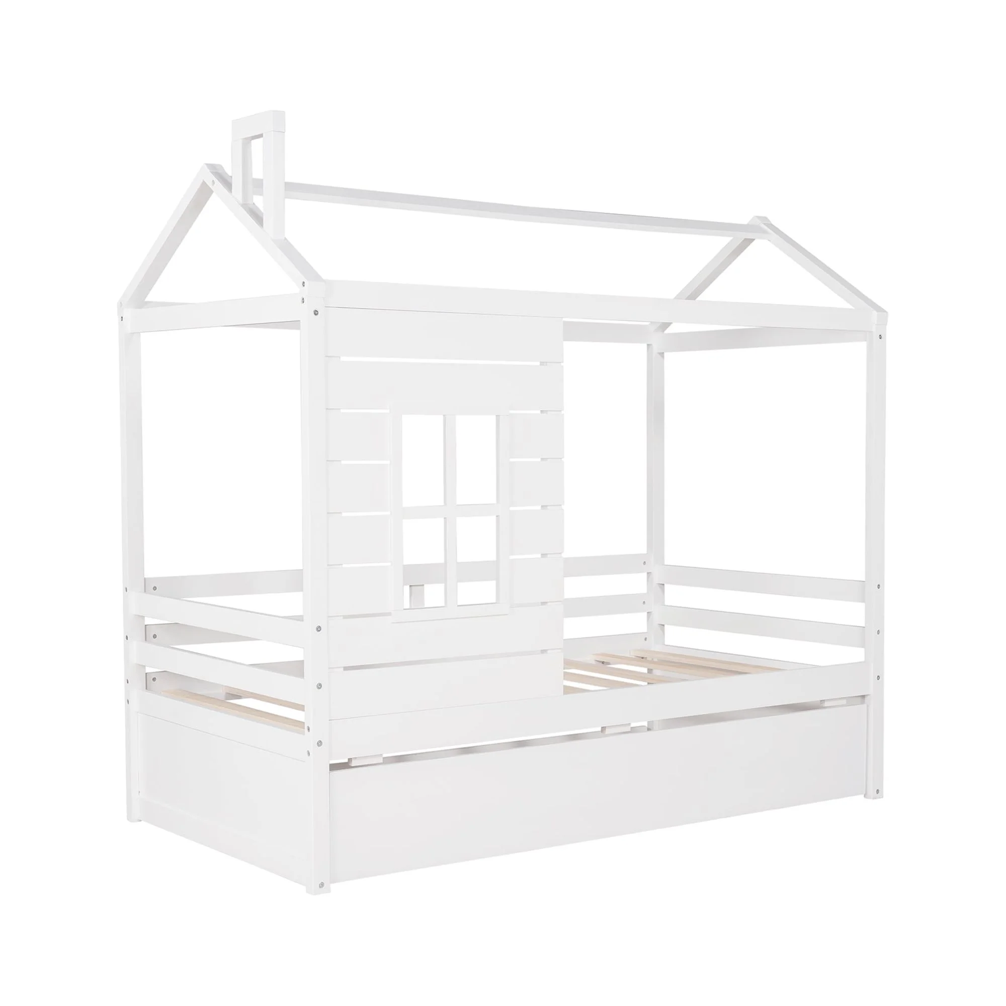 CoSoTower Twin Size House Bed Wood Bed With Twin Size Trundle, White