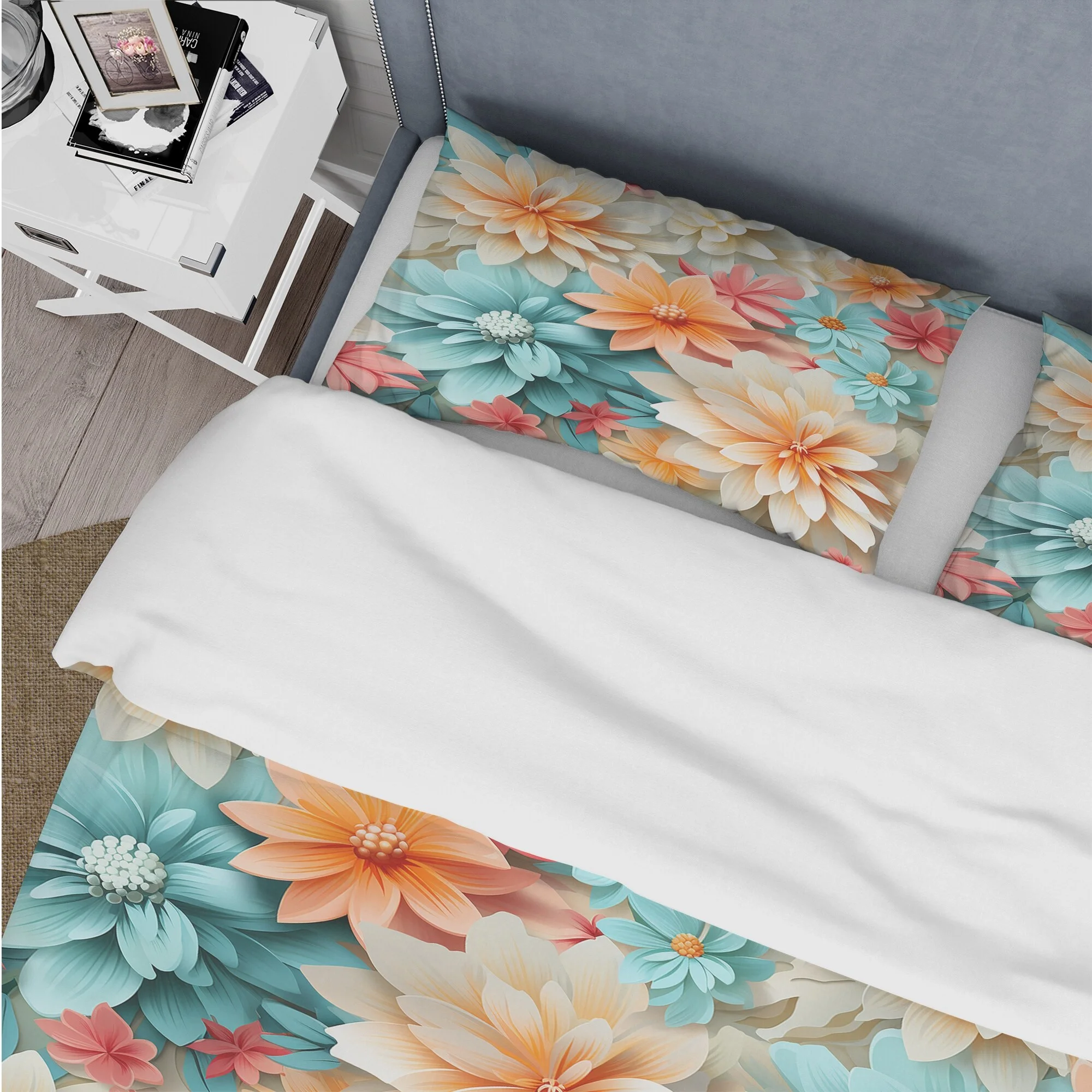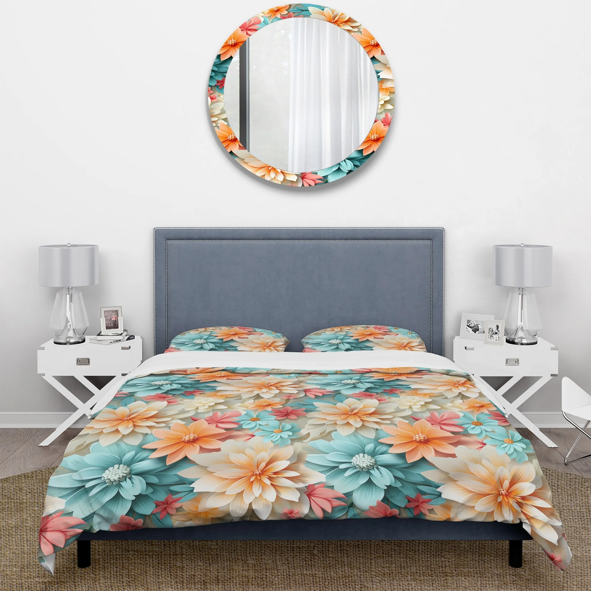 DESIGN ART Designart "Boho Pastel Floral Mandala Harmony" Orange Cottage Bedding Cover Set With 2 Shams Full - Queen