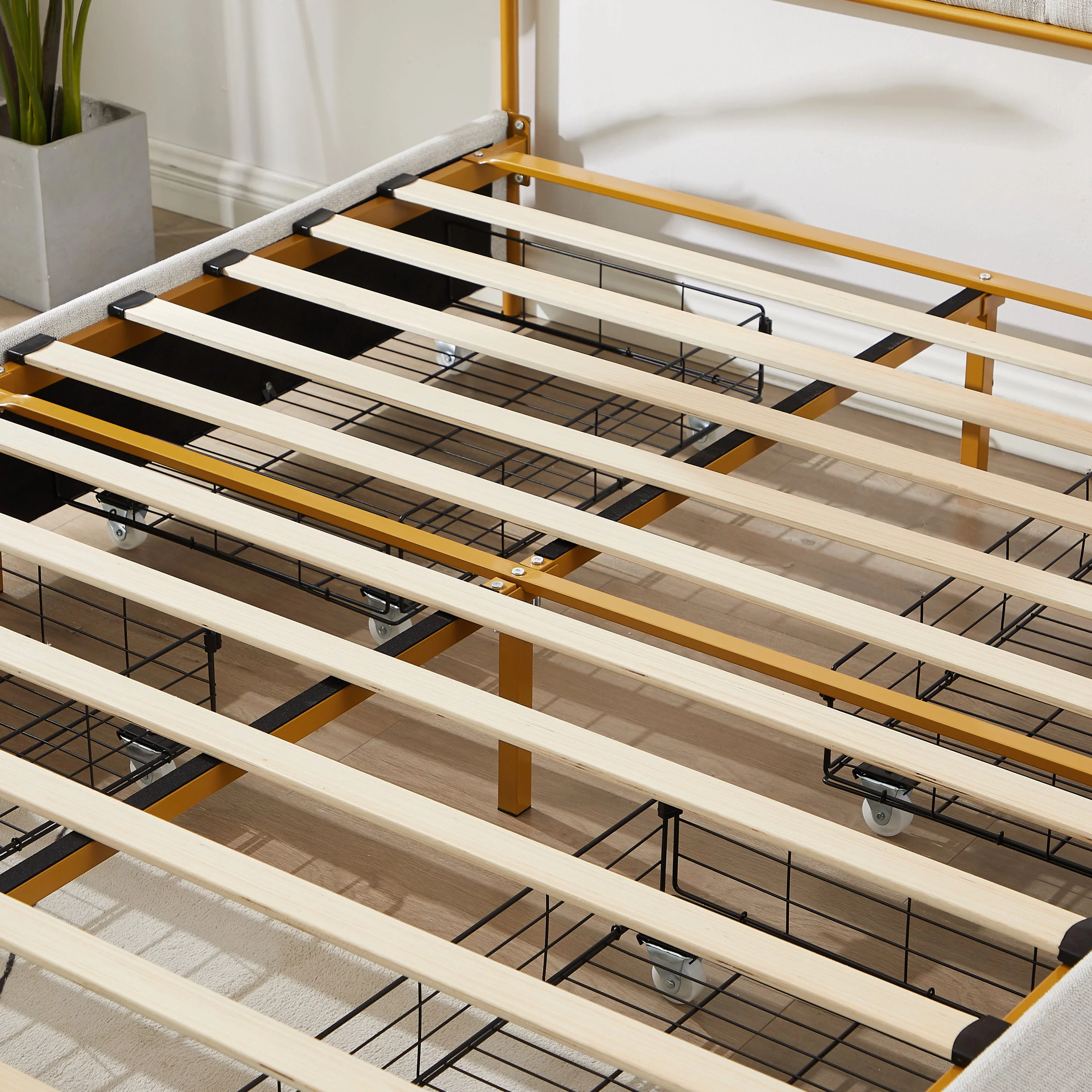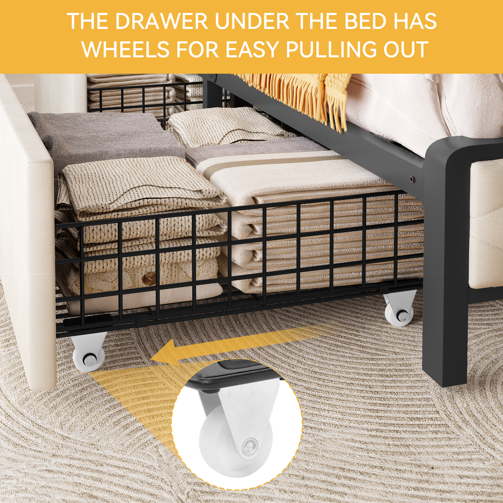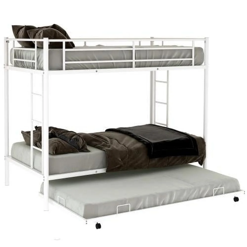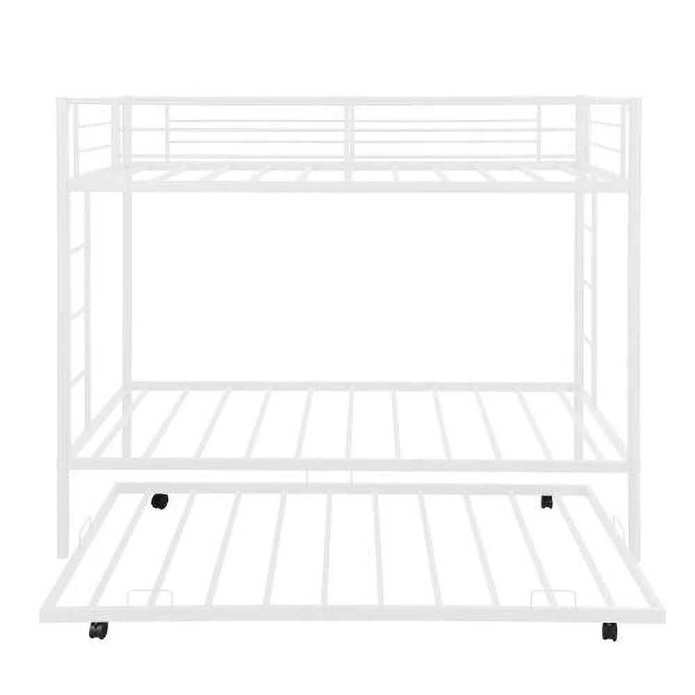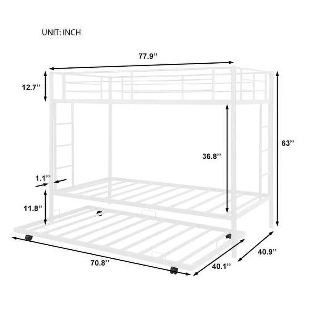 Twin Over Twin Metal Bunk Bed with Trundle, Twin Size Bunk Bed for Family, Kids, Teens,No Box Spring Needed