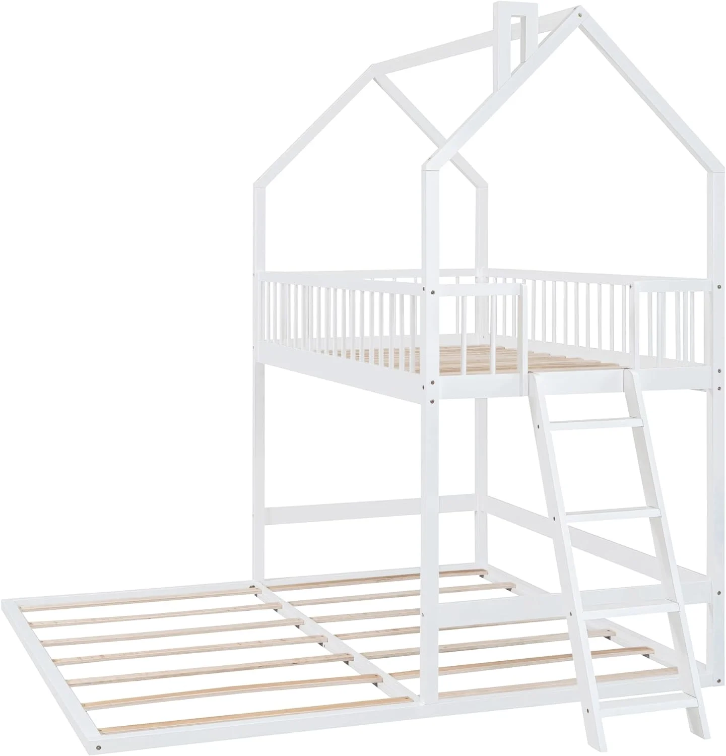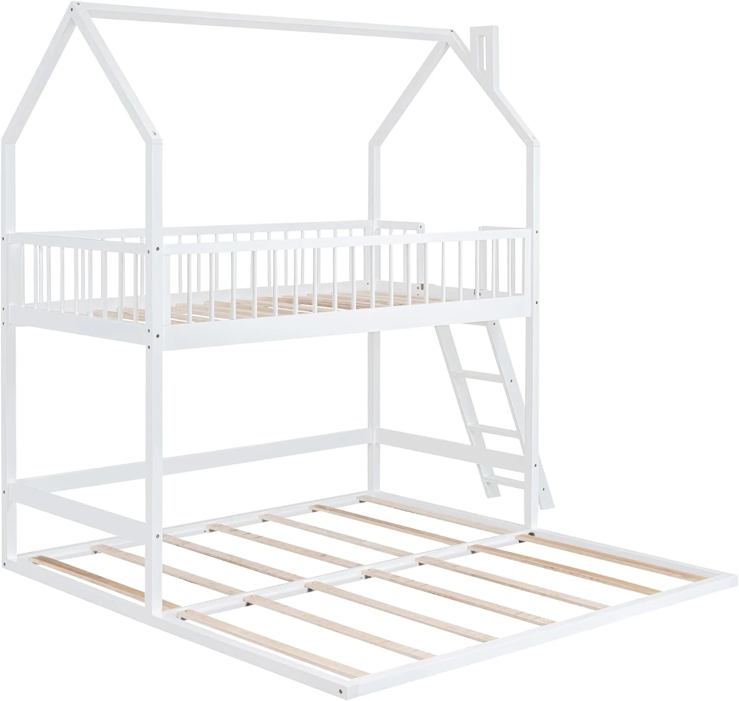 Over House Bunk Bed With Extending Trundle And Ladder, Wooden Bunk Bed Frame For Kids Teens Girls Boys - White