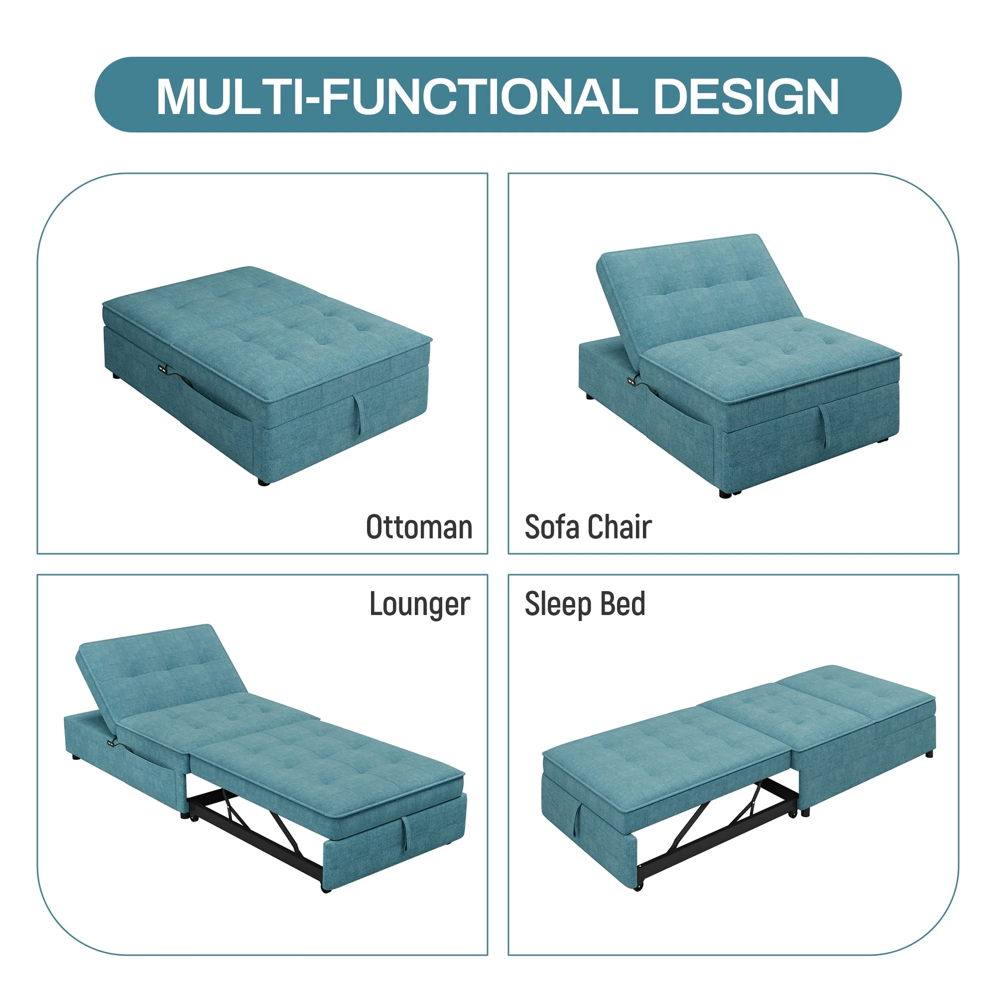 Relax A Lounger Amare Convertible Ottoman in Navy Blue Fabric Upholstery