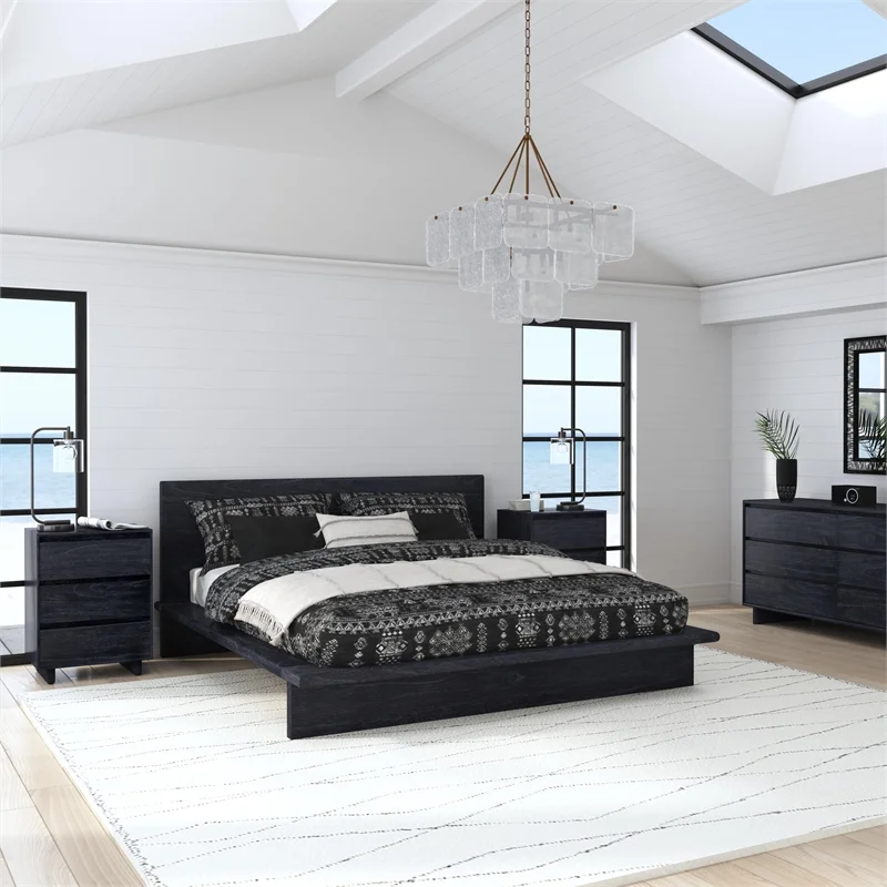 Homestead Collection Platform Bed with Storage, Queen with Laser Engraved Bear Design, Ready to Finish