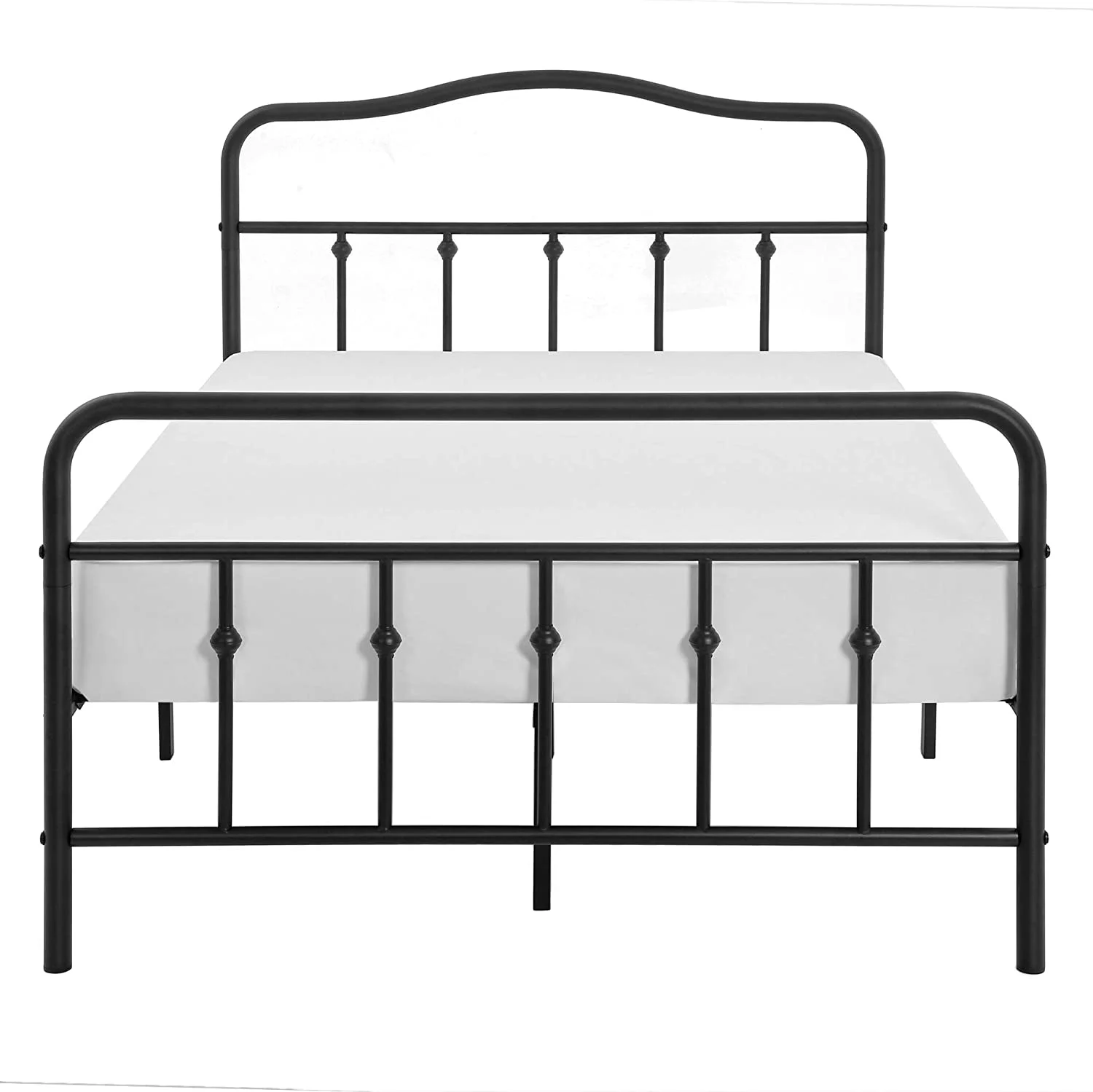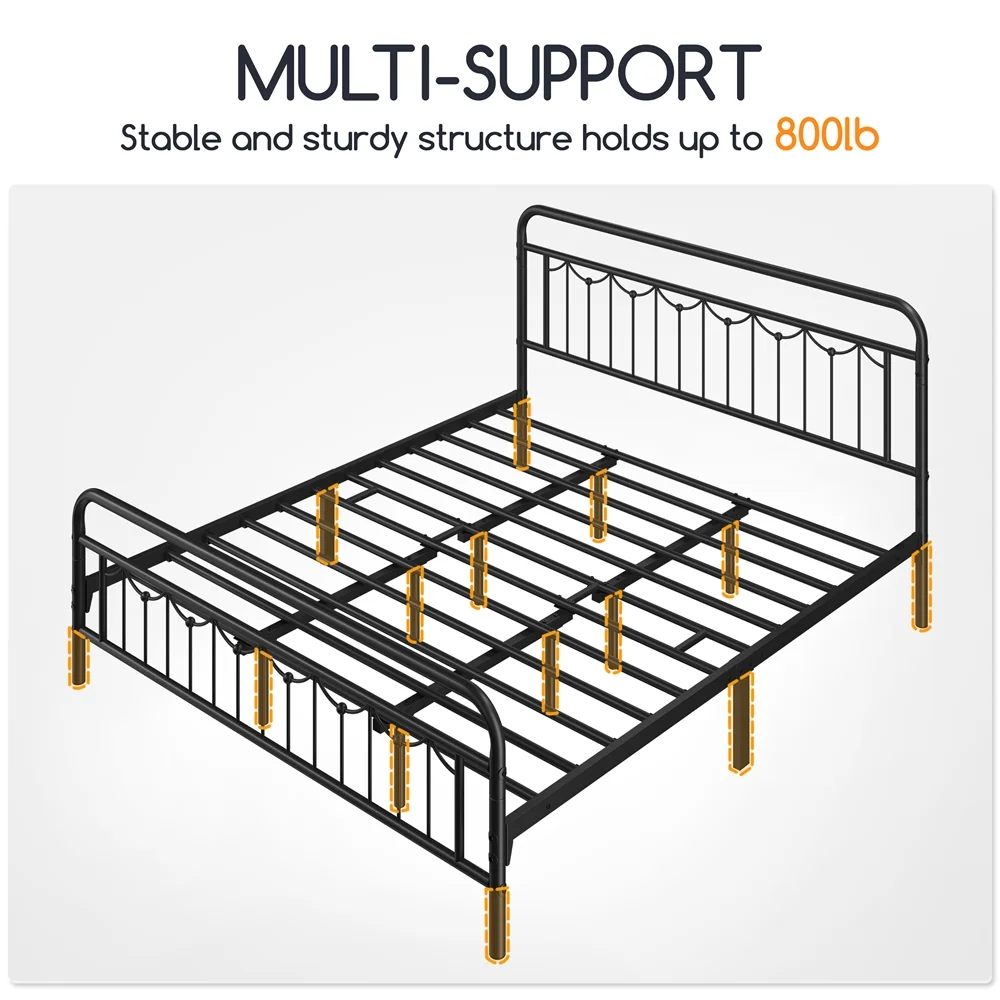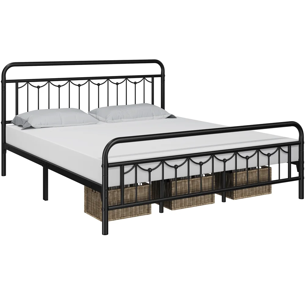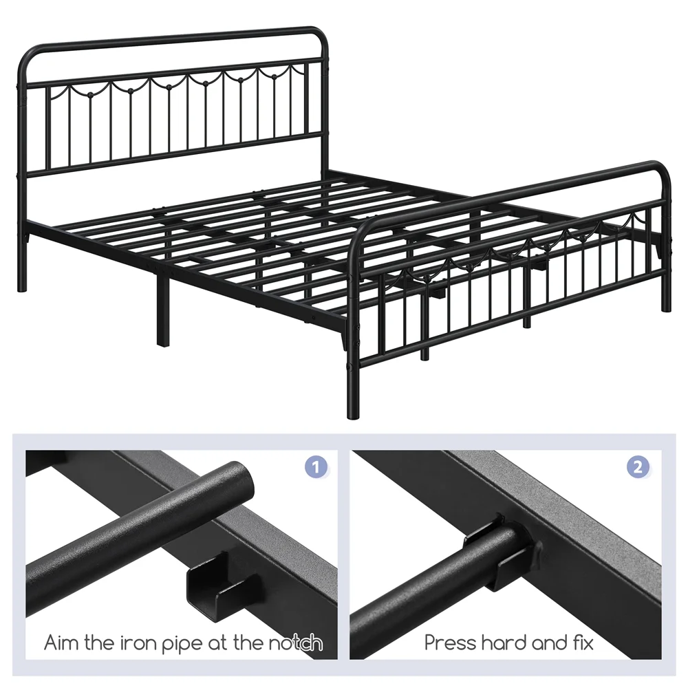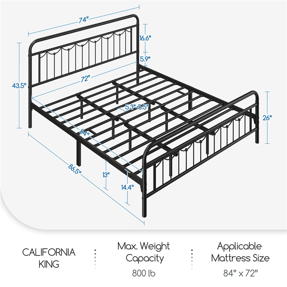 Smile Mart Metal Platform Bed with Vintage Headboard and Footboard, California King Size, Black