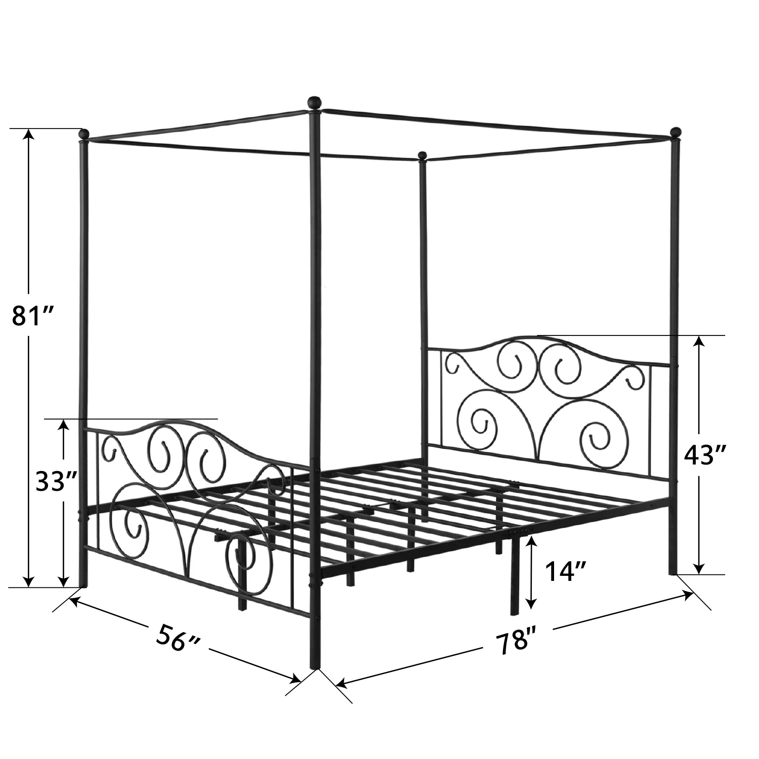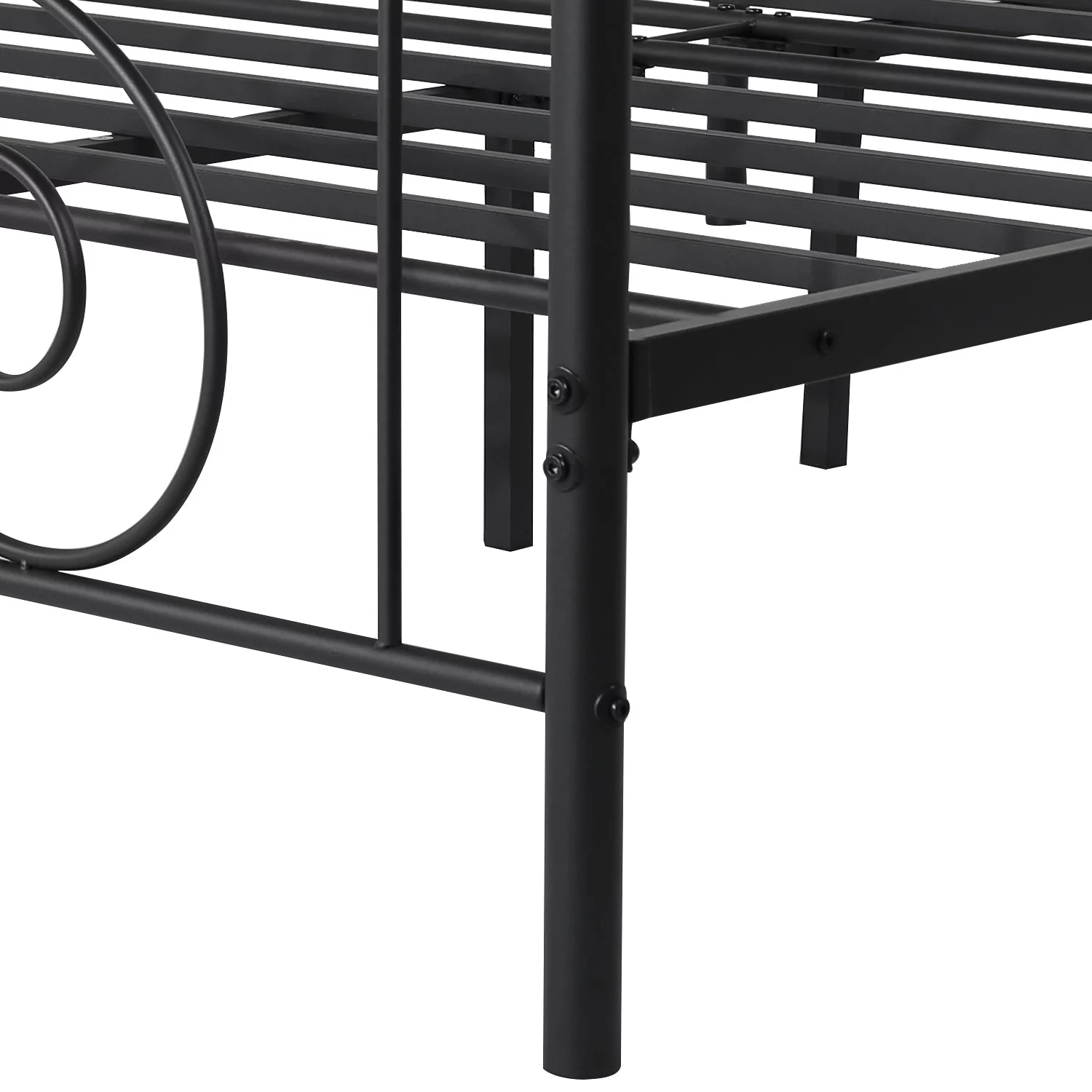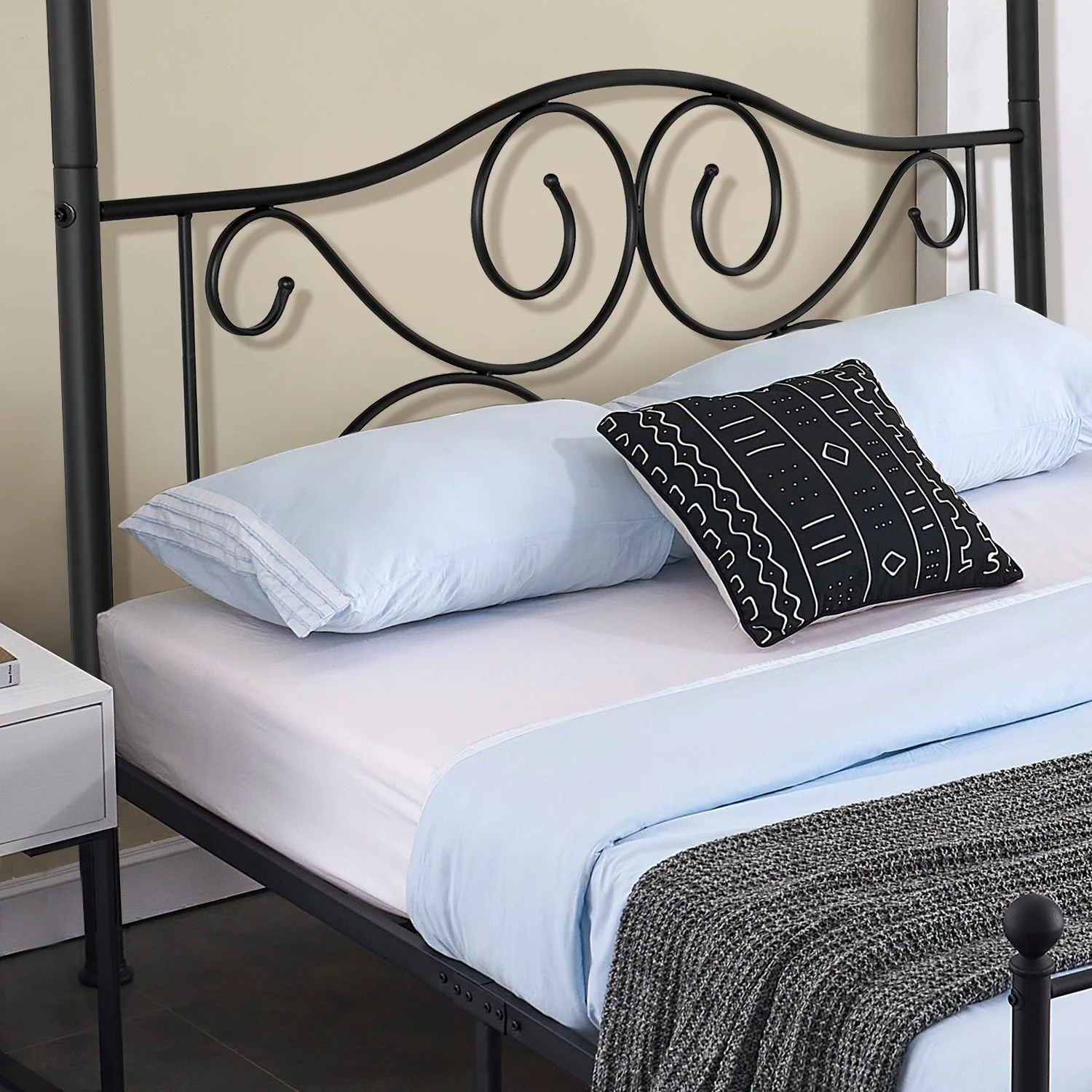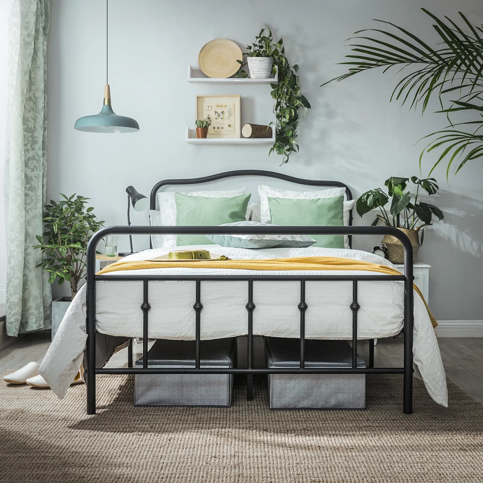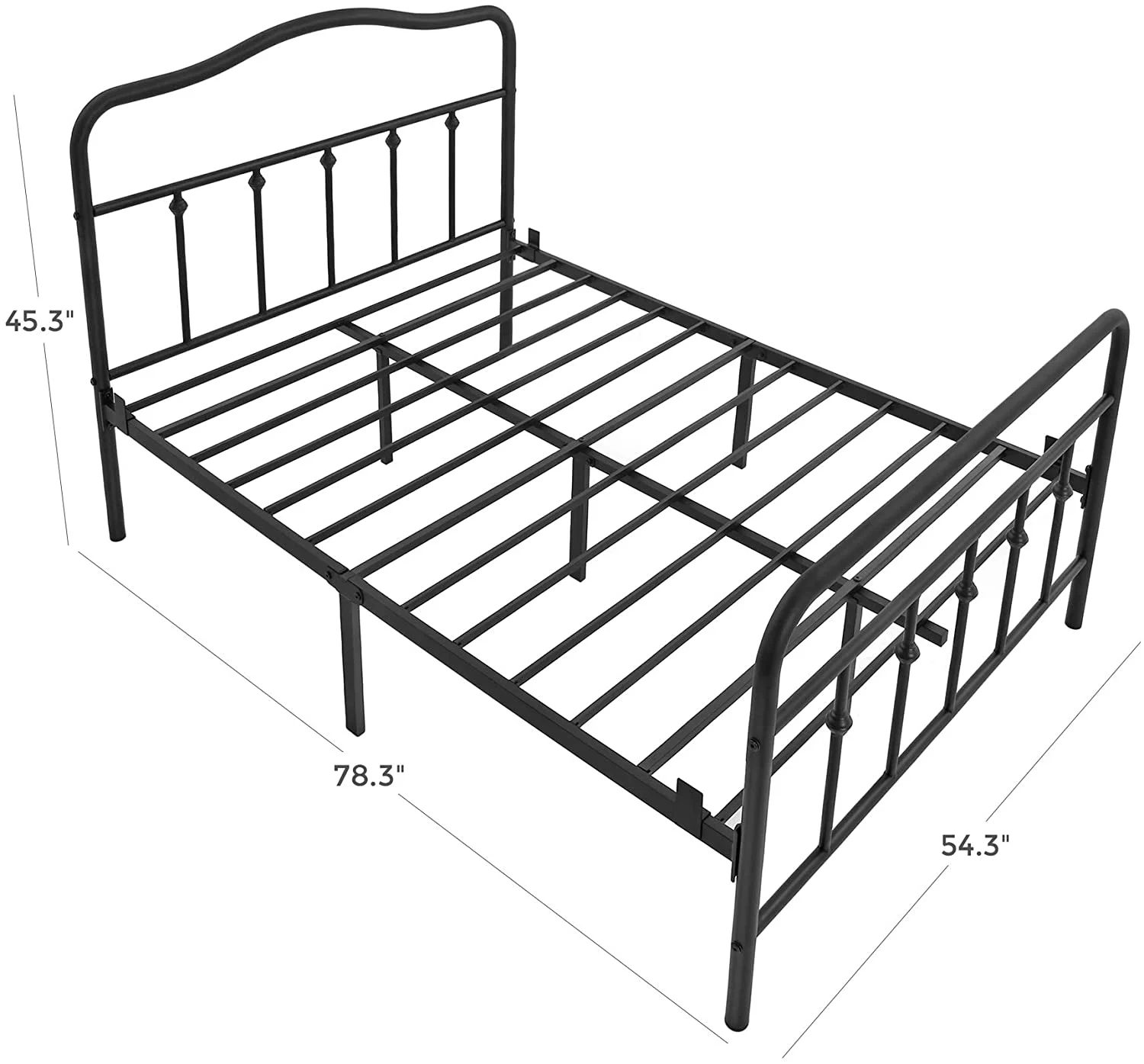 Smile Mart Metal Platform Bed with Vintage Headboard and Footboard, California King Size, Black