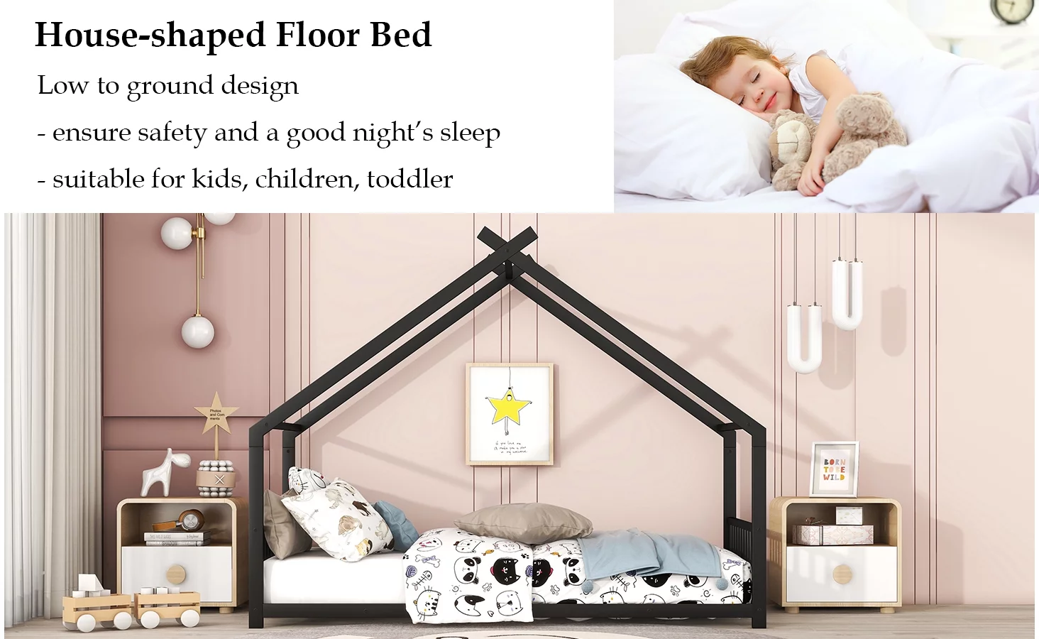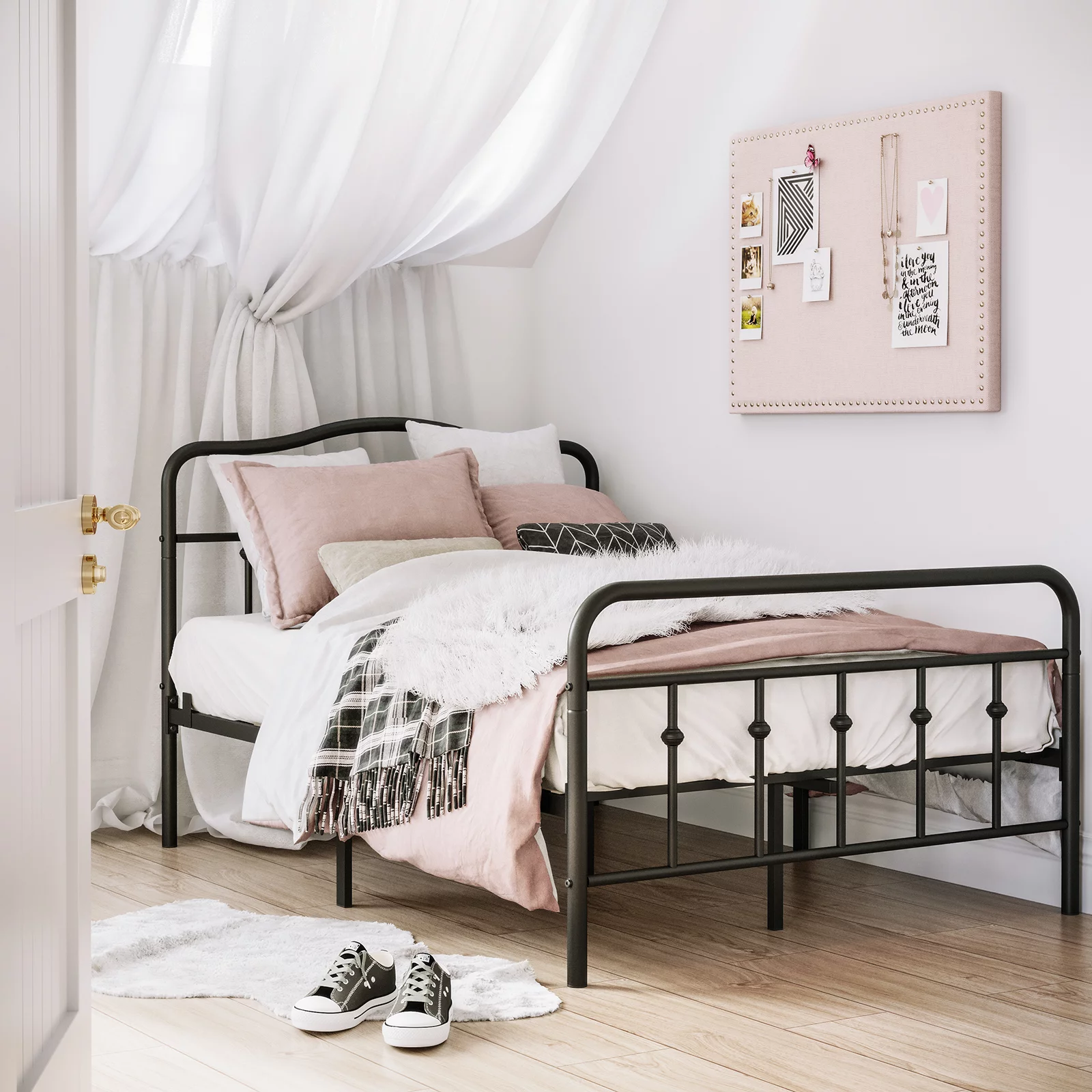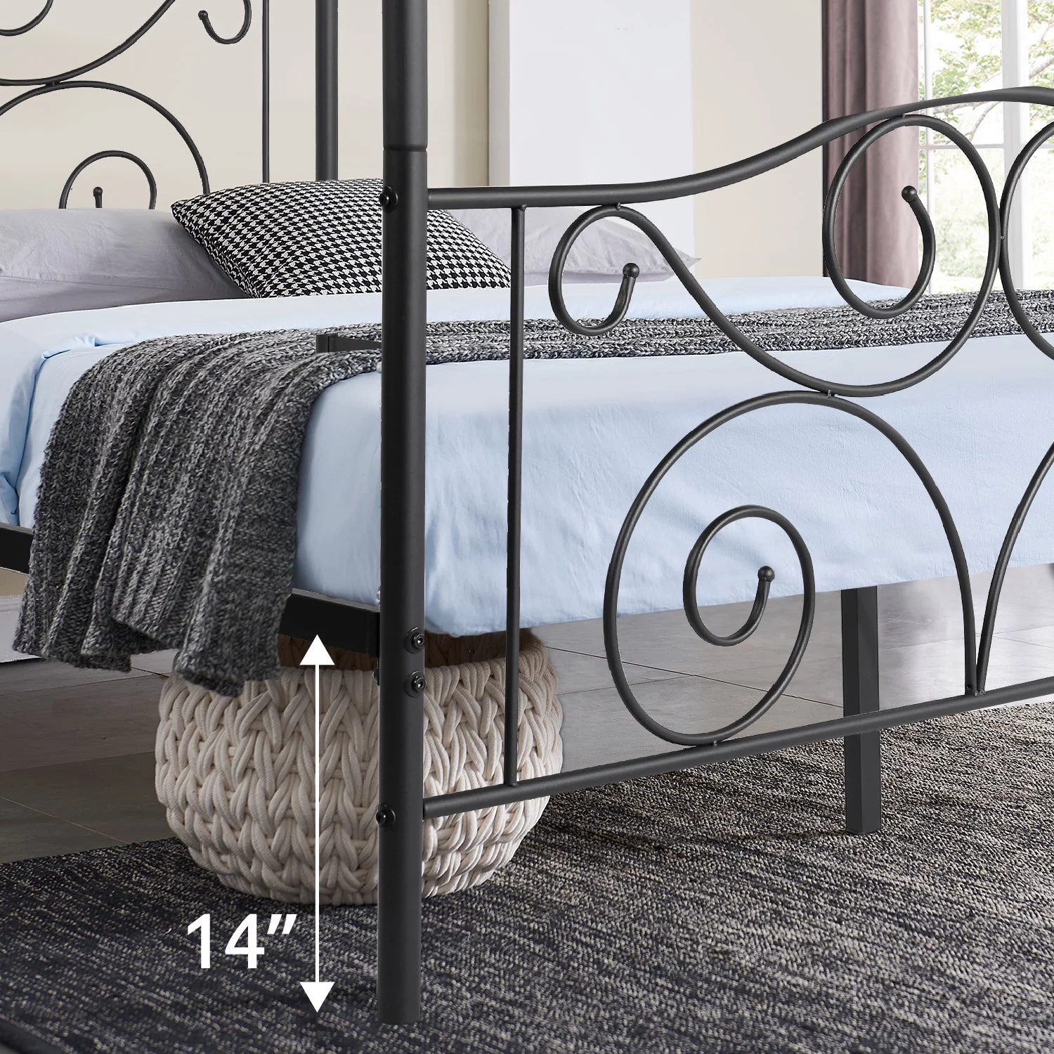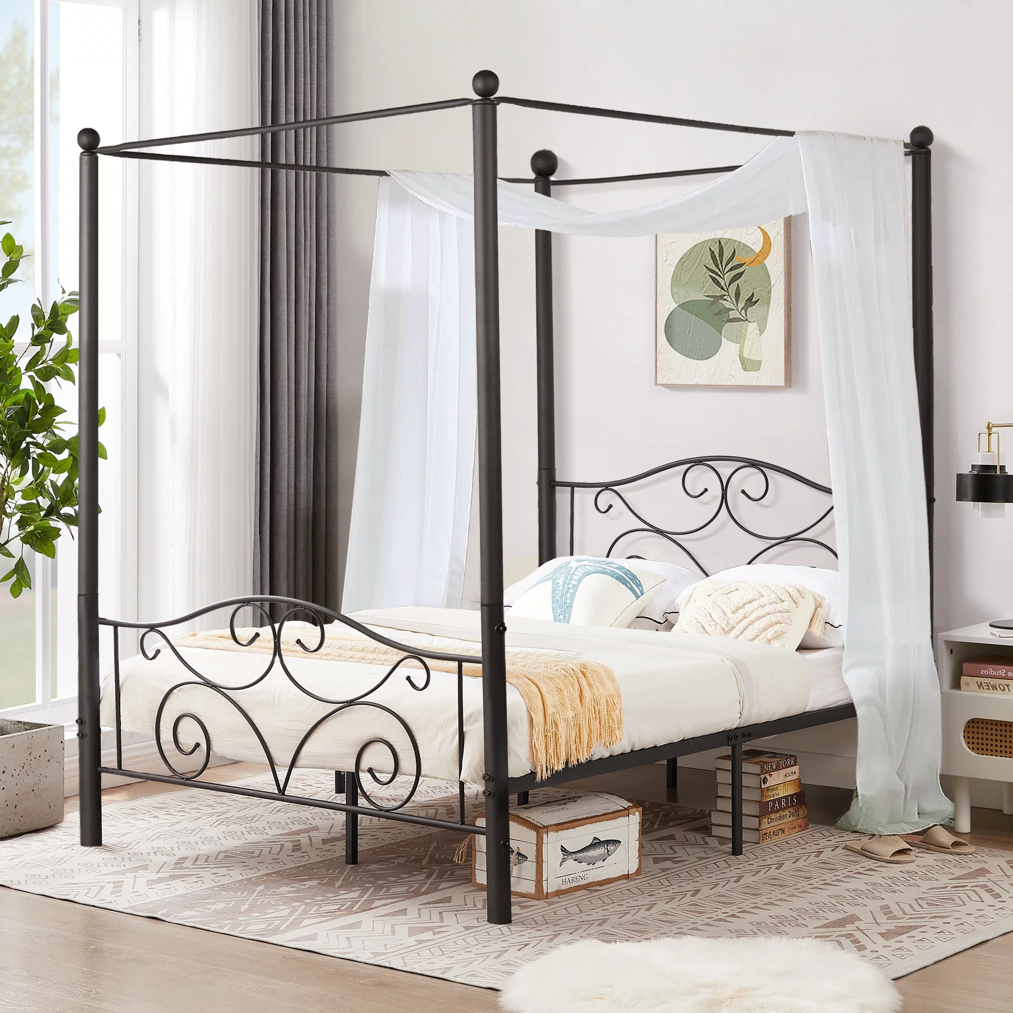Smile Mart Metal Platform Bed with Vintage Headboard and Footboard, California King Size, Black
