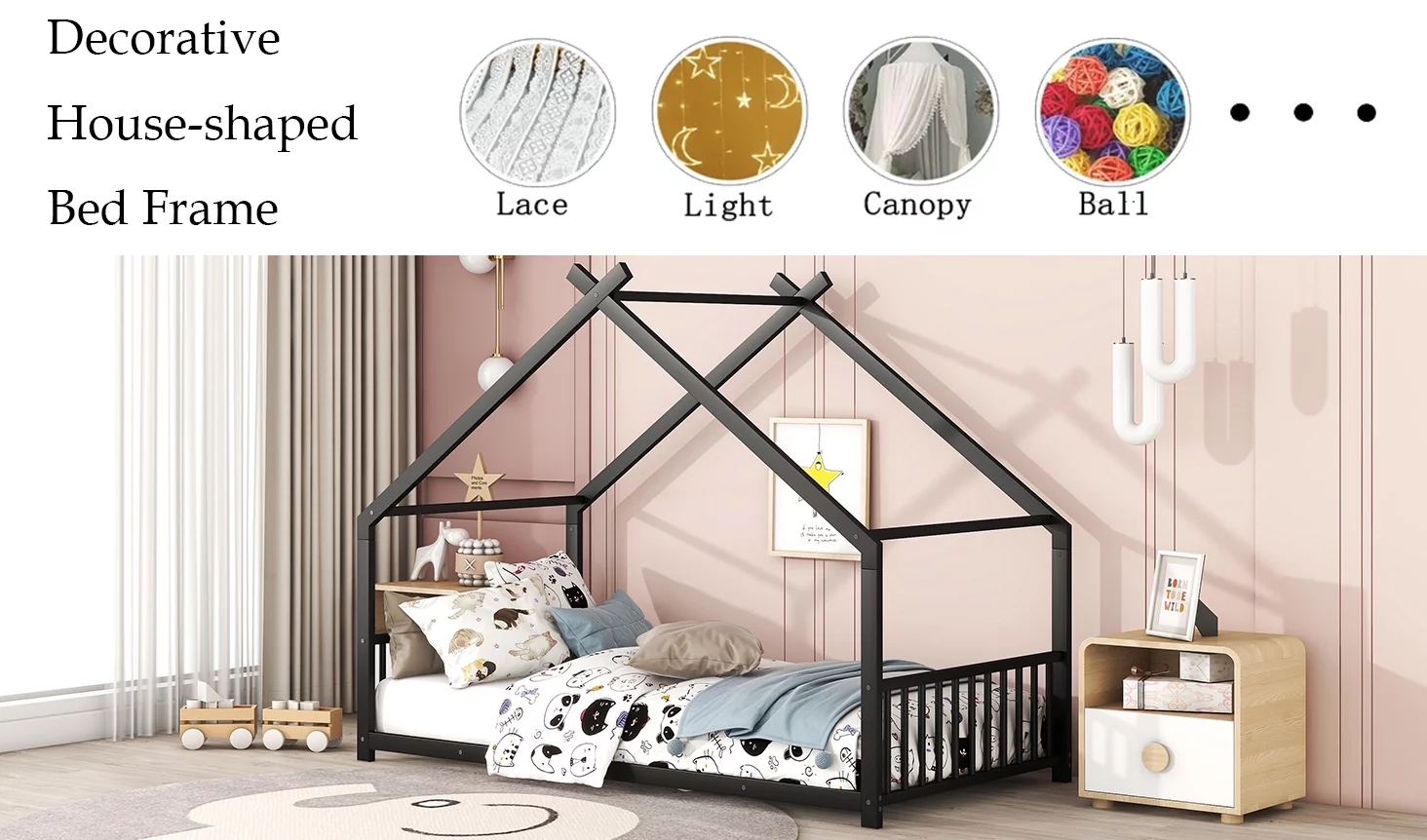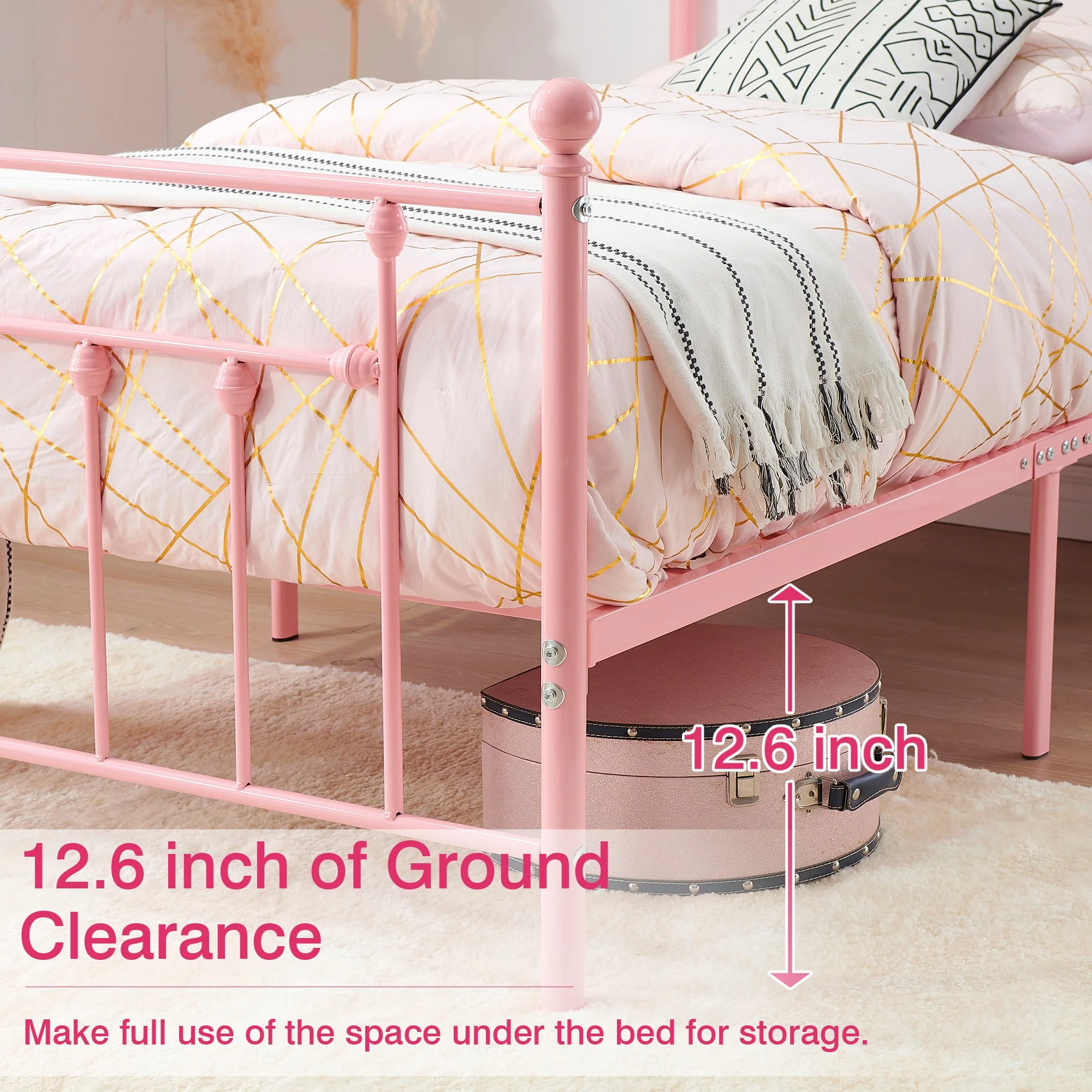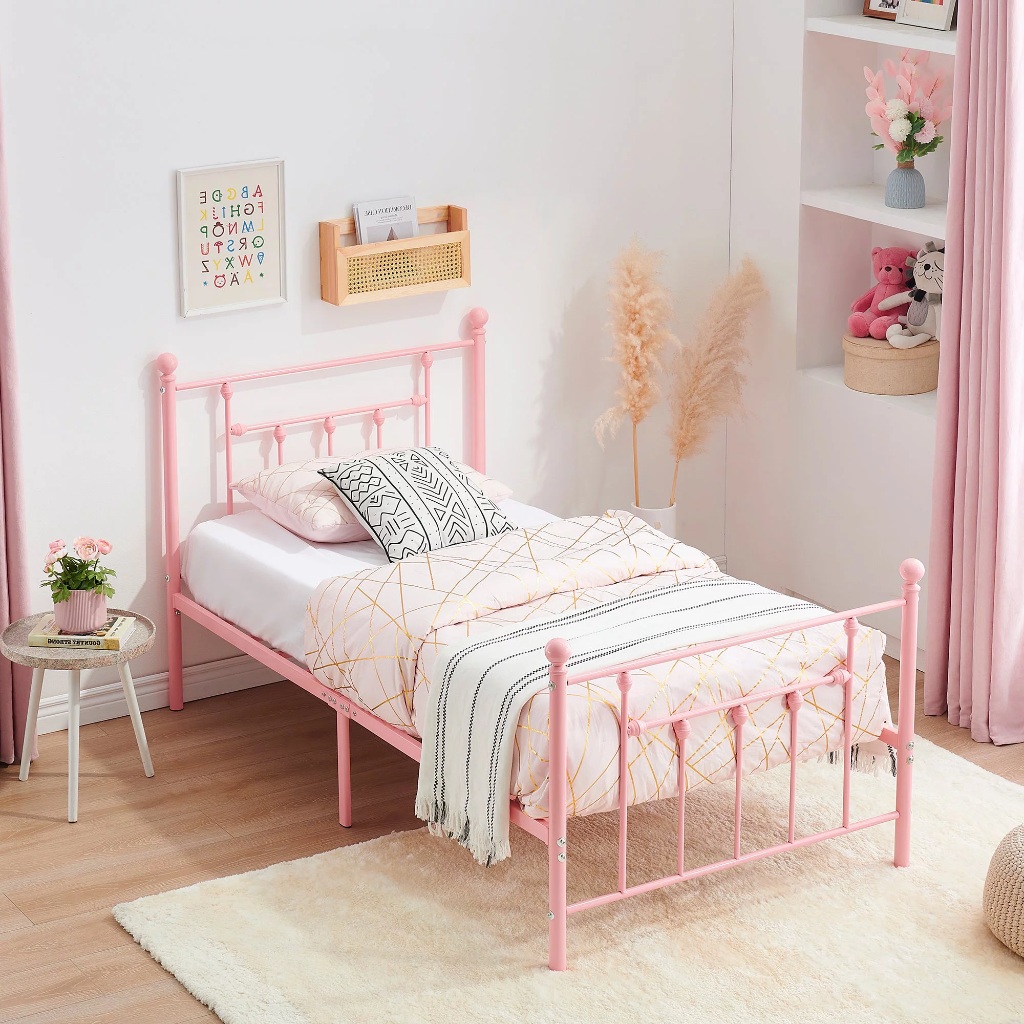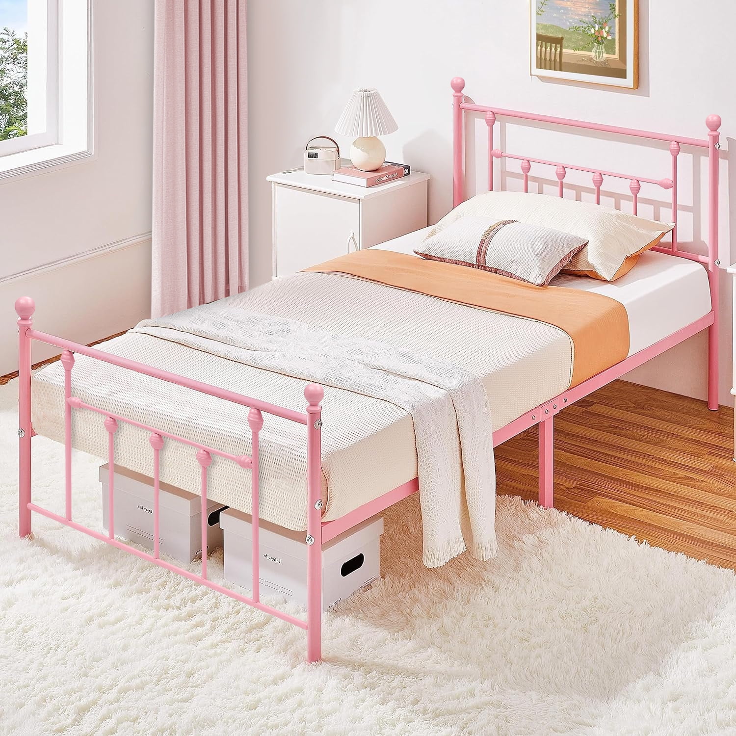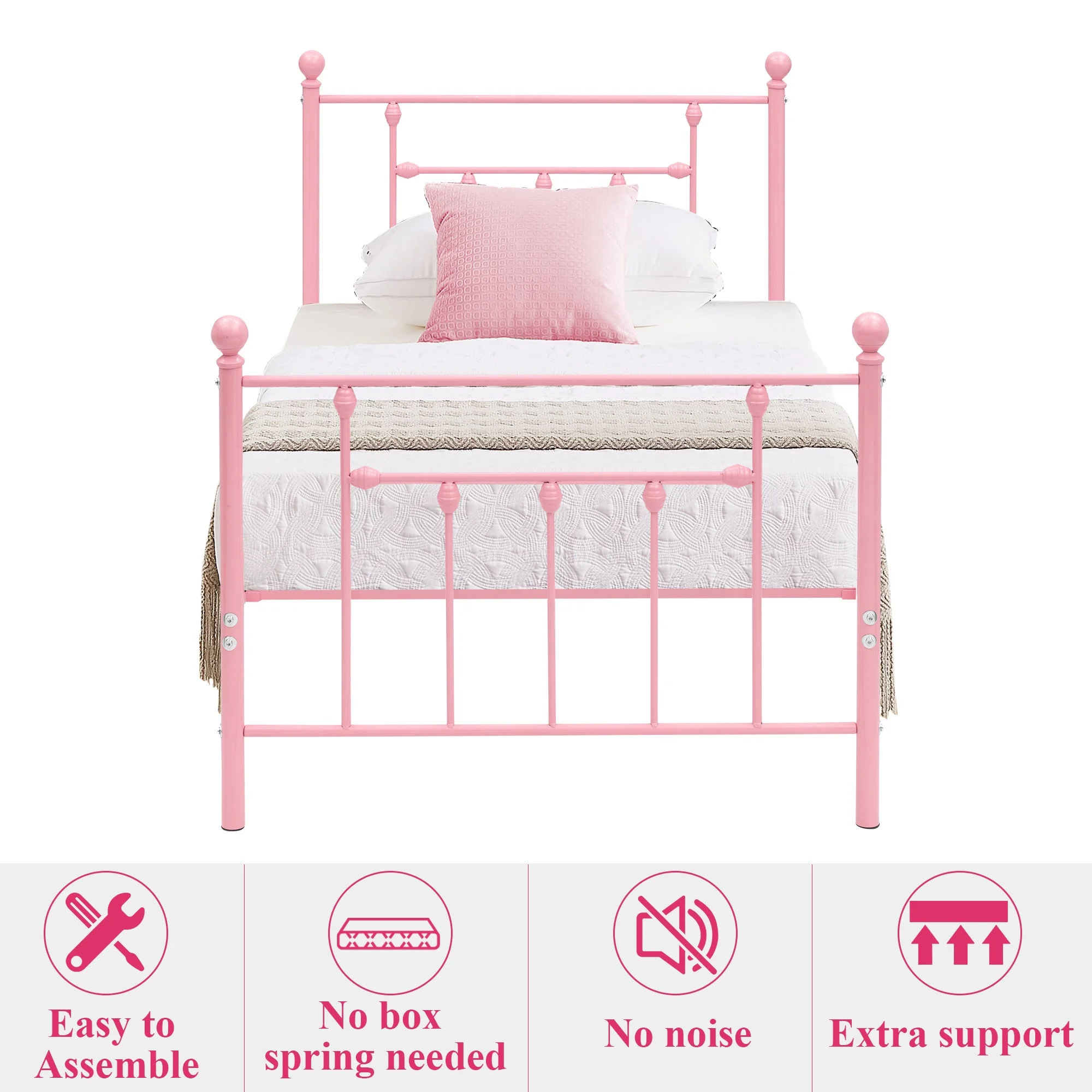 VECELO Twin Size Metal Bed Frame with Headboard and Footboard for Boys Girls, Kids, Adult Bedroom, No Box Spring Need, Pink