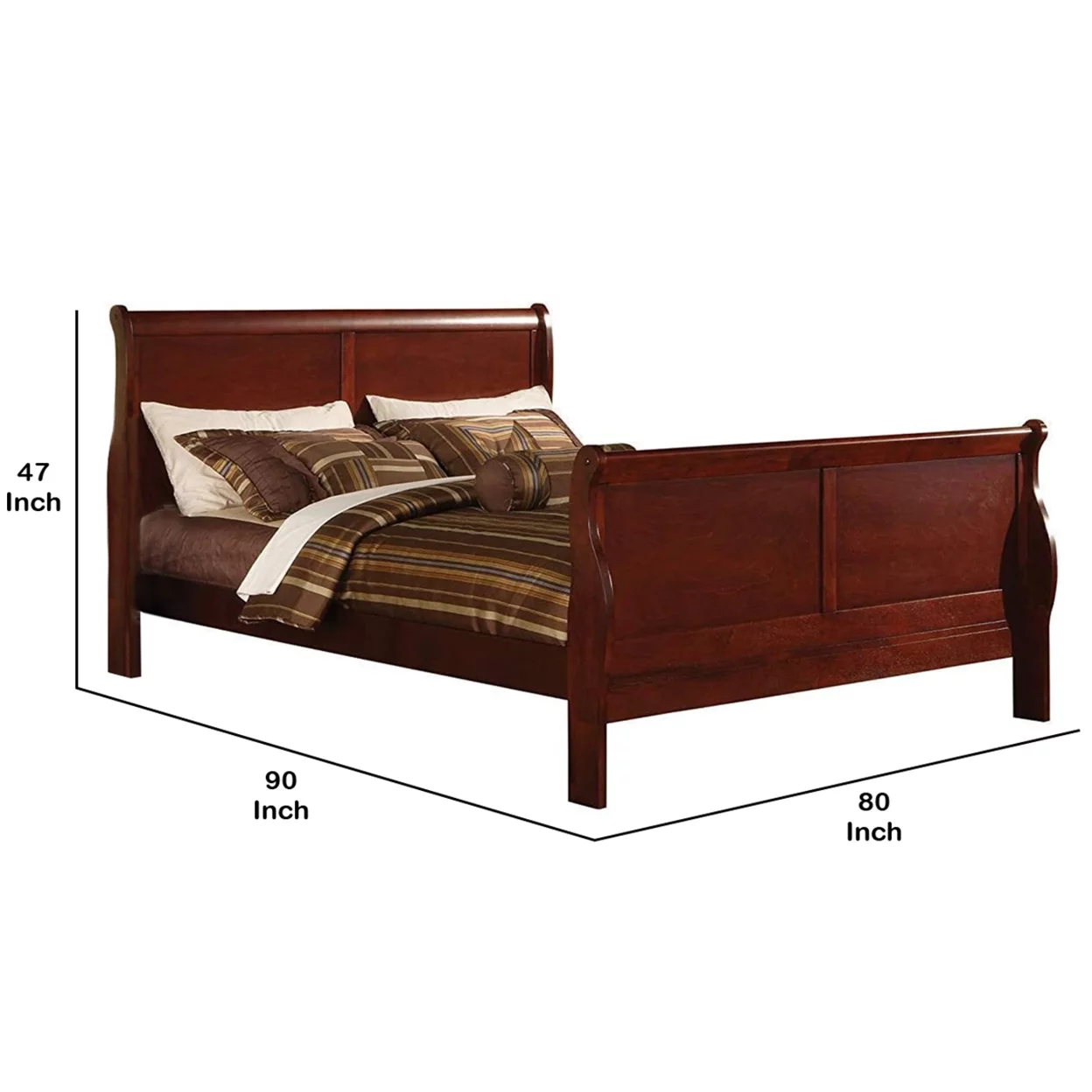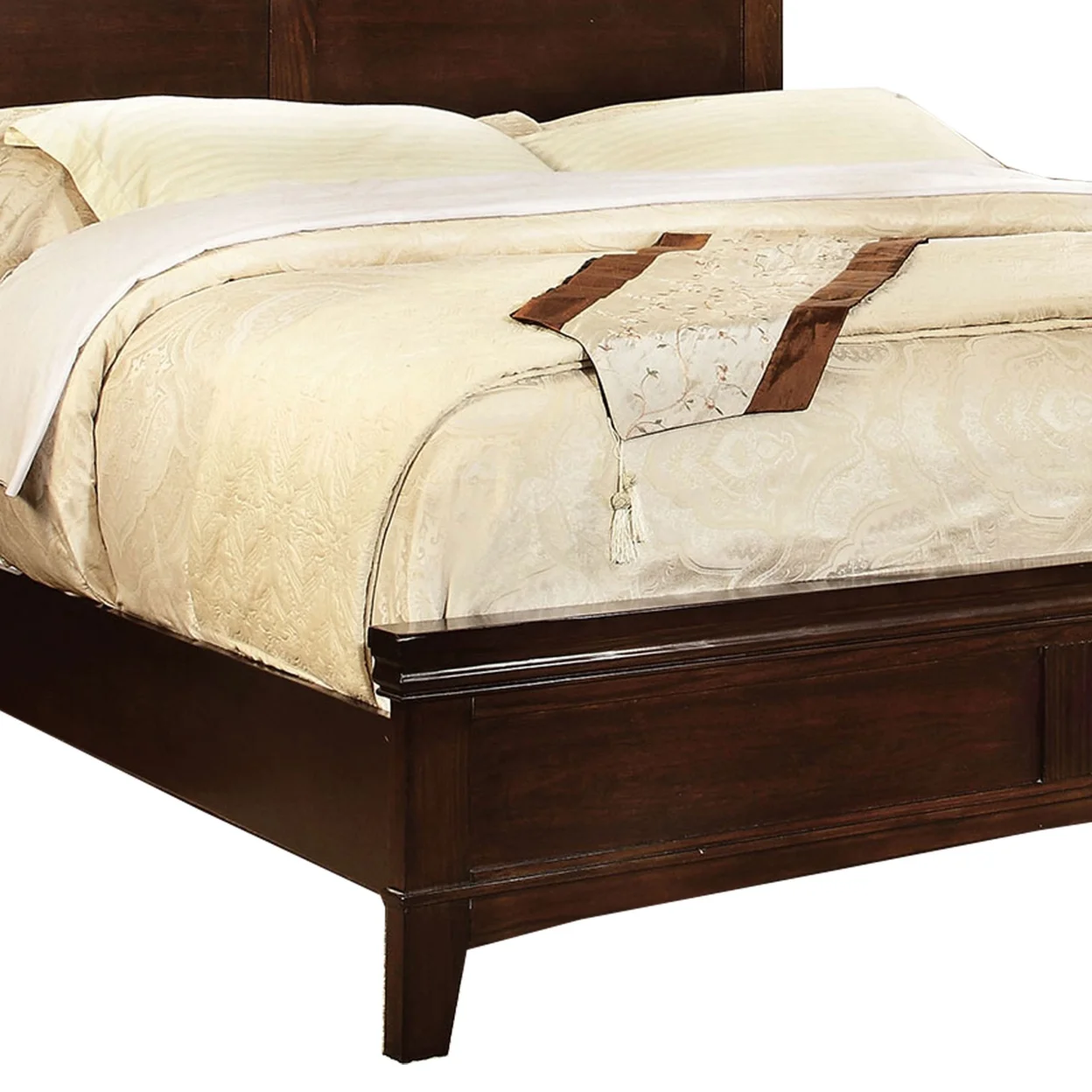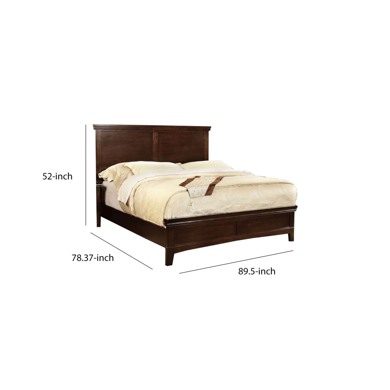 Wooden California King Bed with Panel Headboard and Footboard, Cherry Brown- Saltoro Sherpi