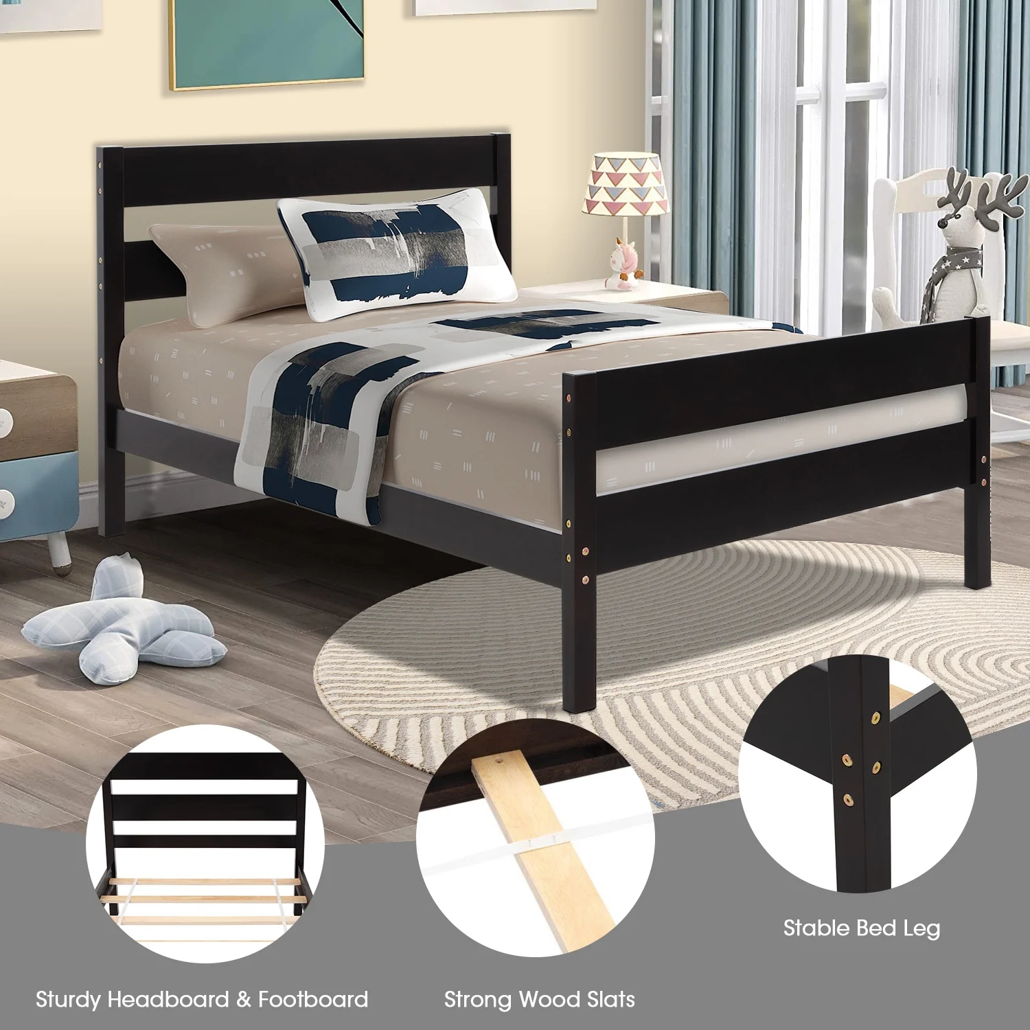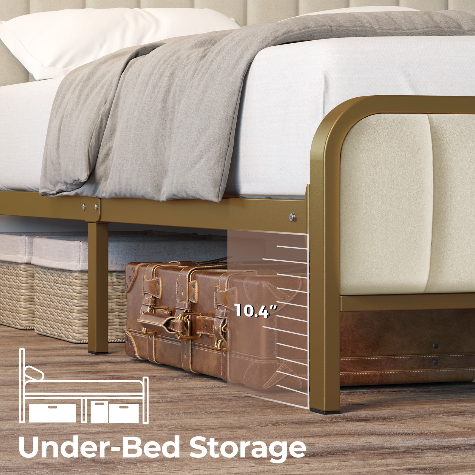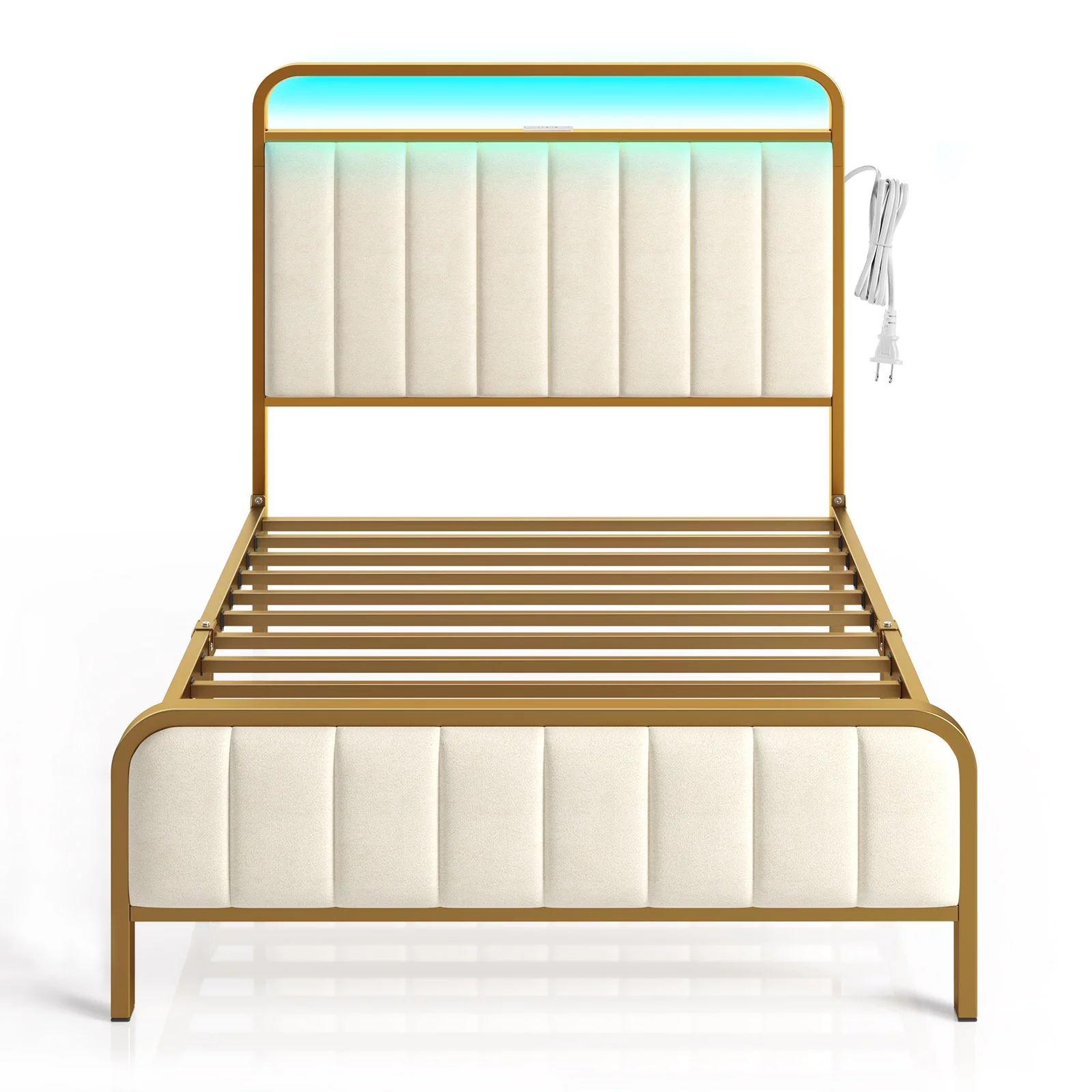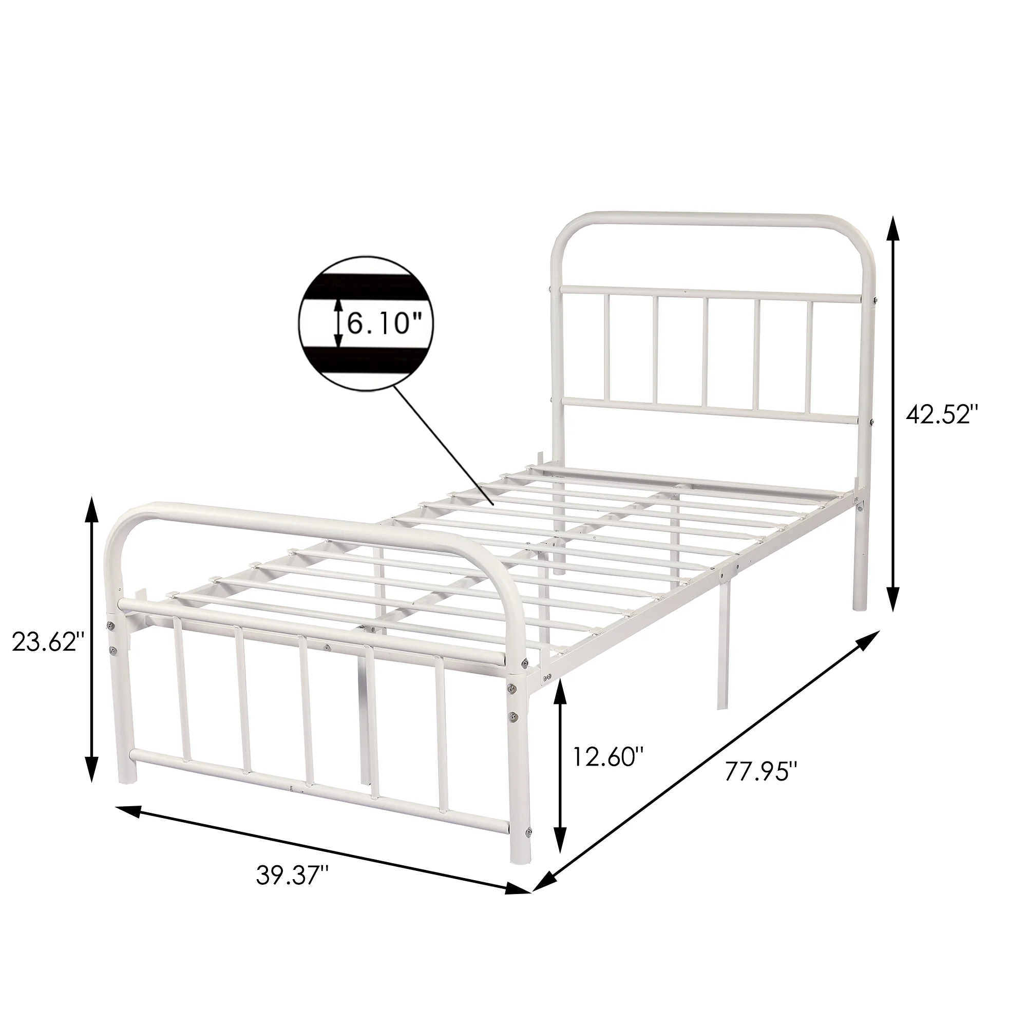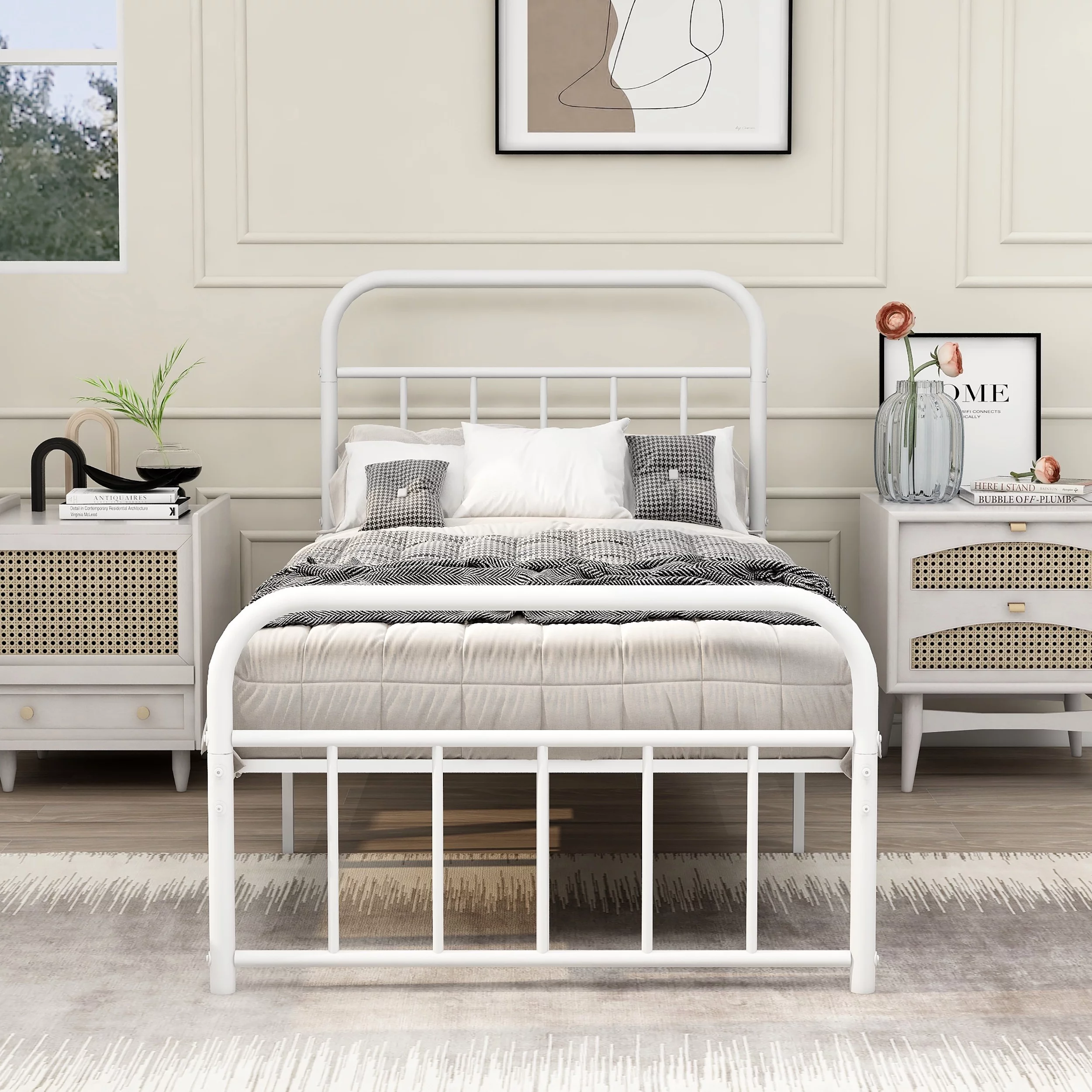 AUFANK Twin Size Heavy Duty Metal Platform Bed Frame, Headboard and Footboard, White