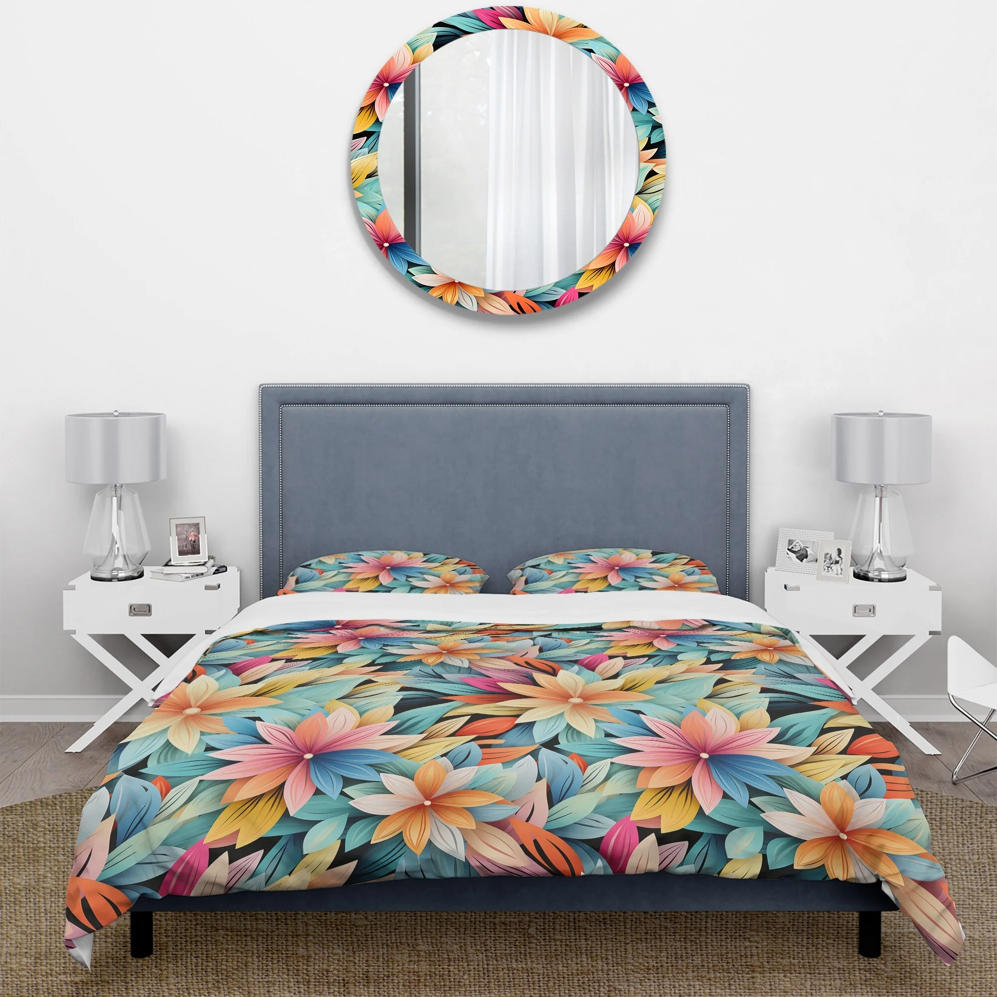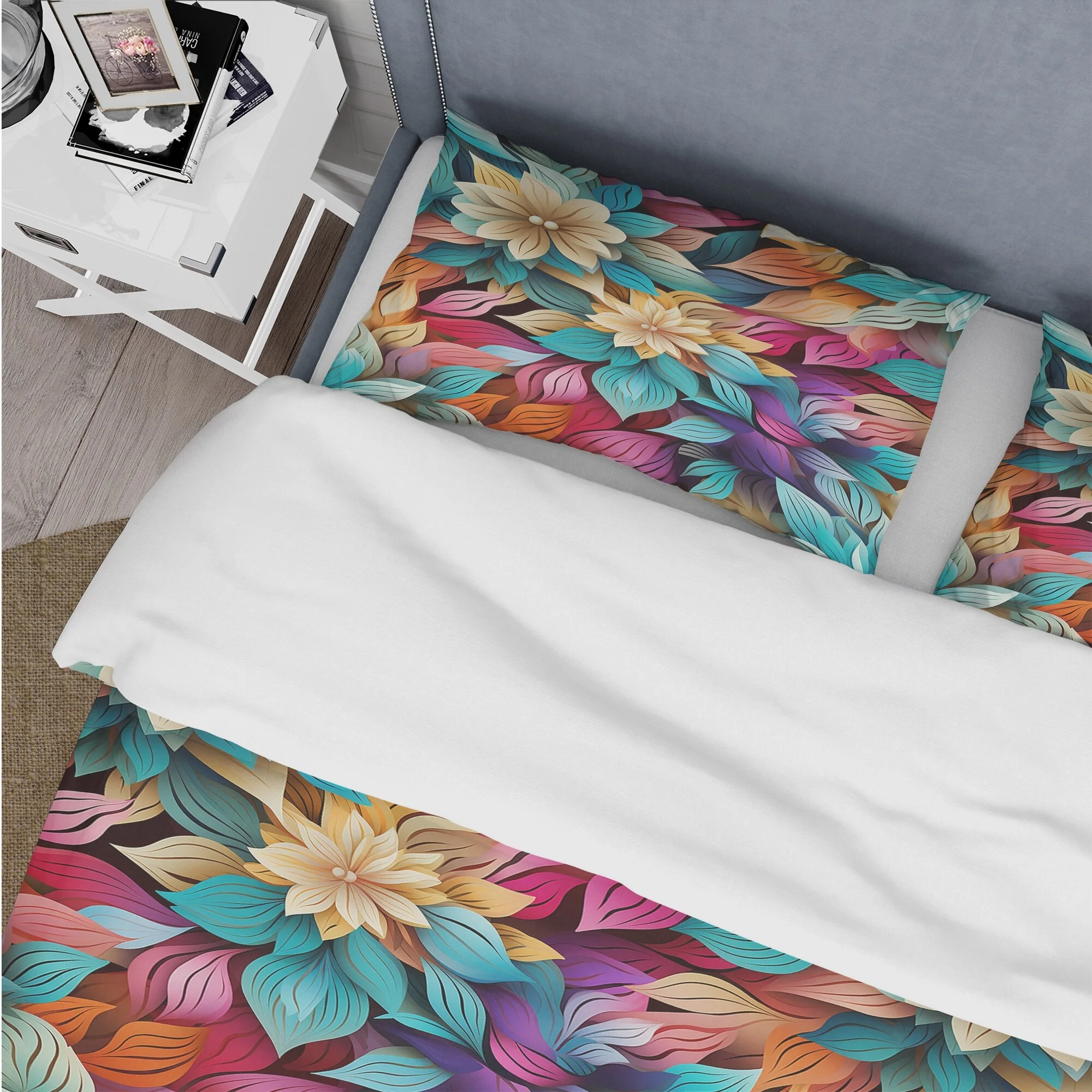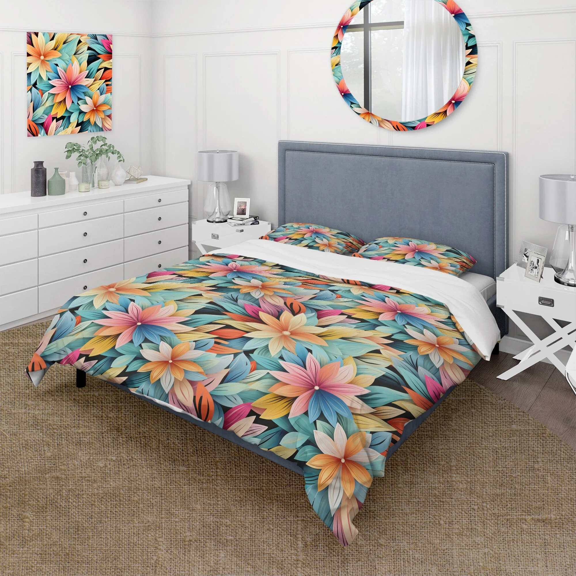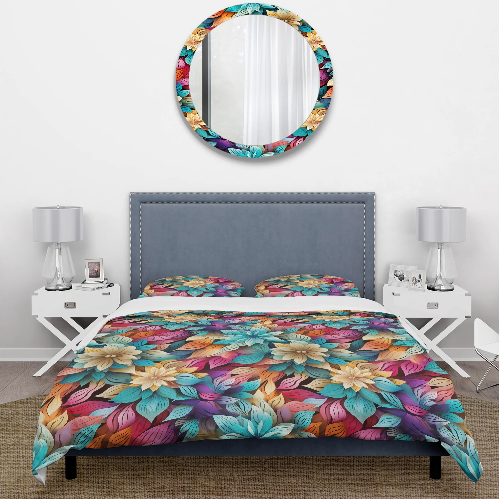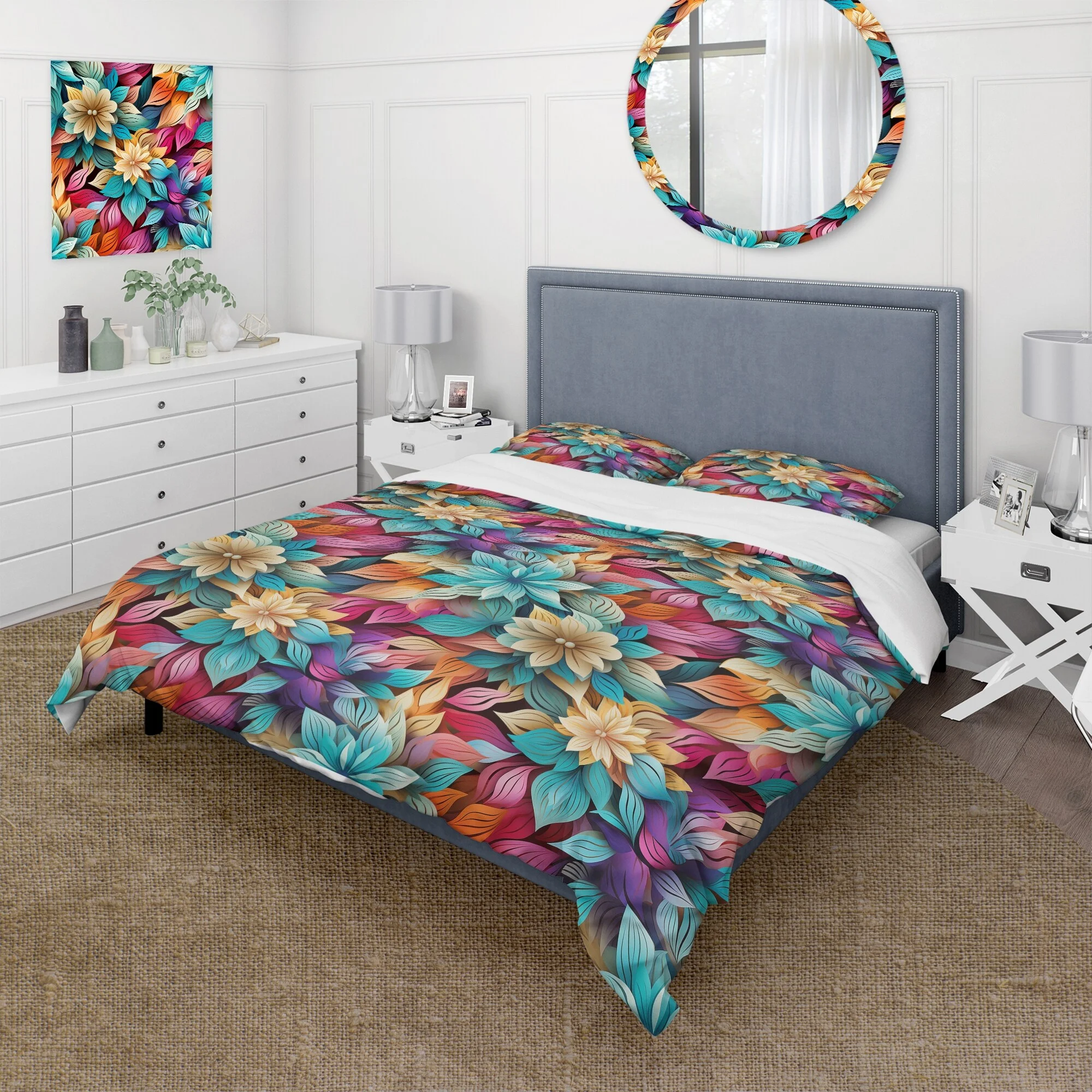 Designart "Chrysanthemum Mandala Serenity V" White Floral Bedding Covert Set - Cottage Bed Set With 1 Sham