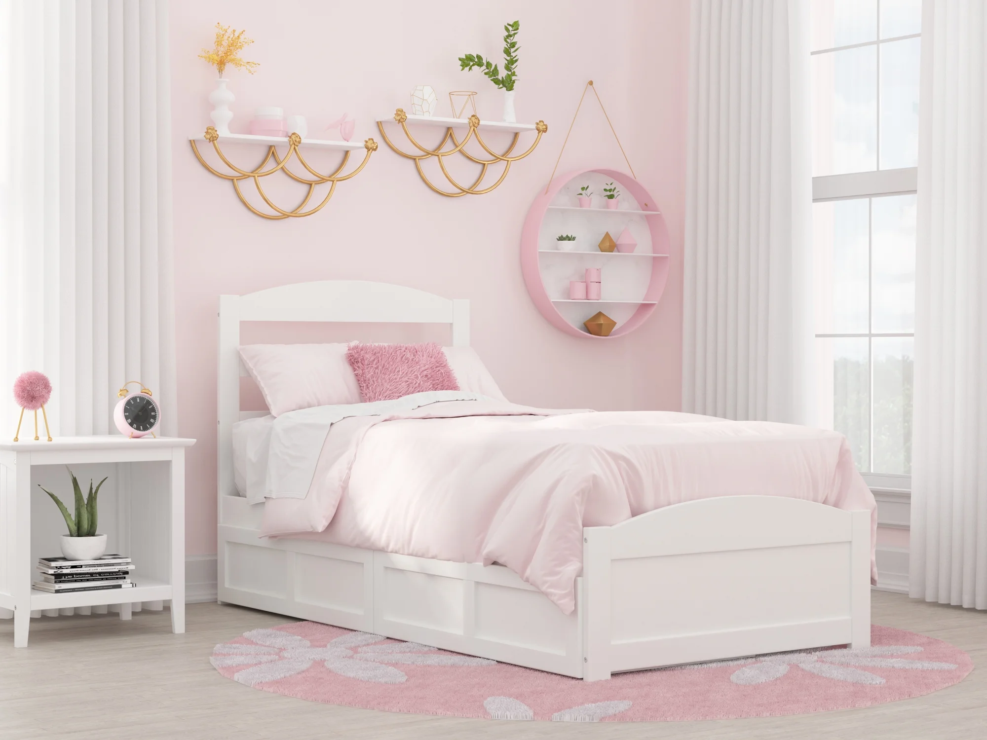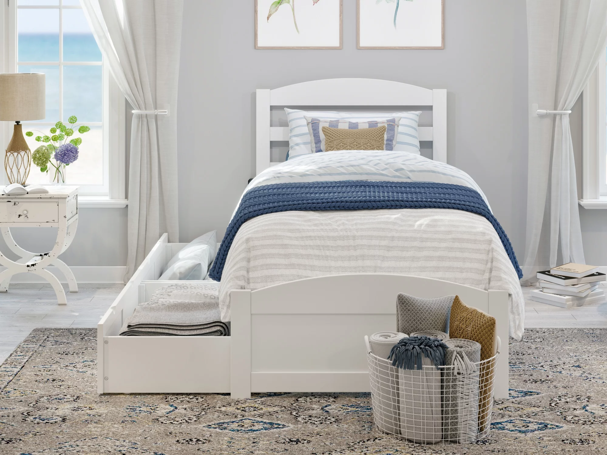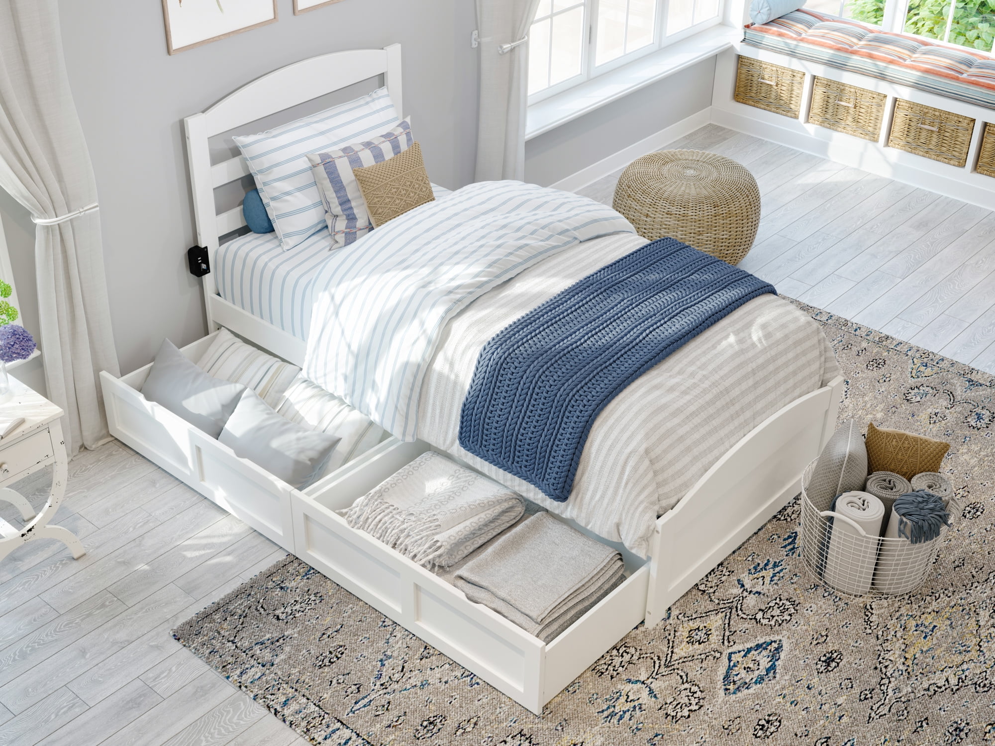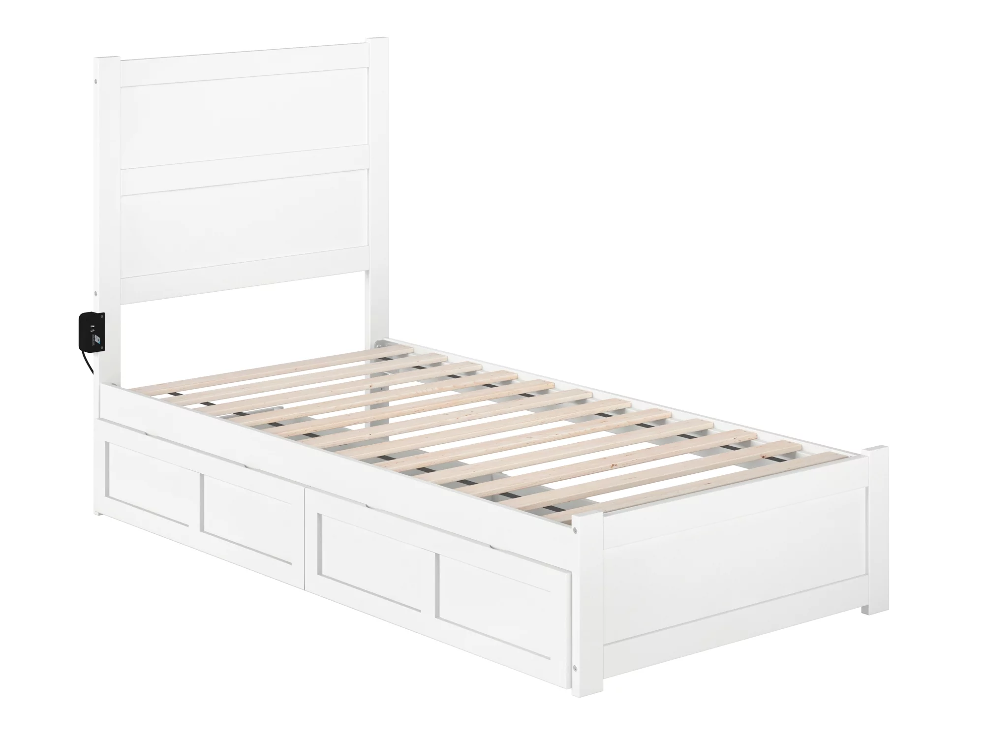 AFI Warren Twin Wood Platform Bed with Headboard Footboard & 2 Storage Drawers, White