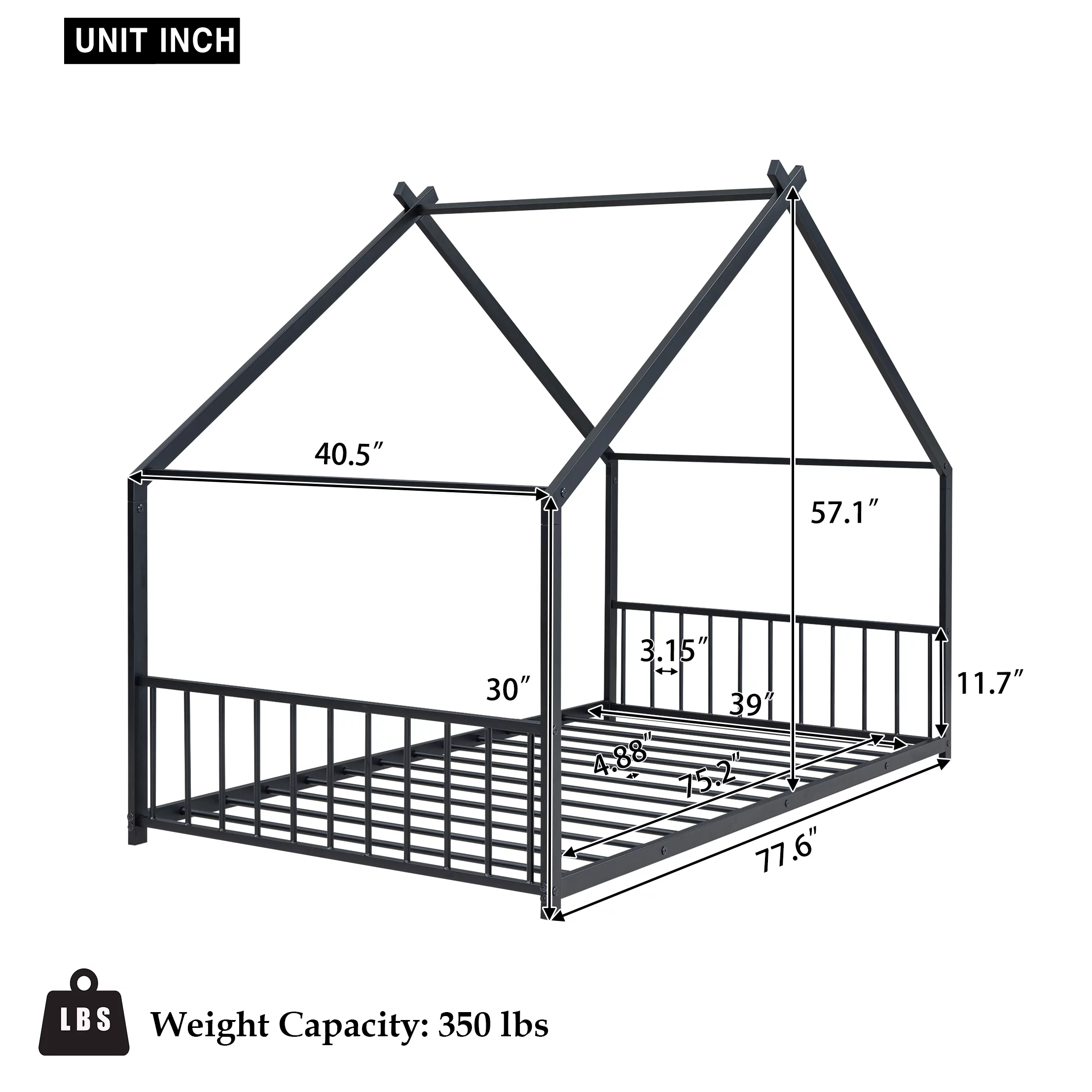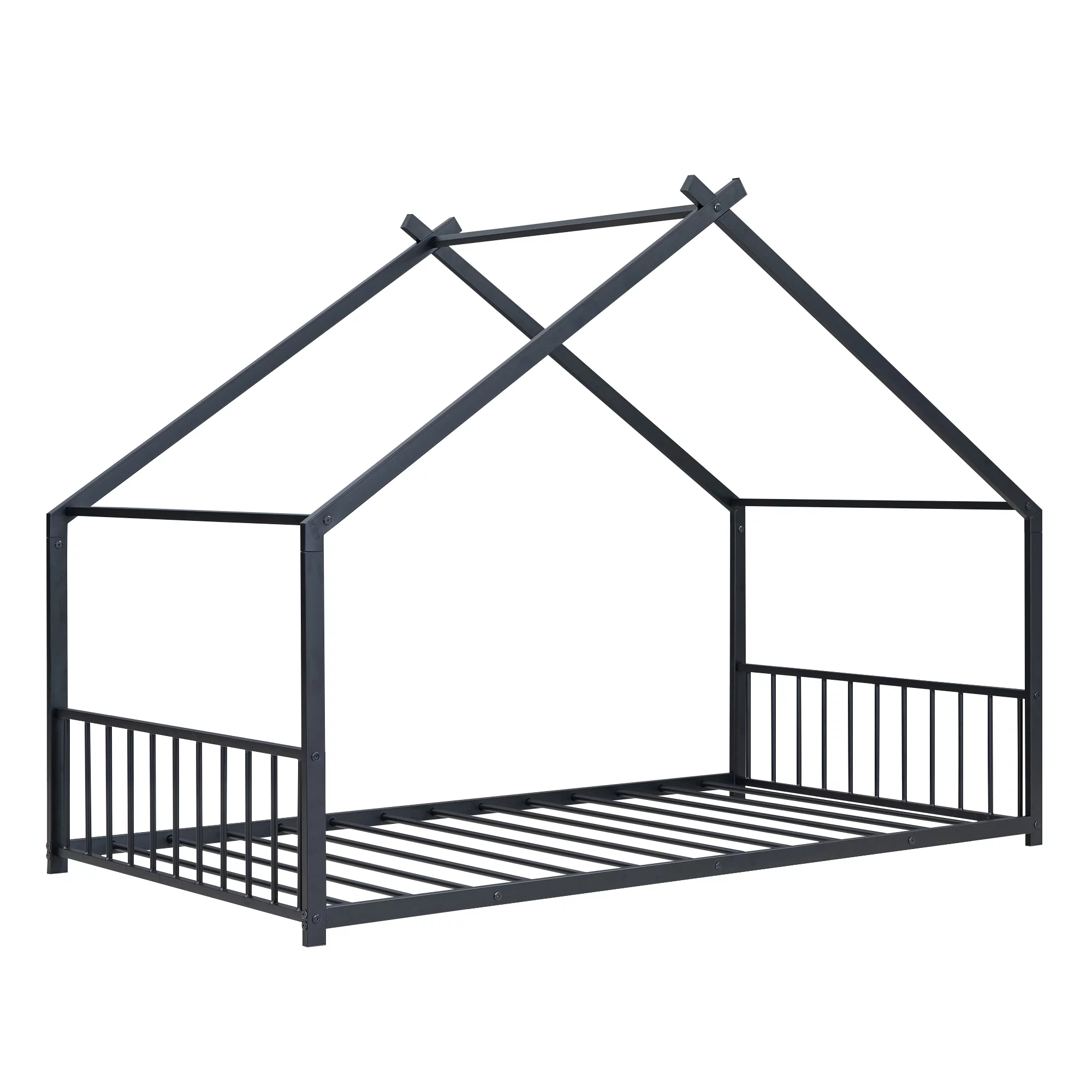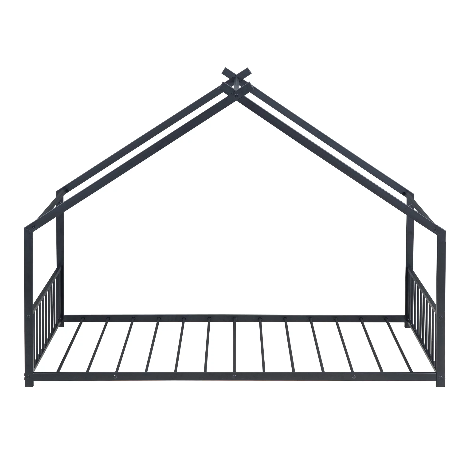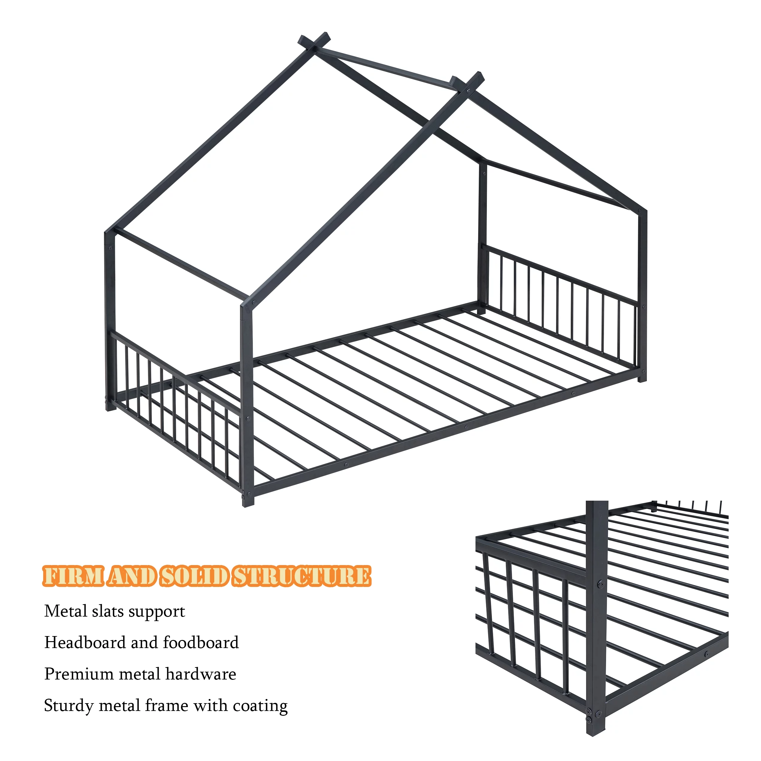 Heavy Duty Twin-Over-Full Metal Bunk Bed, Easy Assembly with Enhanced Upper-Level Guardrail, Black